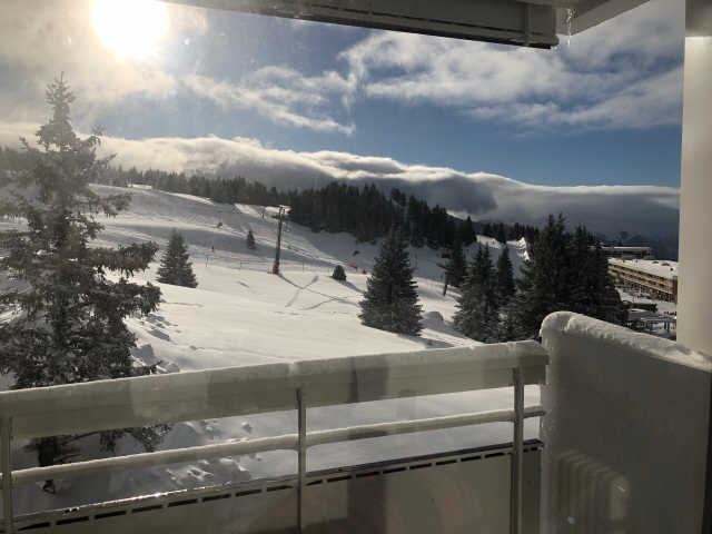 4 chaises pliantes en bois et table de camping pour profiter du balcon.