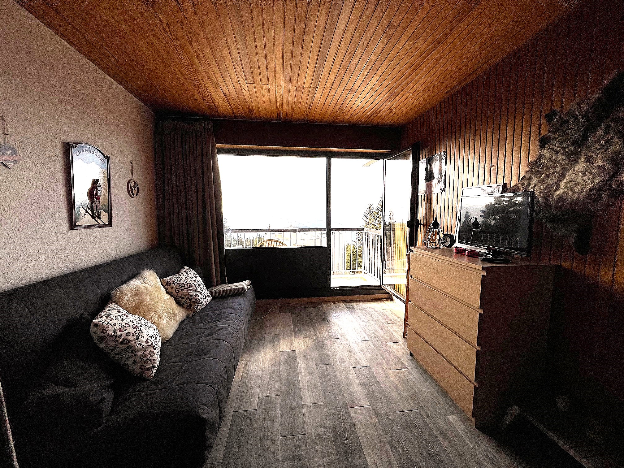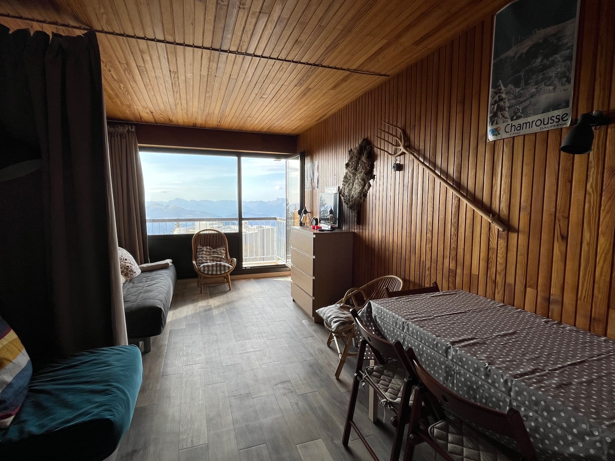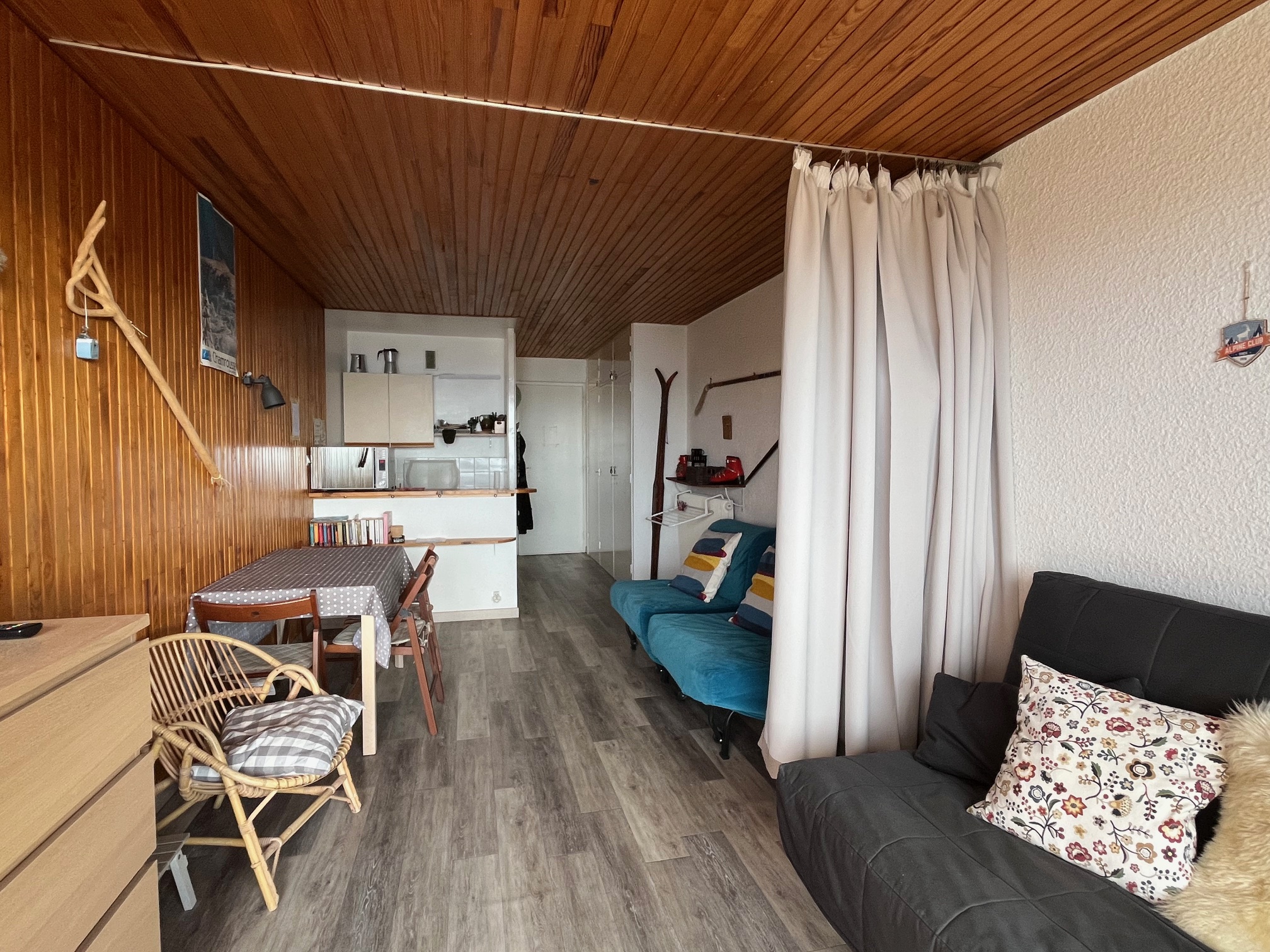 Studio une seule pièce avec un rideau de séparation