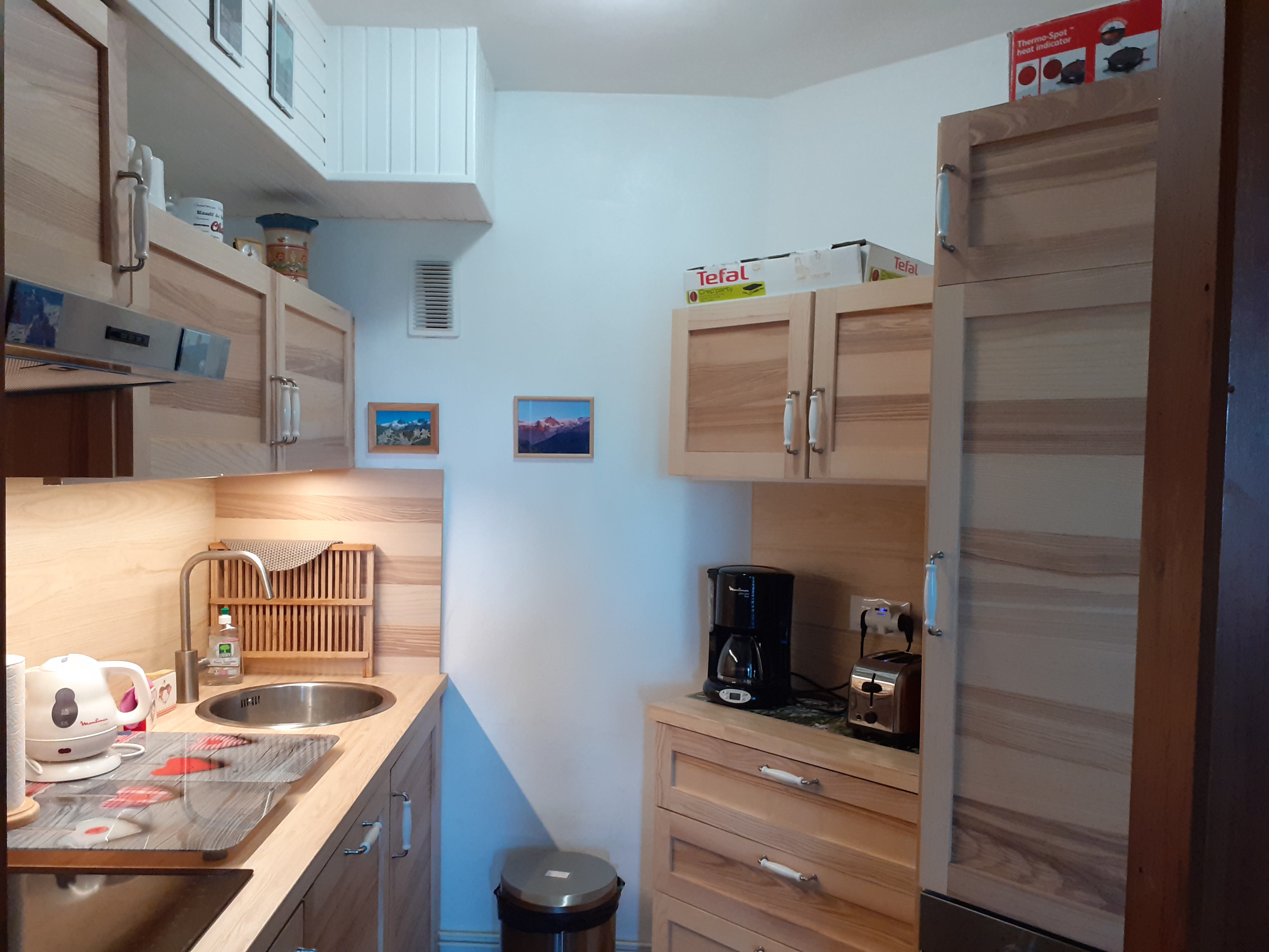 Mini crêpière, appareil à fondue, appareil à raclette, lave-vaiselle, four, micro-ondes, frigo et son compartiment congèlateur, plaque électrique à induction, cafetière à filtre, TV sony avec lecteur CD/DVD