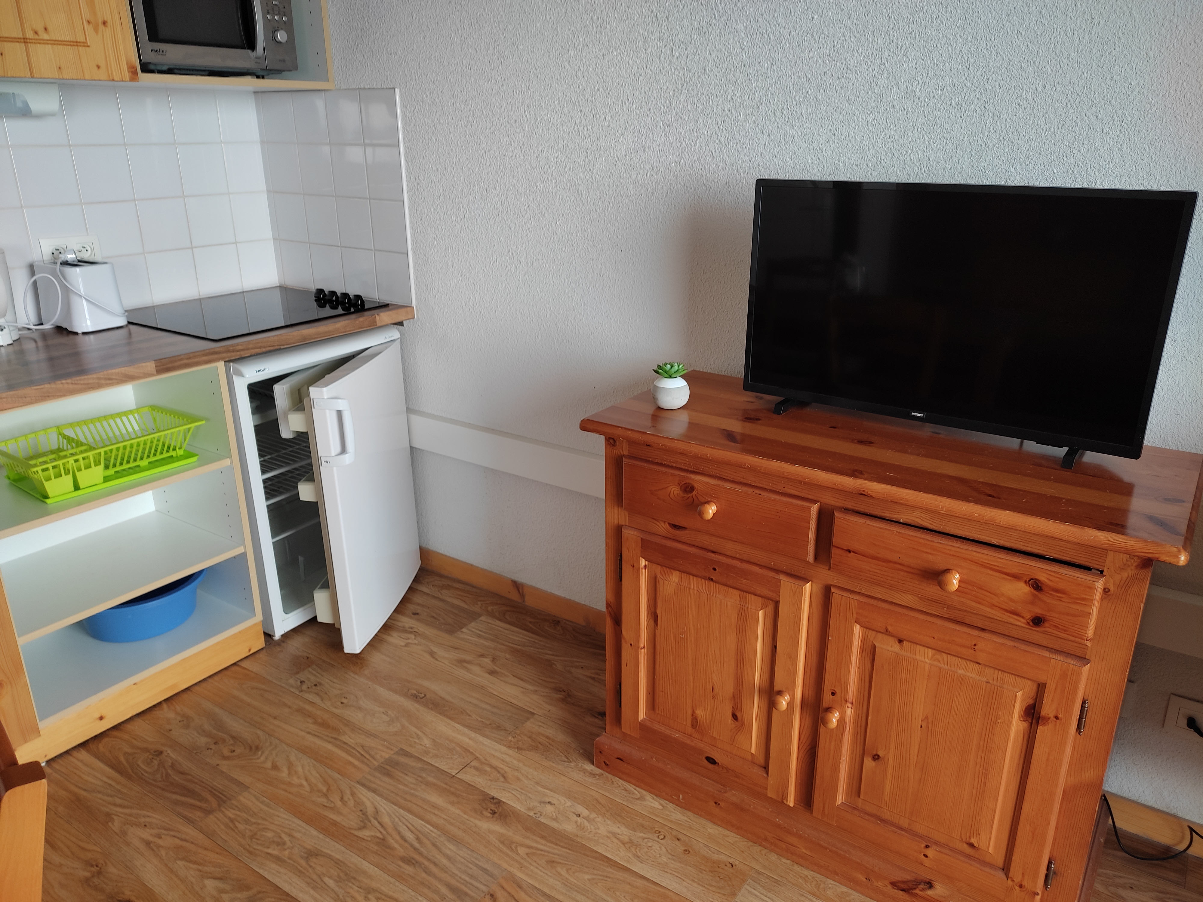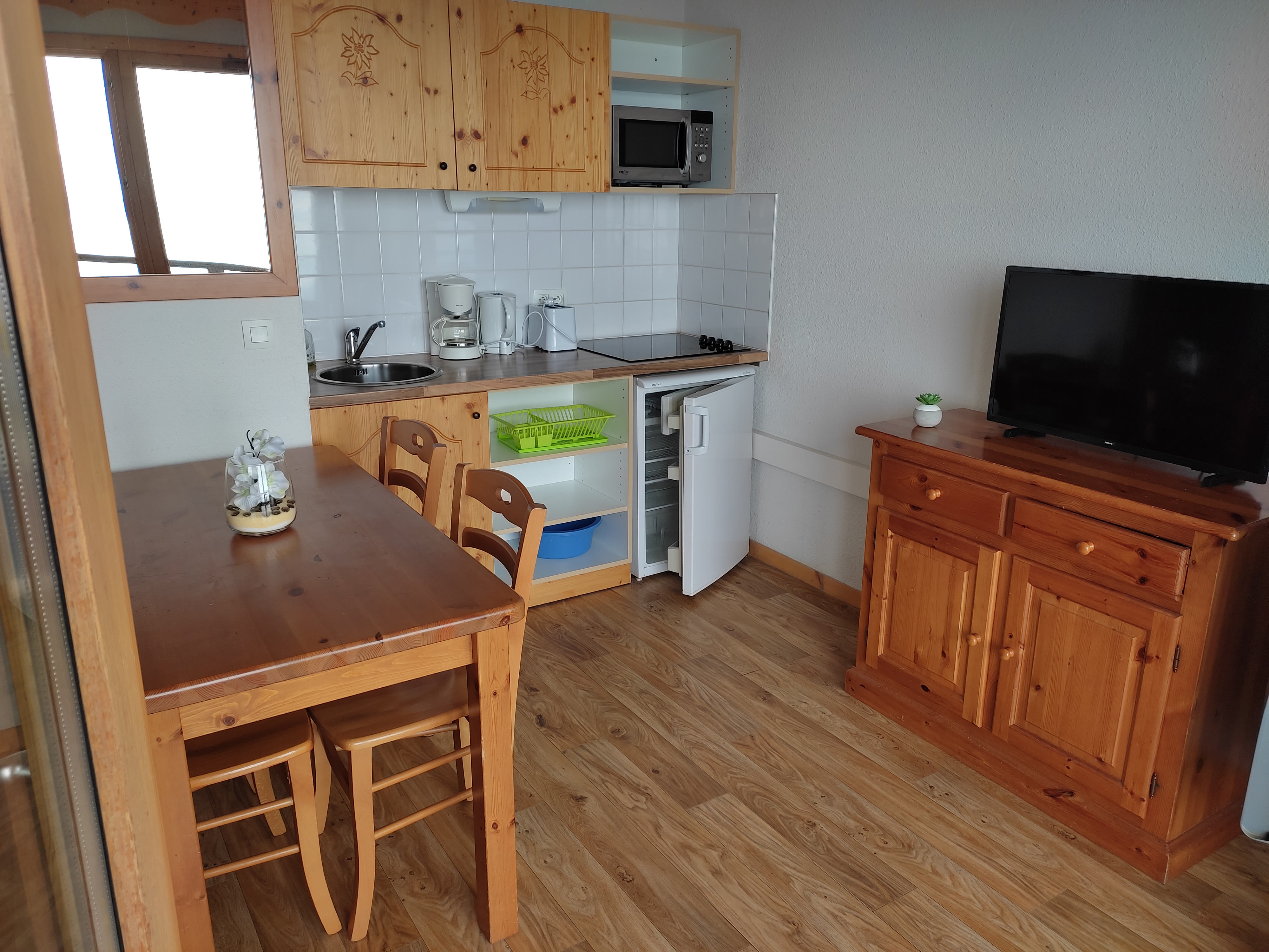 Beau studio de 26.6 m2 avec un grand balcon de 12.4 m2 très bien équipé.
