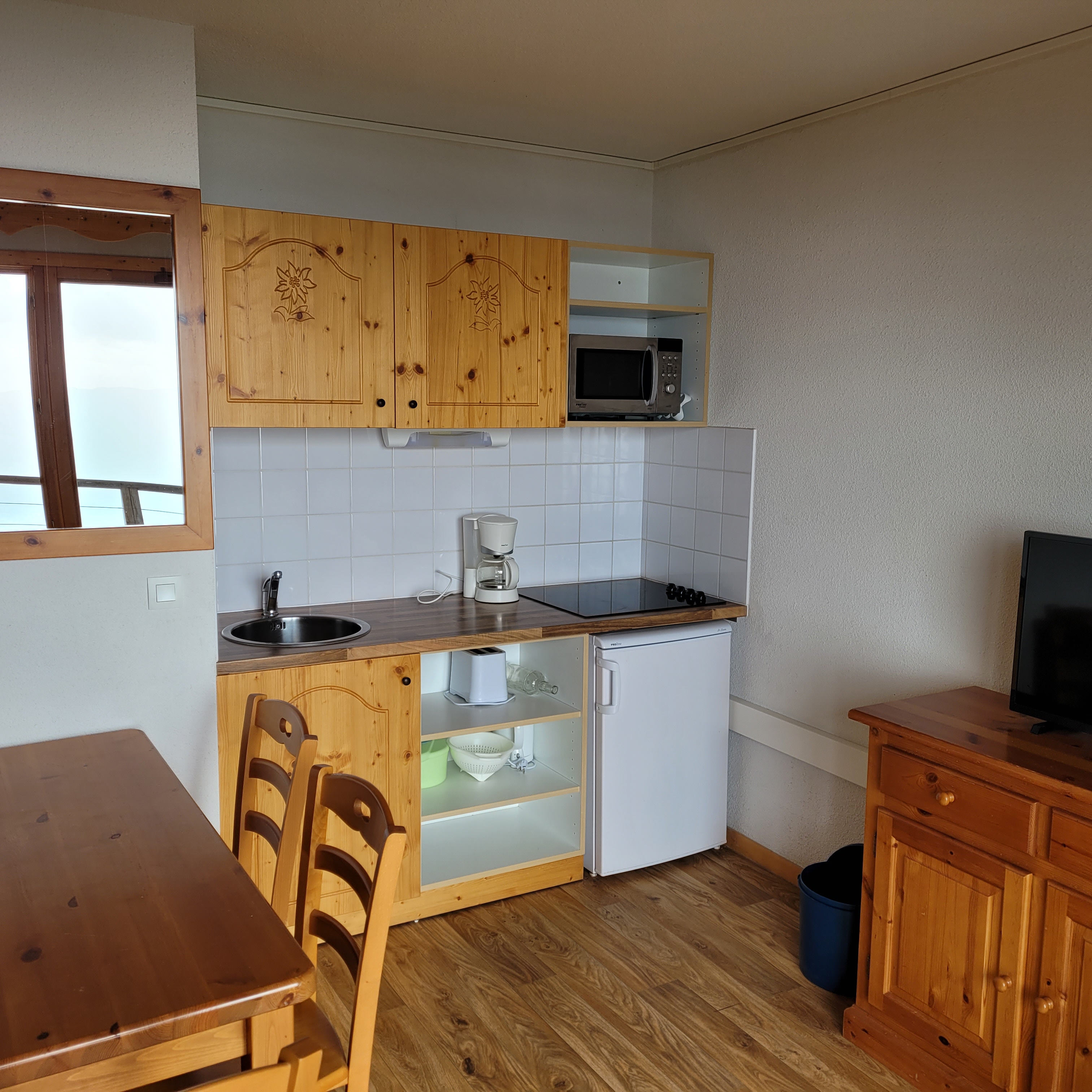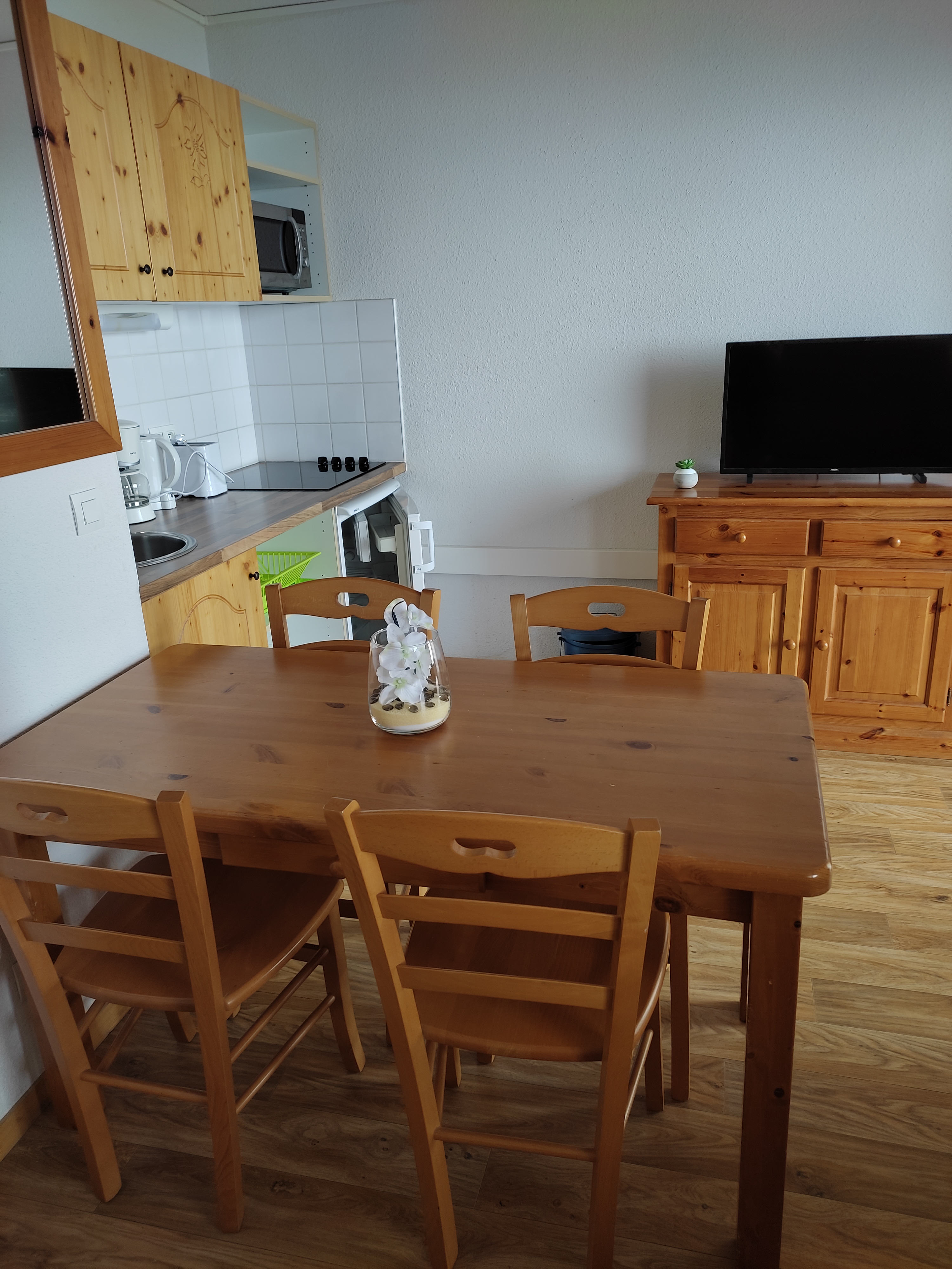 1 console,1 table et 2 chaises extérieur ,1 séche cheveux ,1 cafetière filtre, 1 grille pain,1 bouilloire,1 aspirateur et une télévision