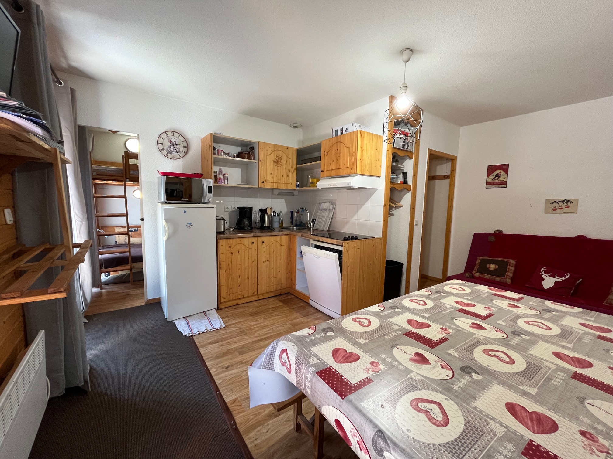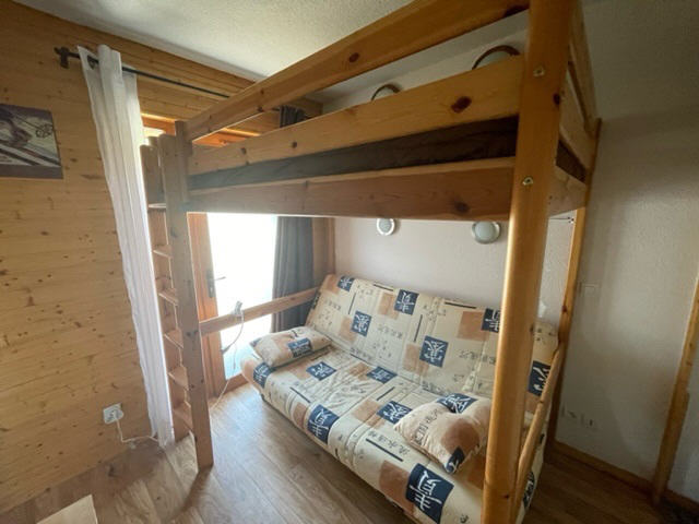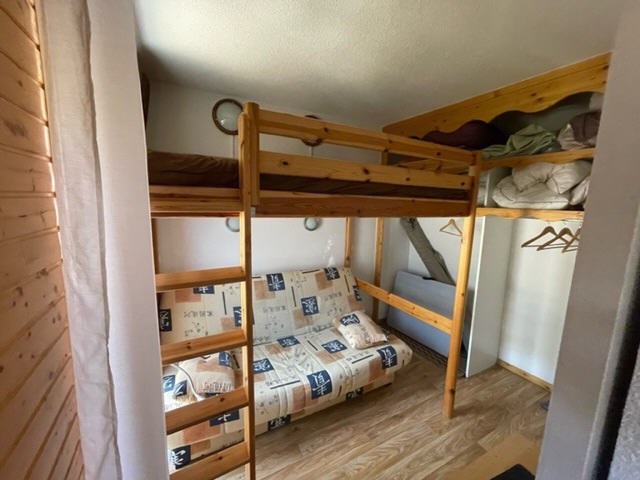 Dans la chambre un lit mezzanine deux places et dans le séjour un canapé convertible neuf