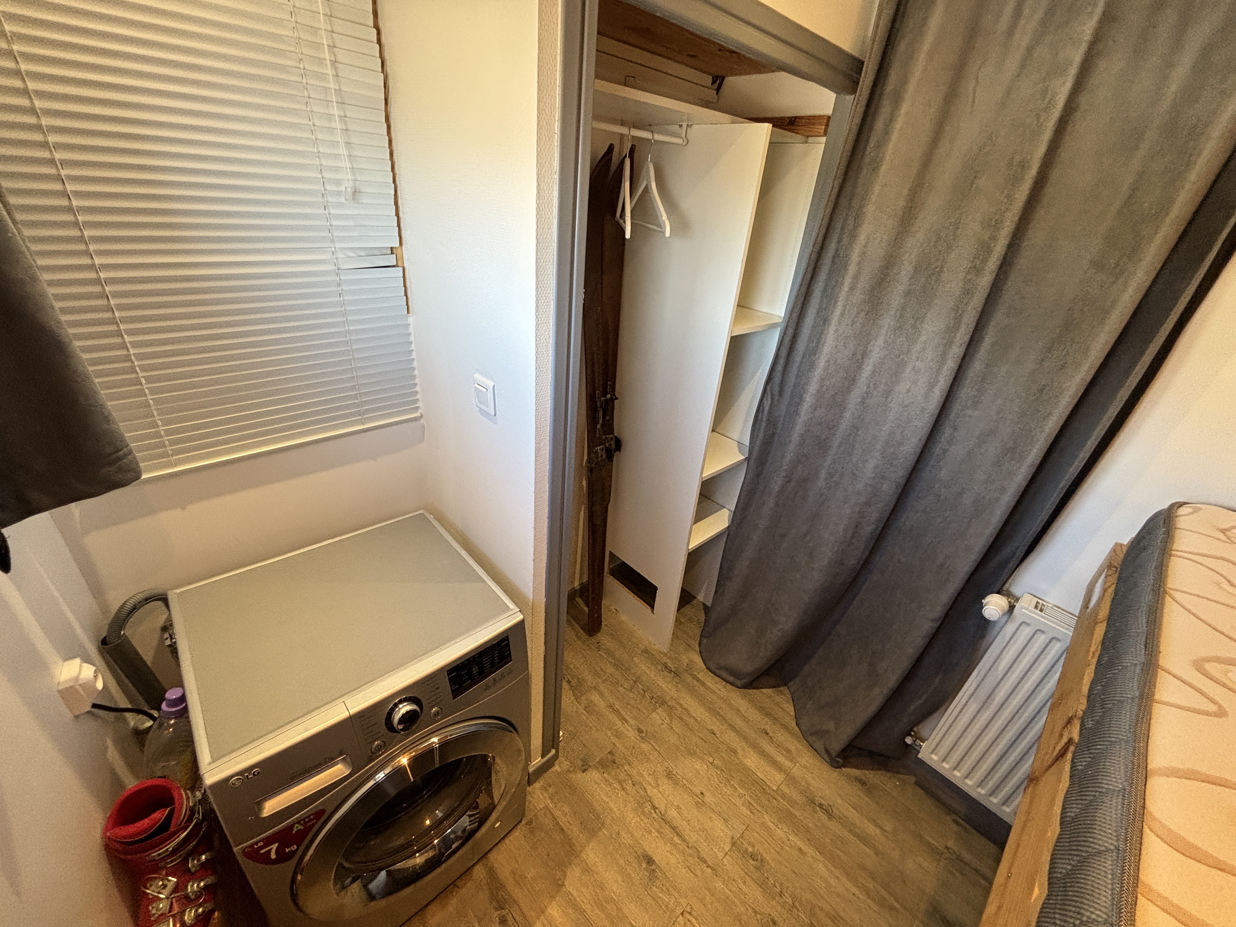 TV, machine à laver, étendoir à linge