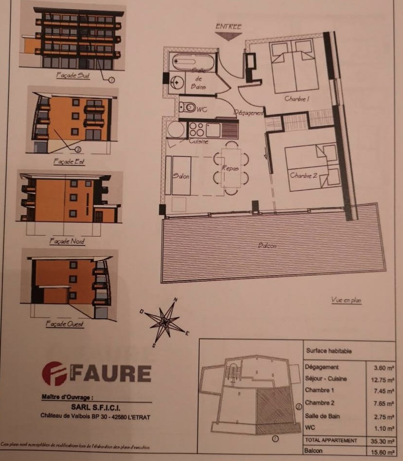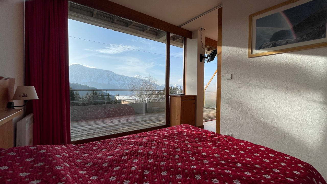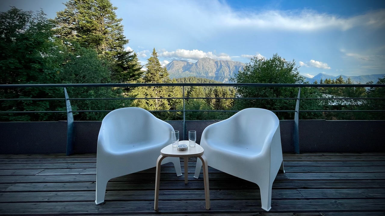Appartement 35m2, RDC, 6 pers. moderne, calme et très lumineux avec une vue imprenable sur le plateau de l'Arselle et le massif du Taillefer depuis la grande terrasse en bois (15m2).