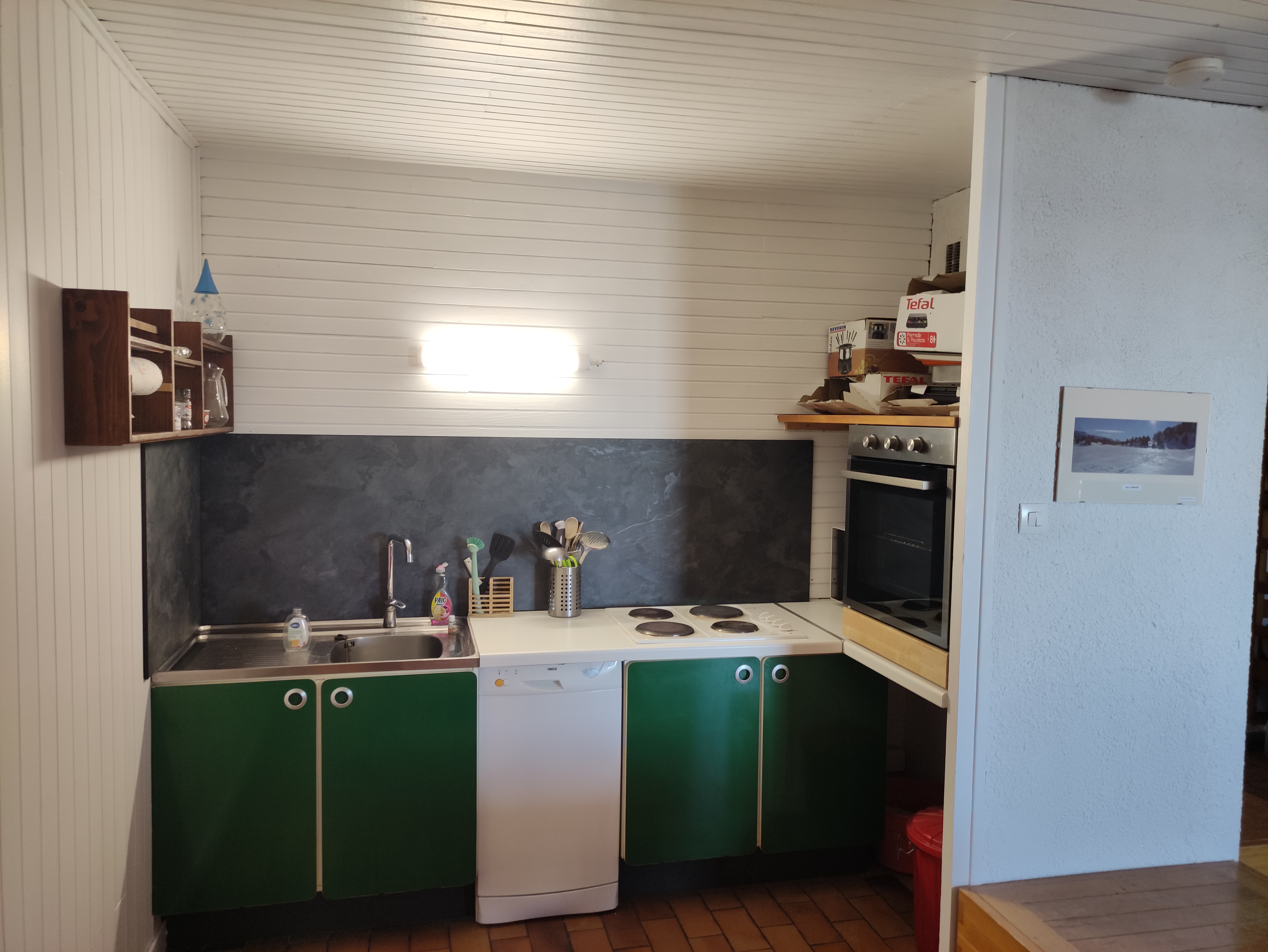 TV , lave vaisselle, four , bouilloire , grille pain, cafetière filtre , sèche cheveux