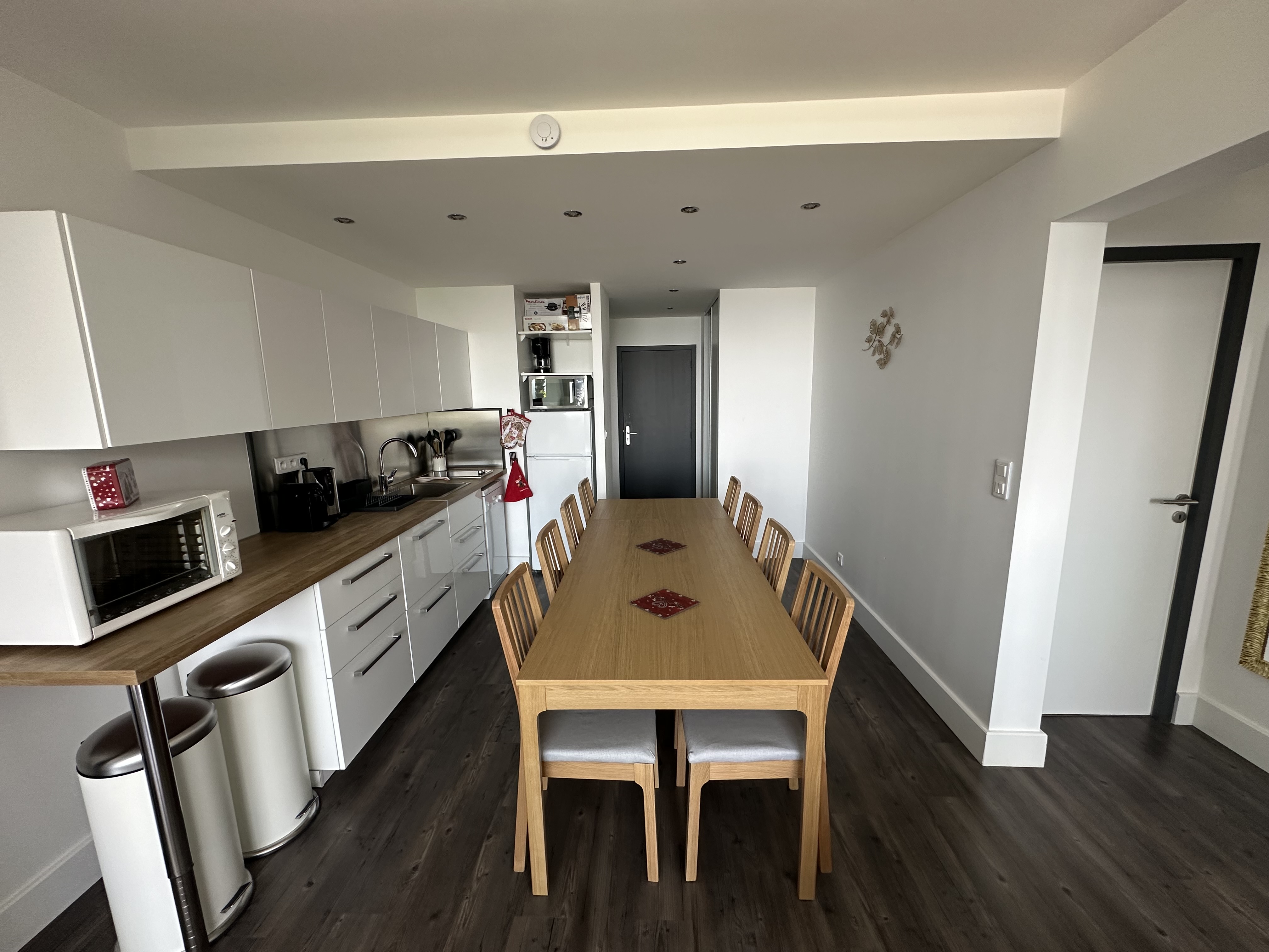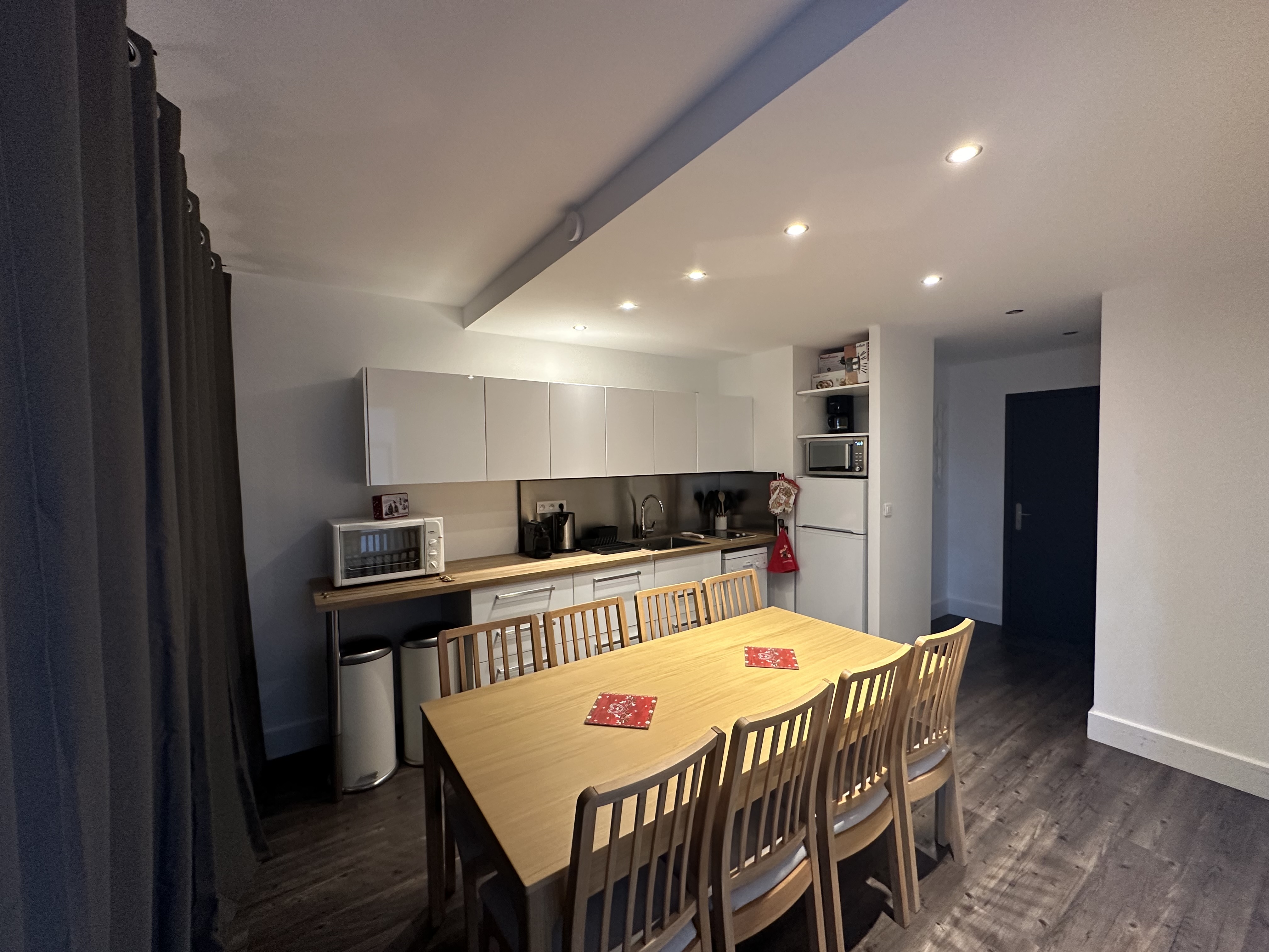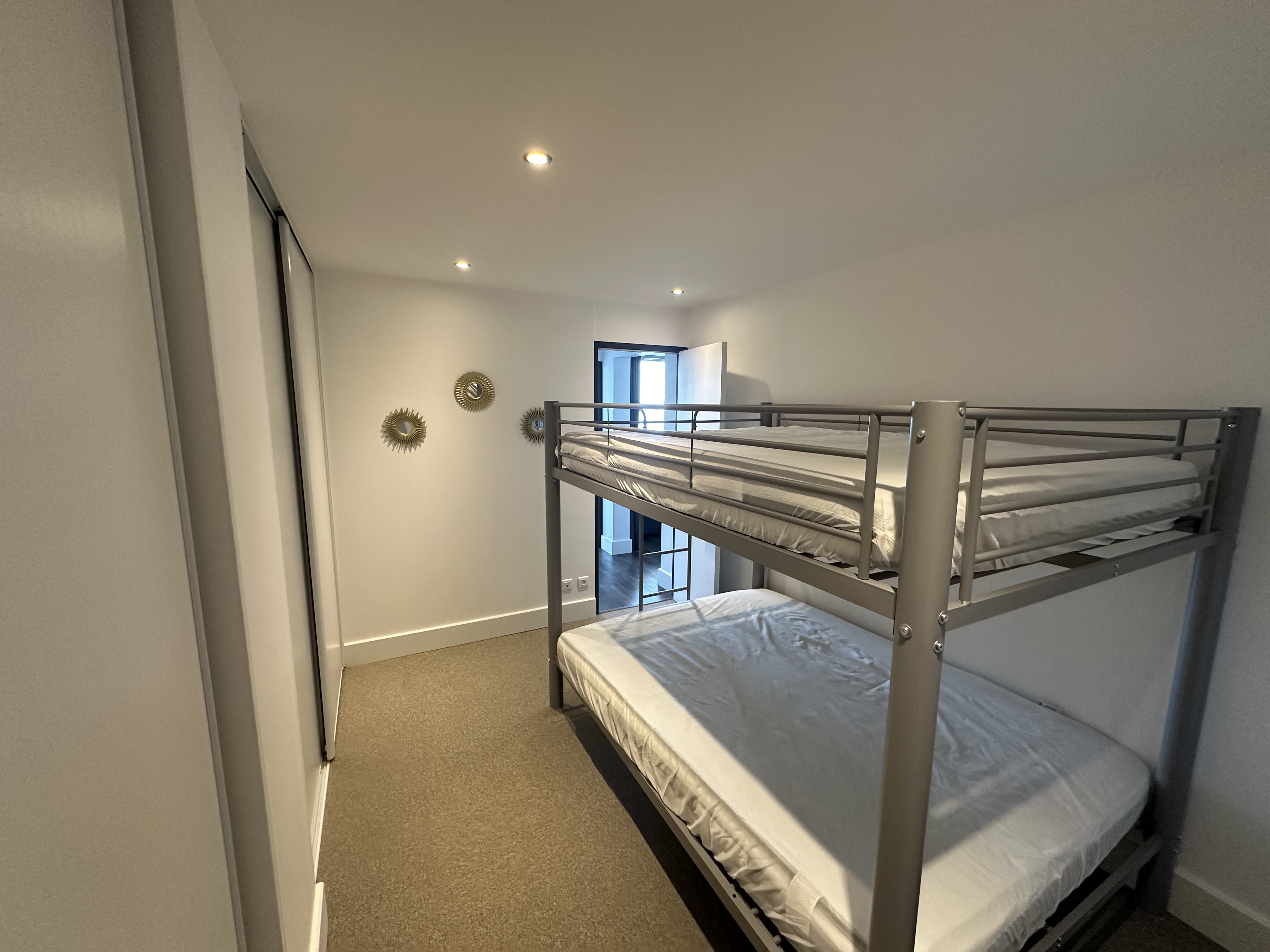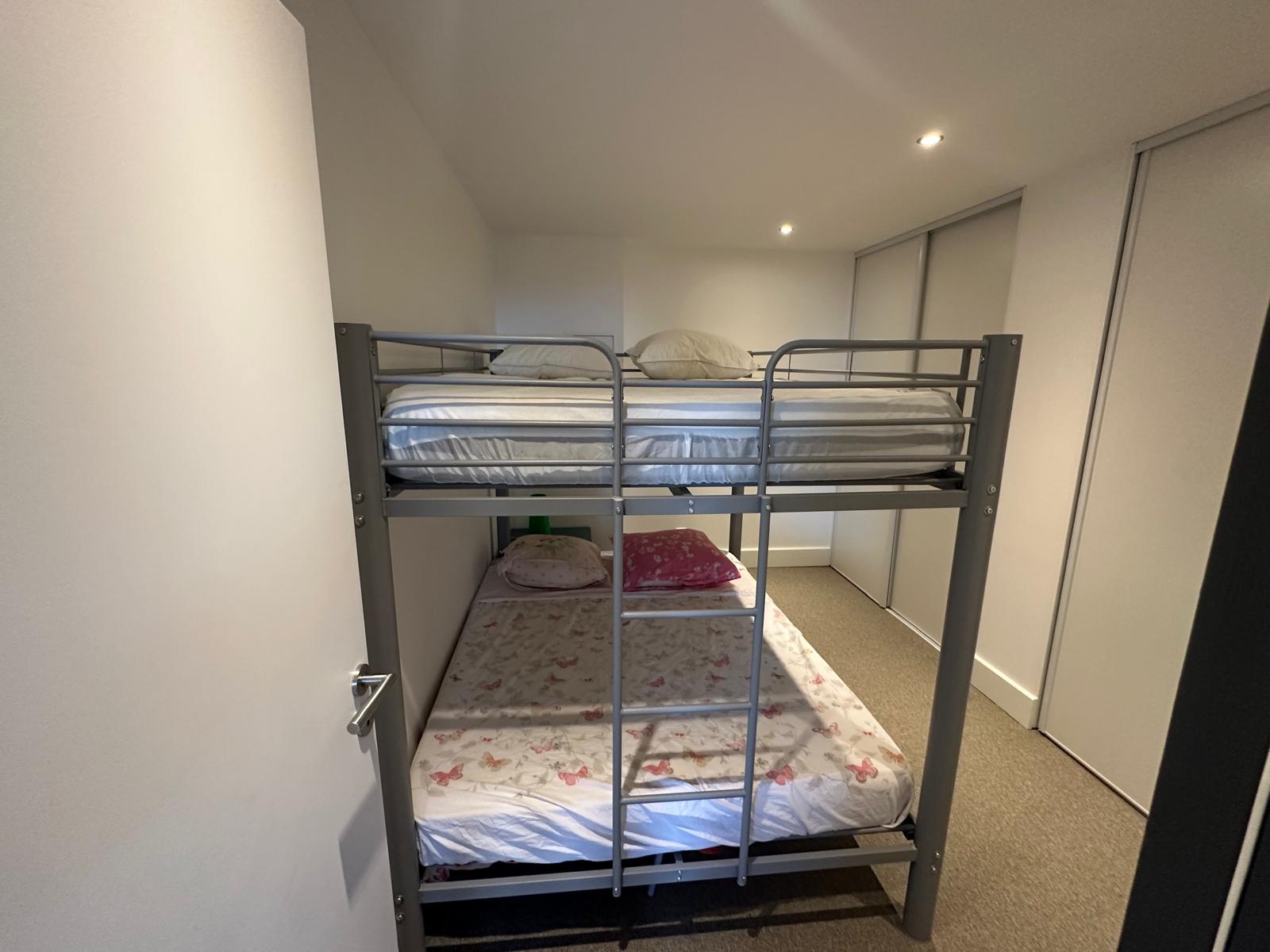 2 chambres : 1 avec un grand lit 160 et 1 autre grande chambre avec 2 lits superposés 140