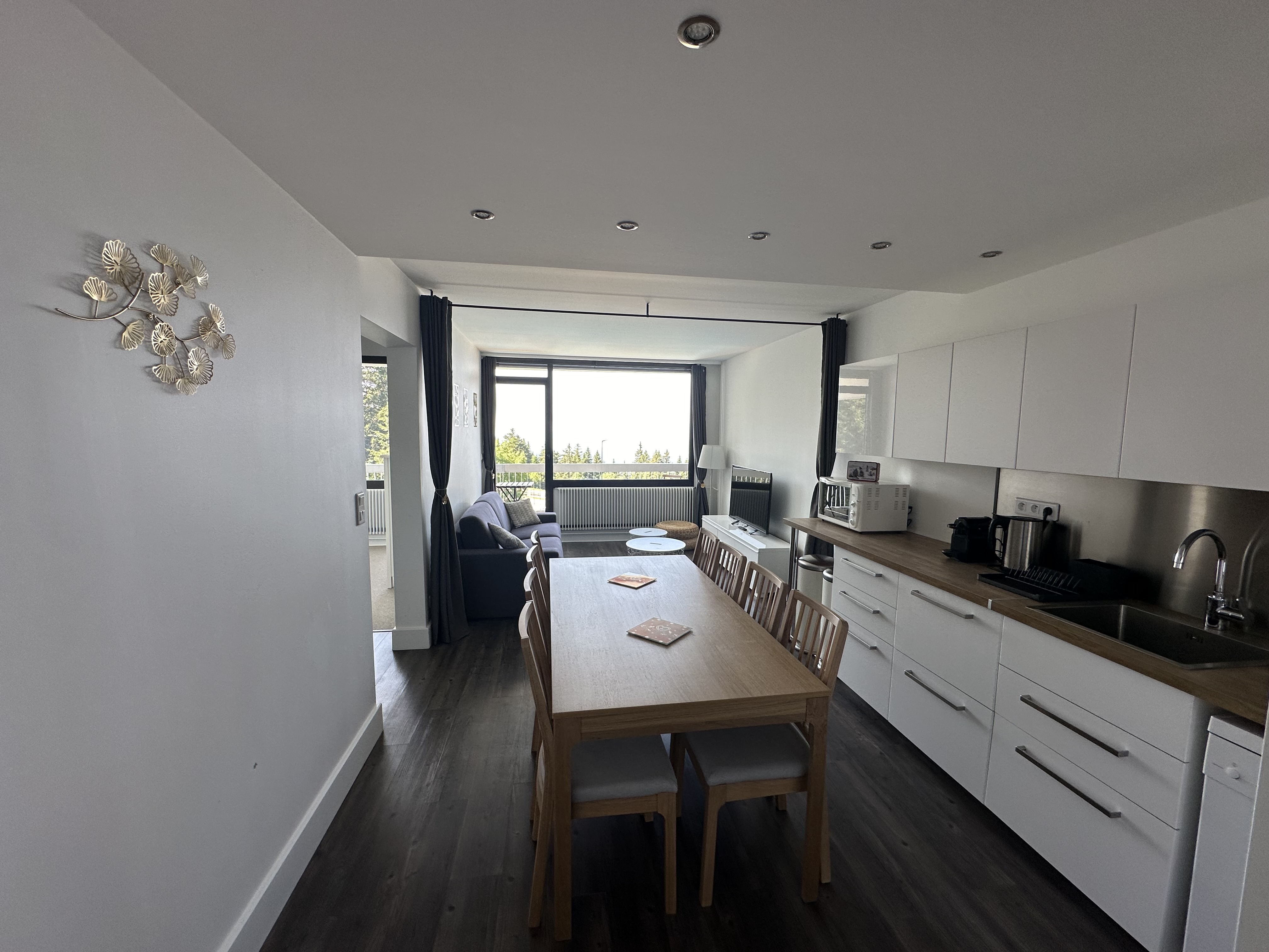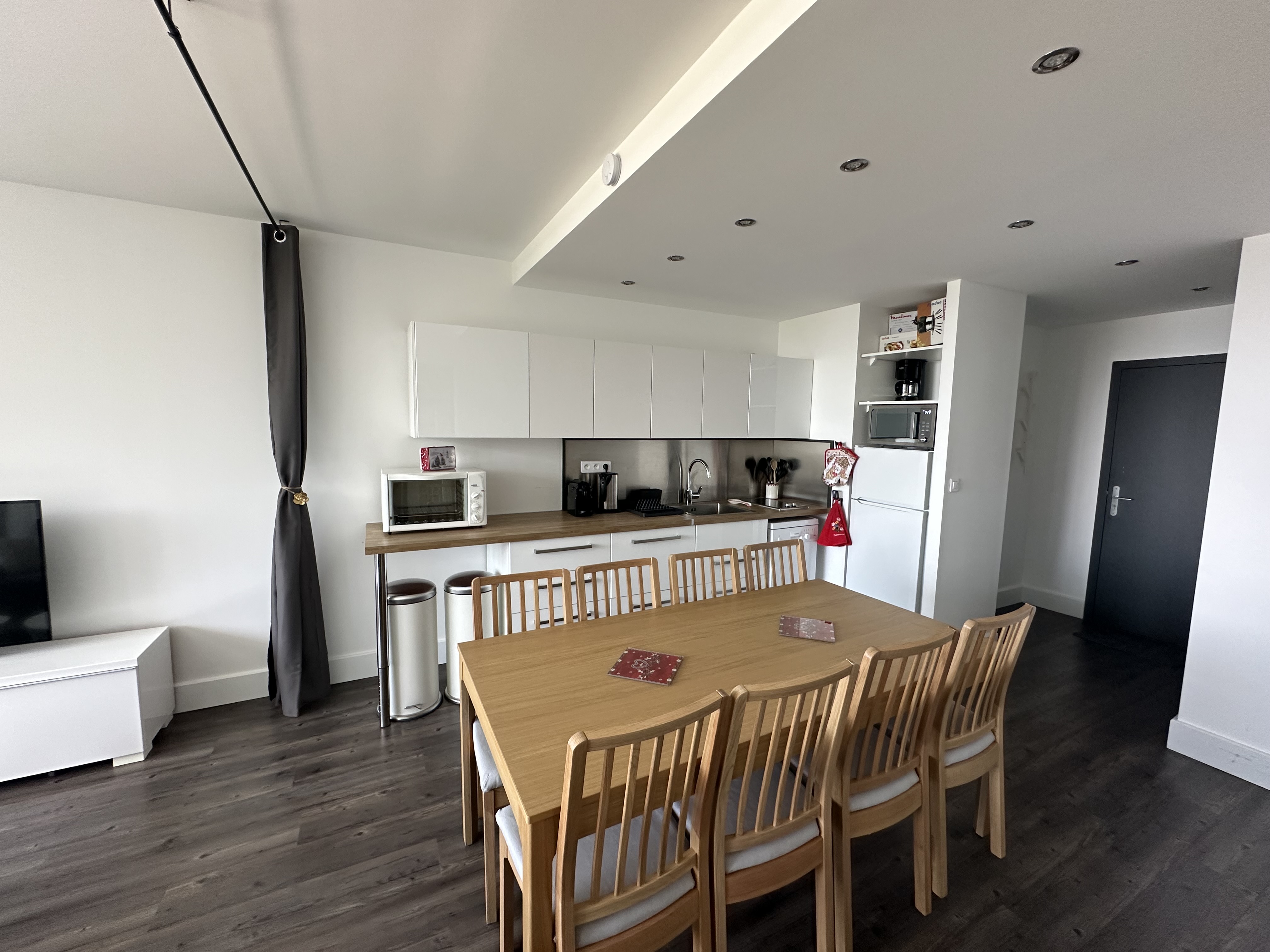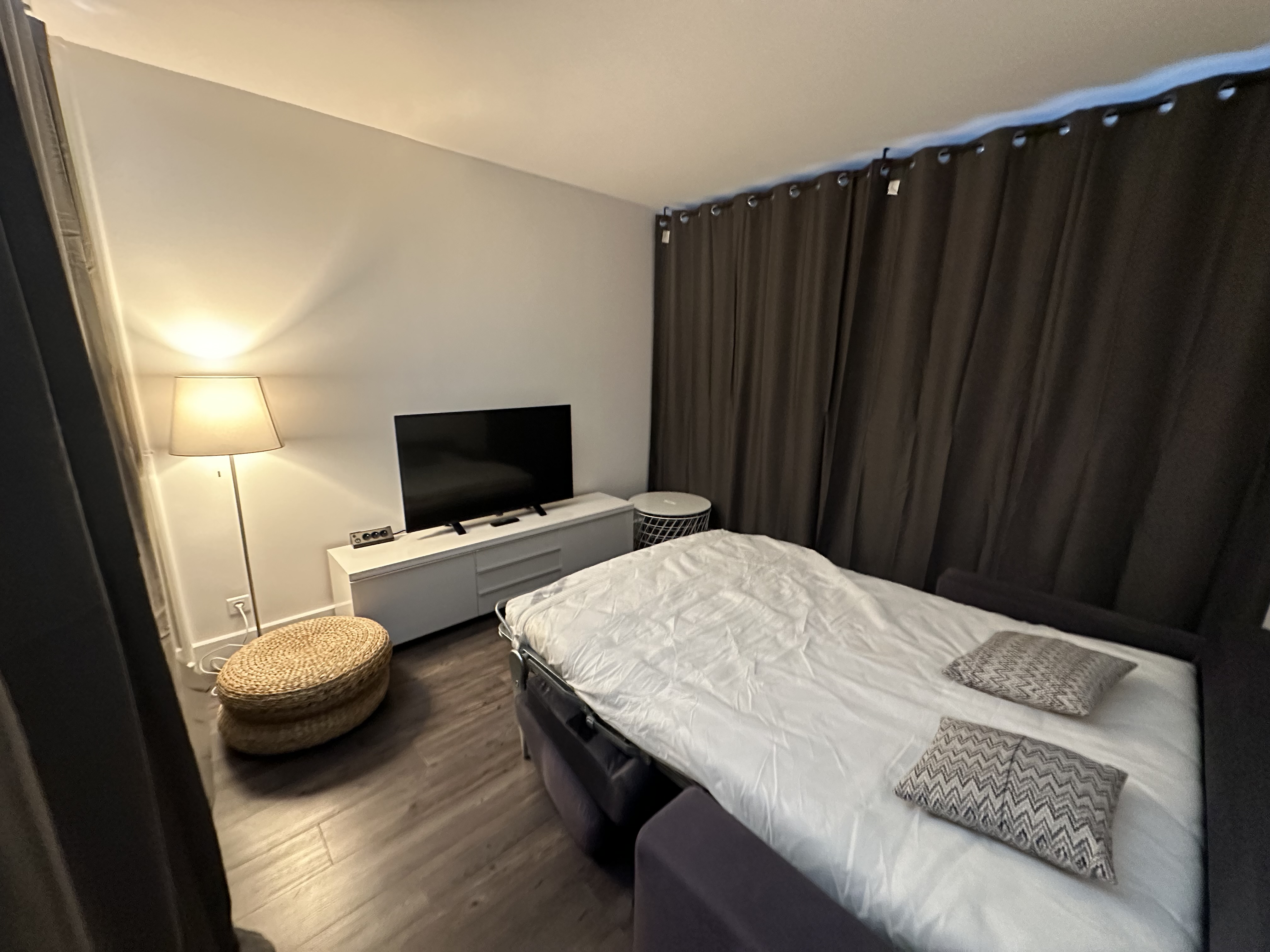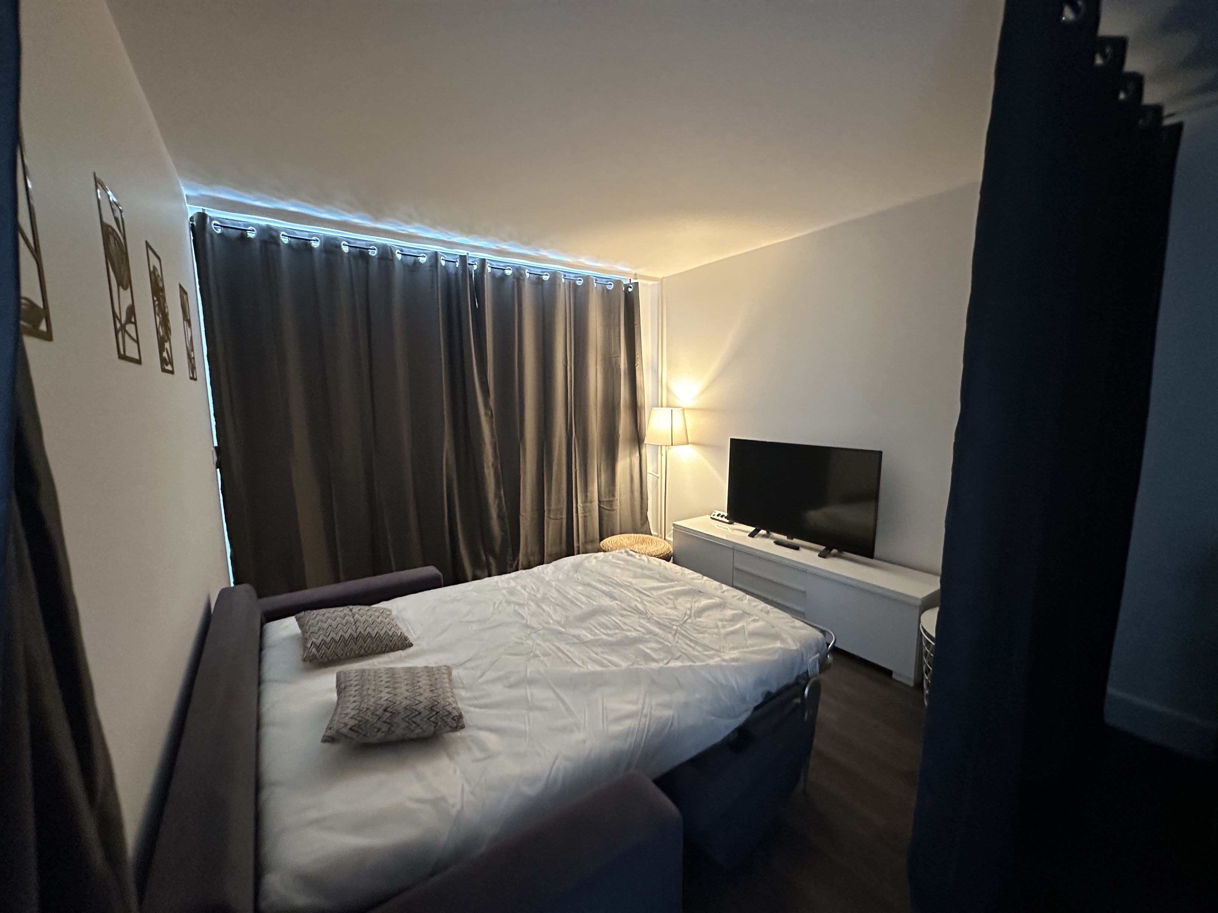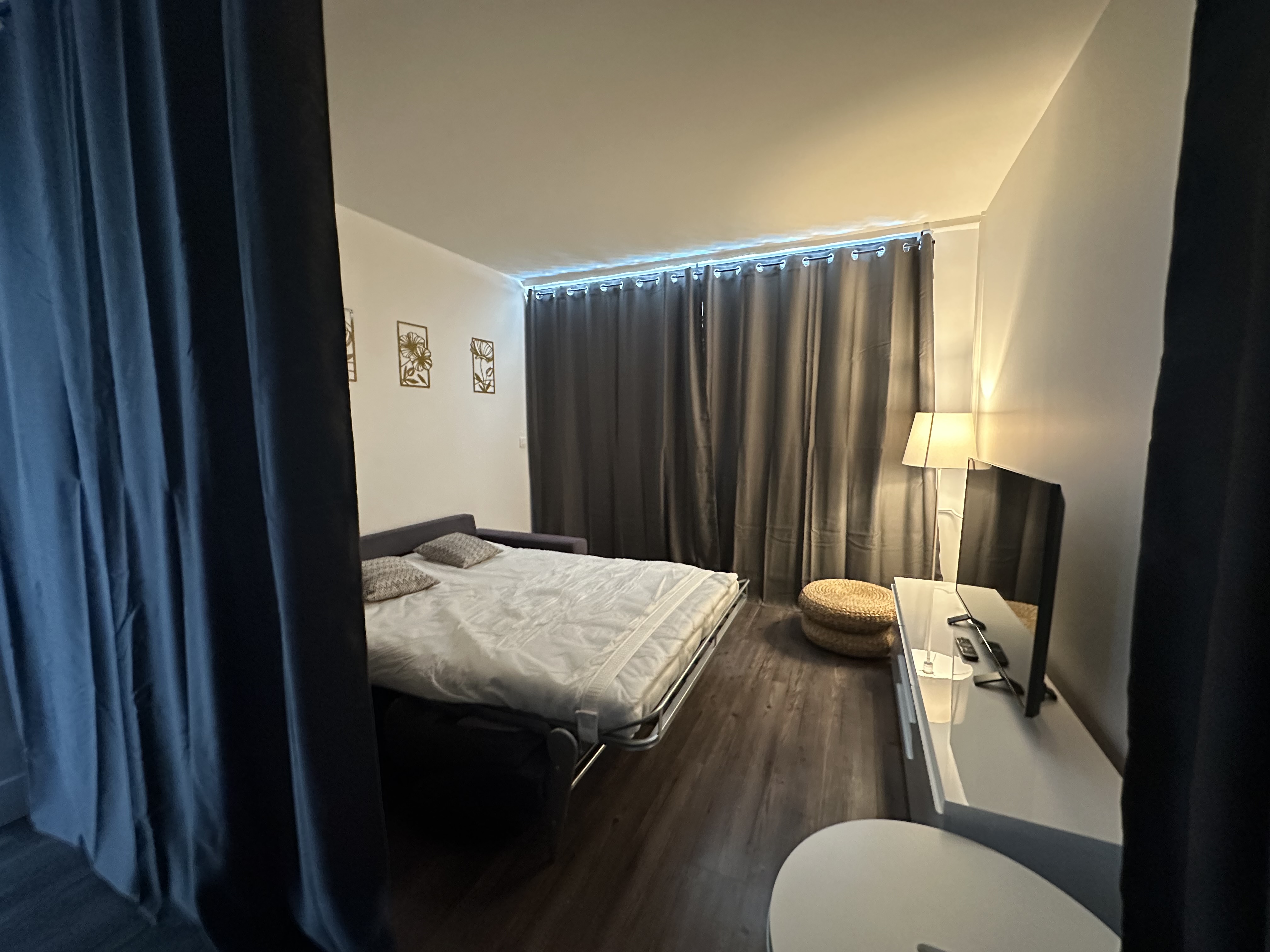 2 chambres : 1 avec un grand lit 160 et 1 autre grande chambre avec 2 lits superposés 140