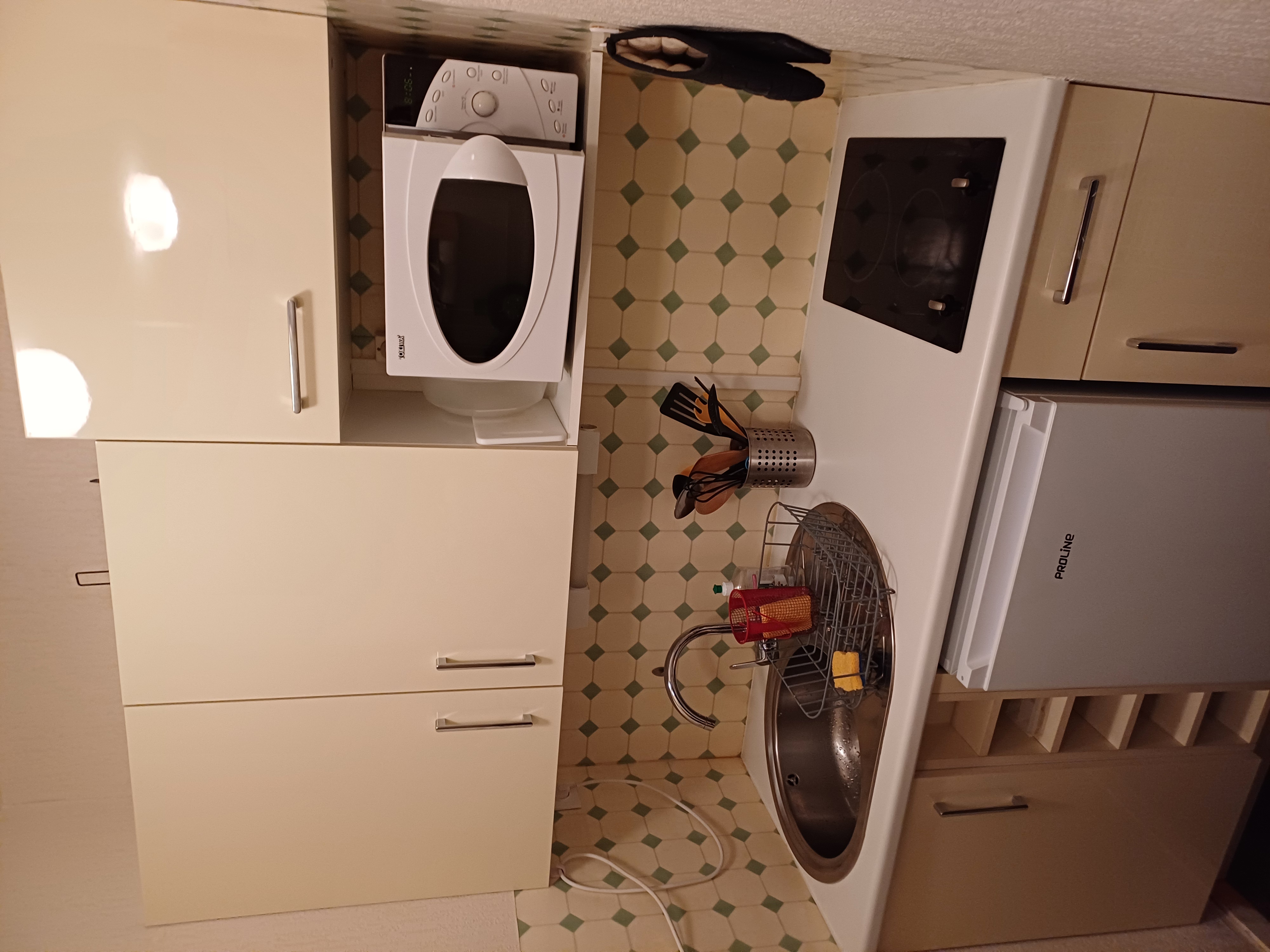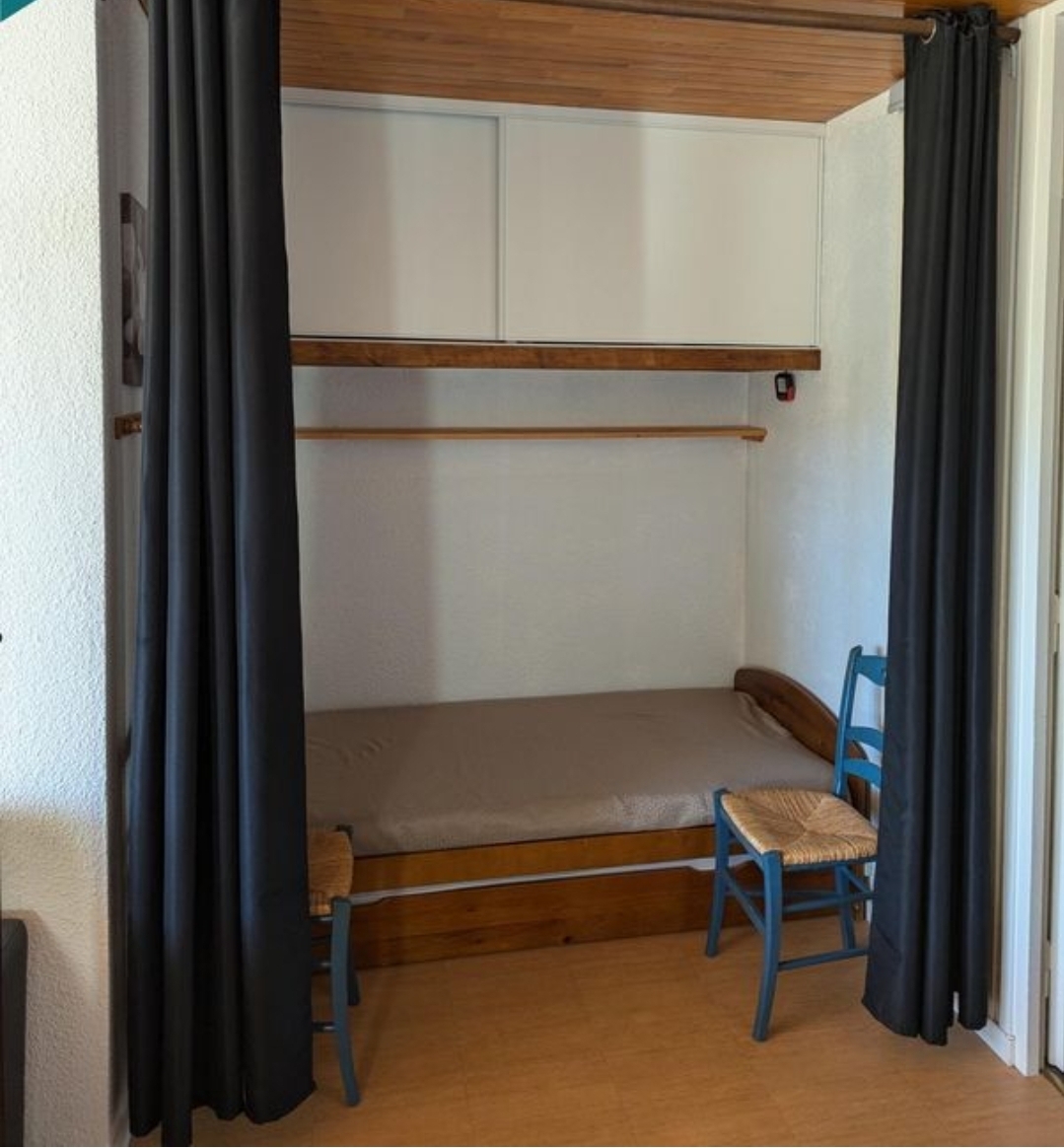 Studio cabine très bien équipé ; cafetière senseo, cafetière filtre, grille pain, four micro-ondes multifonctions, bouilloire, réfrigérateur, télévision, jeux de société, appareil à raclette et à crêpes, mixeur...