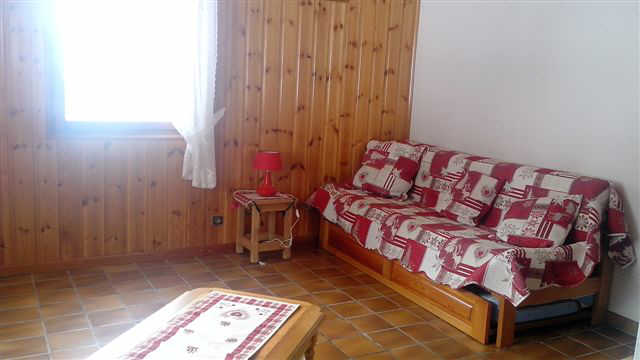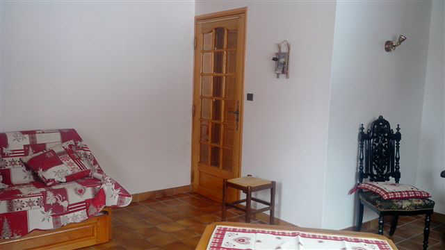 Séjour avec 2 lits gigognes, TV couleur. Salle de bain ave baignoire, wc, balcon, casier à ski.