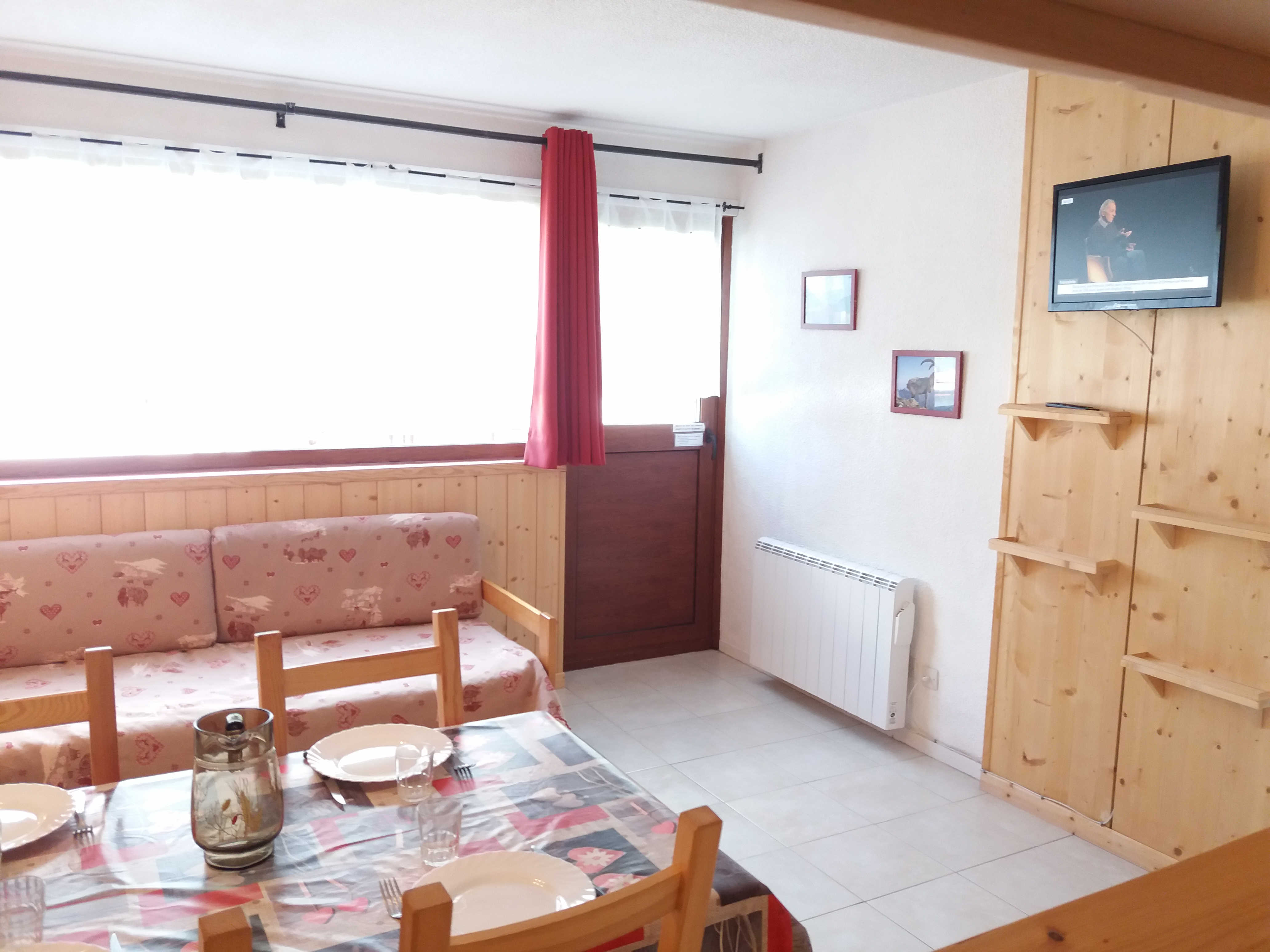 Entrée coin montagne : Lits superposés, séjour avec un lit une place.