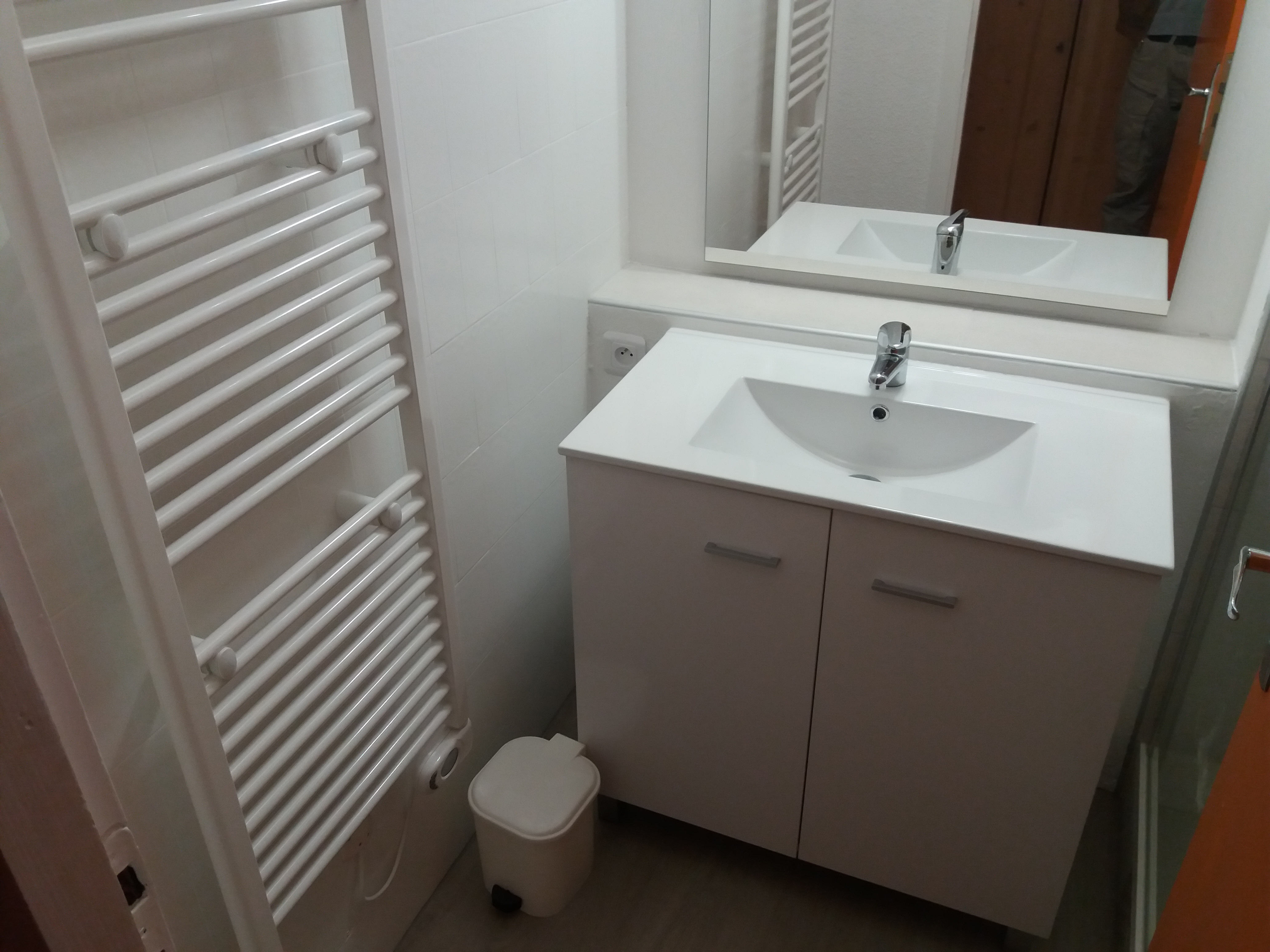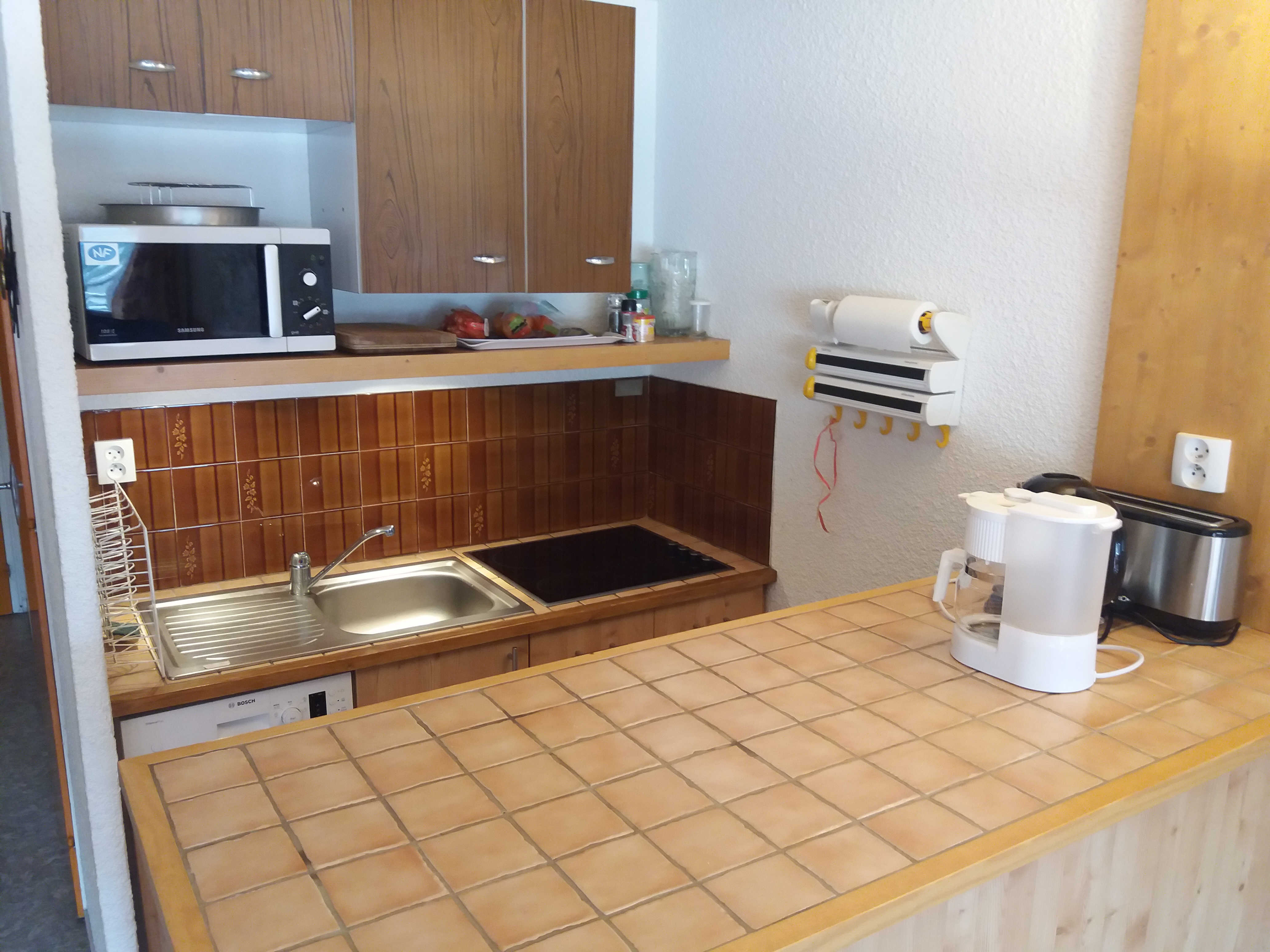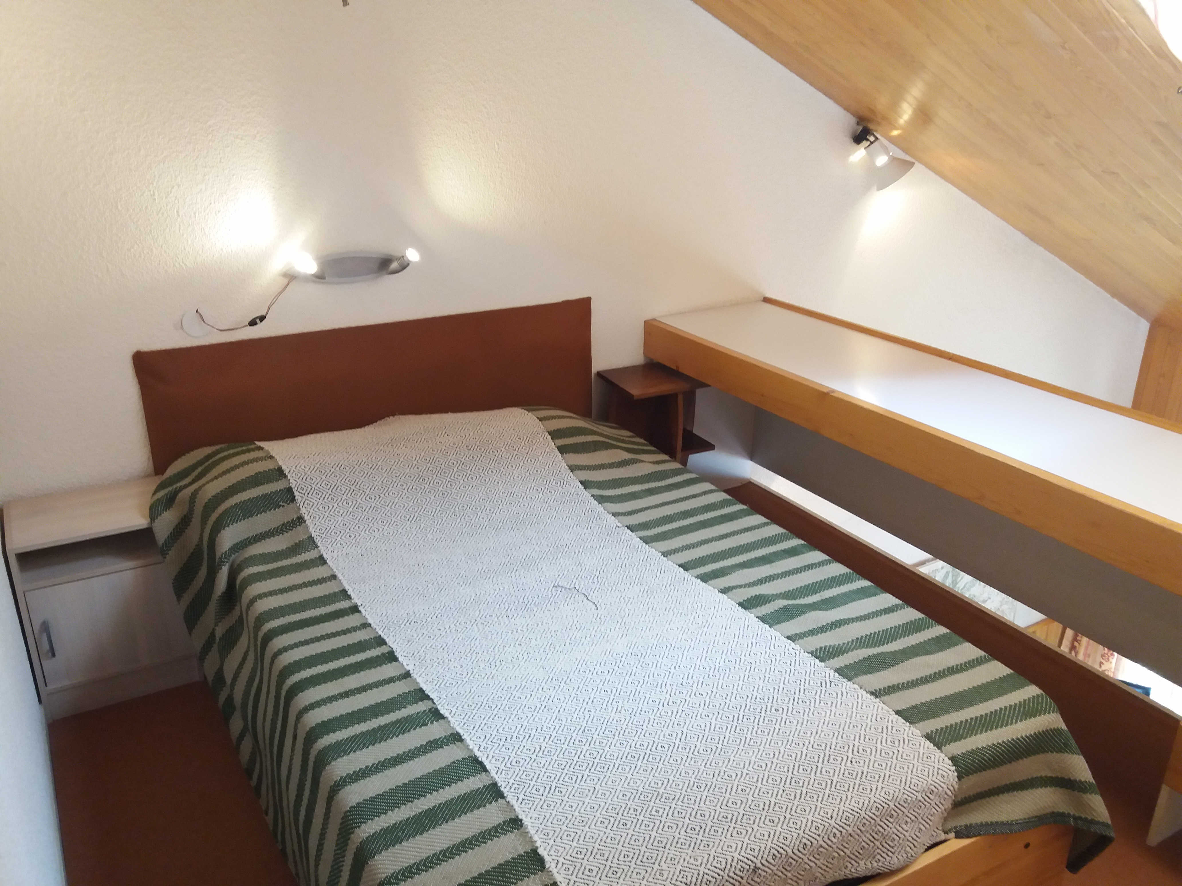 Séjour avec une banquette clic-clac deux places. Mezzanine avec un lit deux places et deux lits superposés. Salle d'eau refaite à neuf et WC indépendants. TV couleur. Casier à skis.