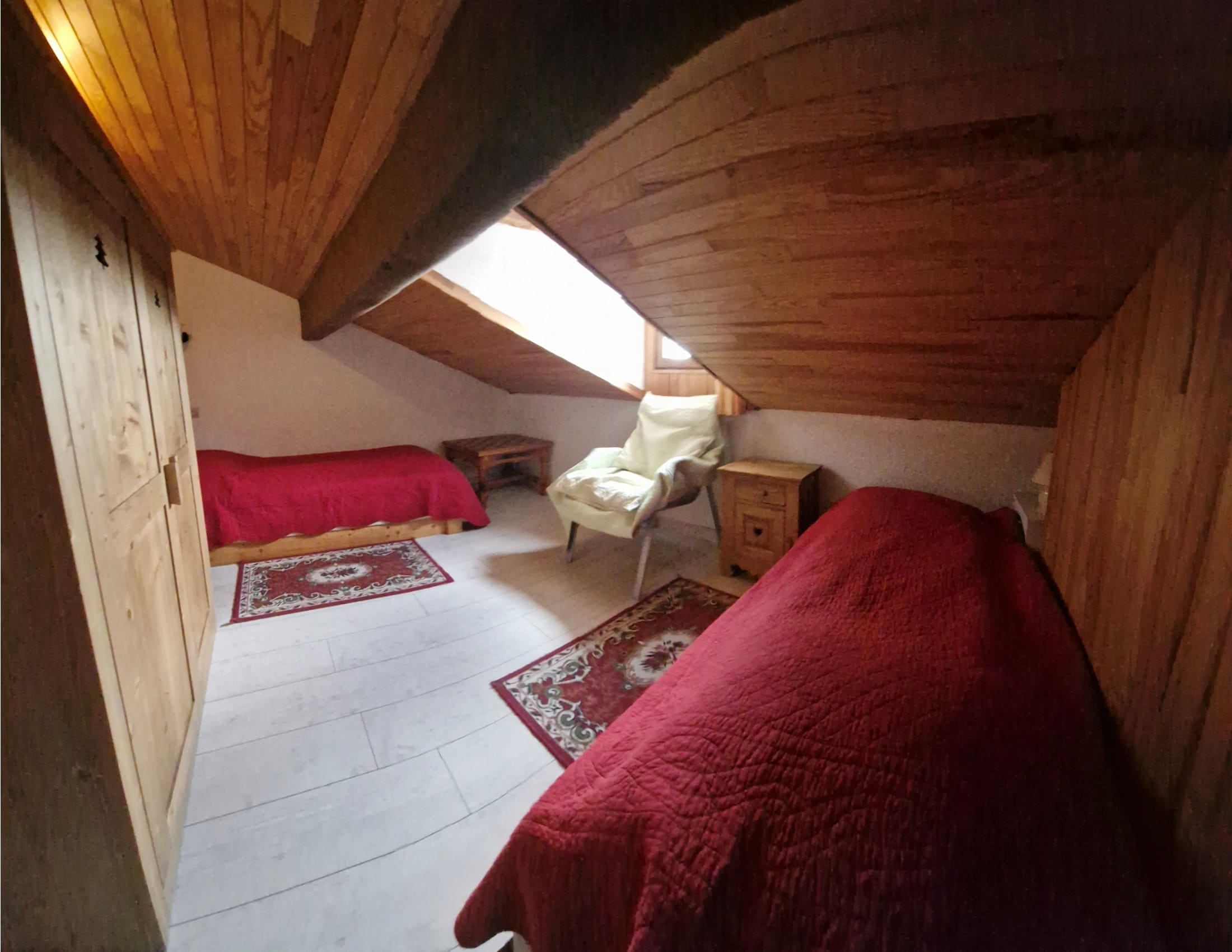Cuisine équipée d'une gazinière, four, four fonction grill et micro-ondes, réfrigérateur. Séjour avec deux lits une place. Une chambre avec un lit deux places en 130 cm, une chambre mansardée avec deux lits une place. Salle de bains, WC. Accès WIFI gratuit. Téléviseur.