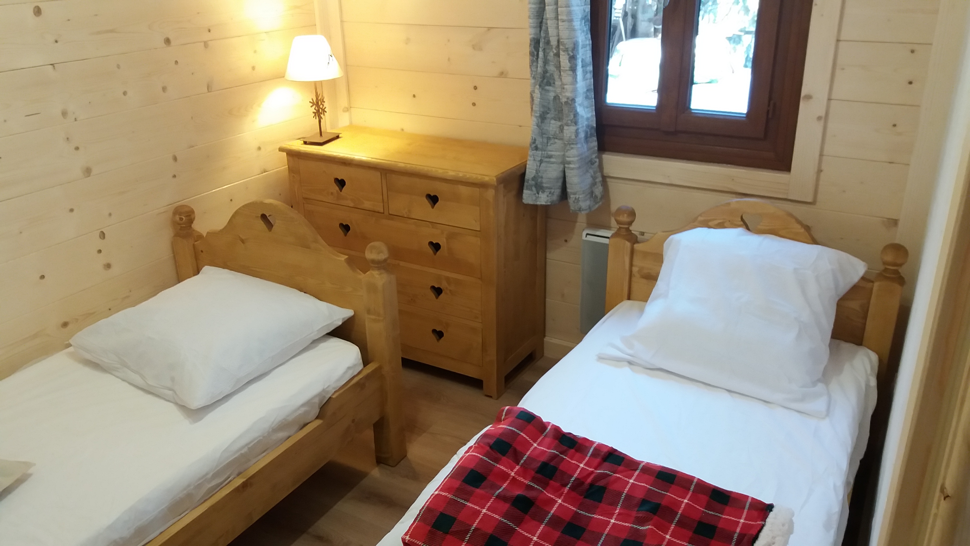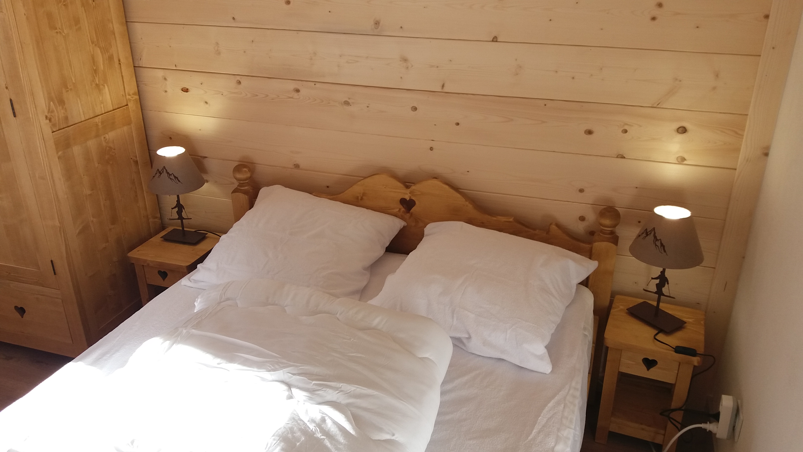 Une chambre avec un lit deux places en 140 avec couette 240x220 et une chambre avec deux lits une place en 90 avec couettes 150x200.
