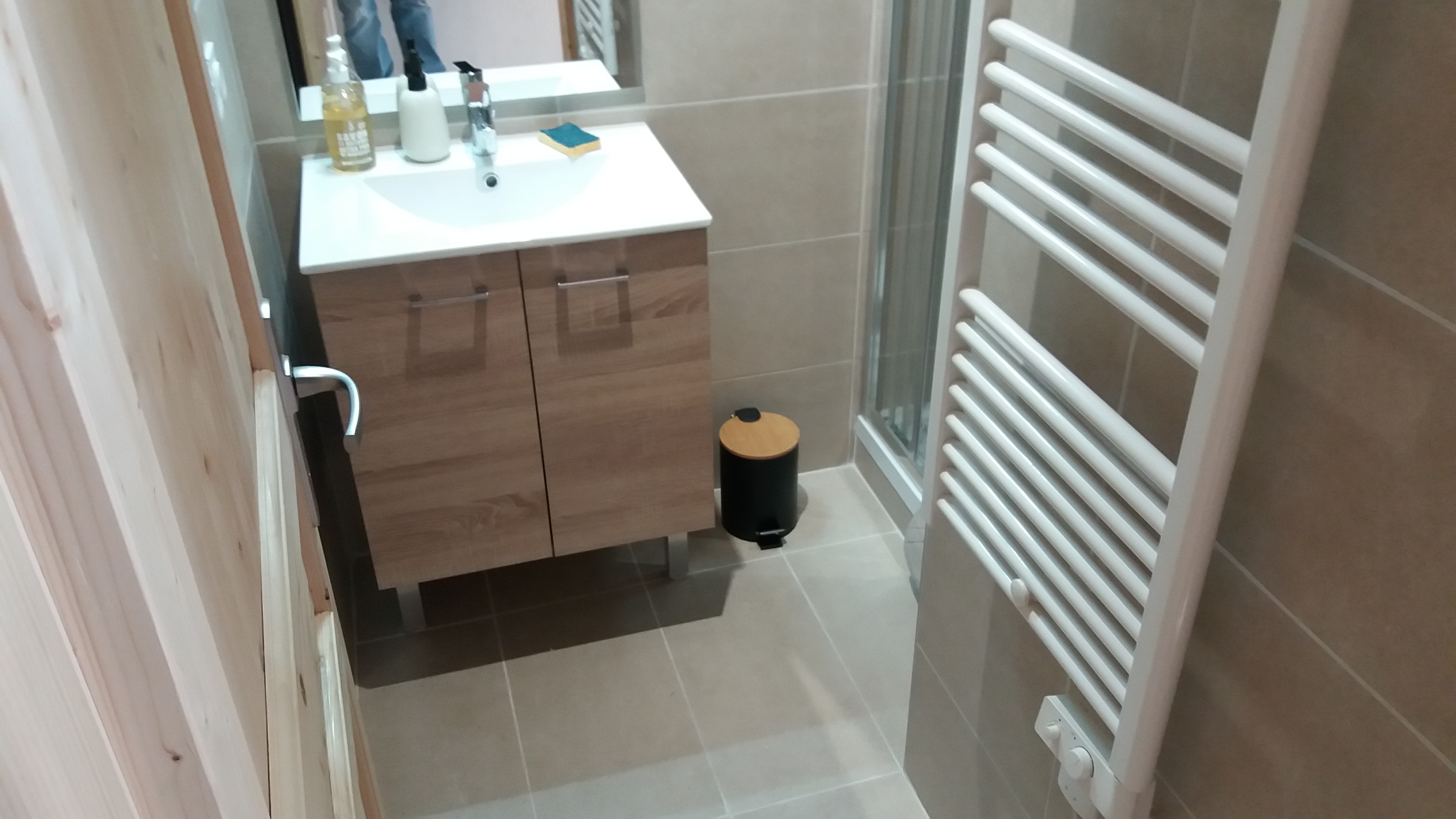 Une salle d'eau avec sèche serviette. Un WC indépendant.