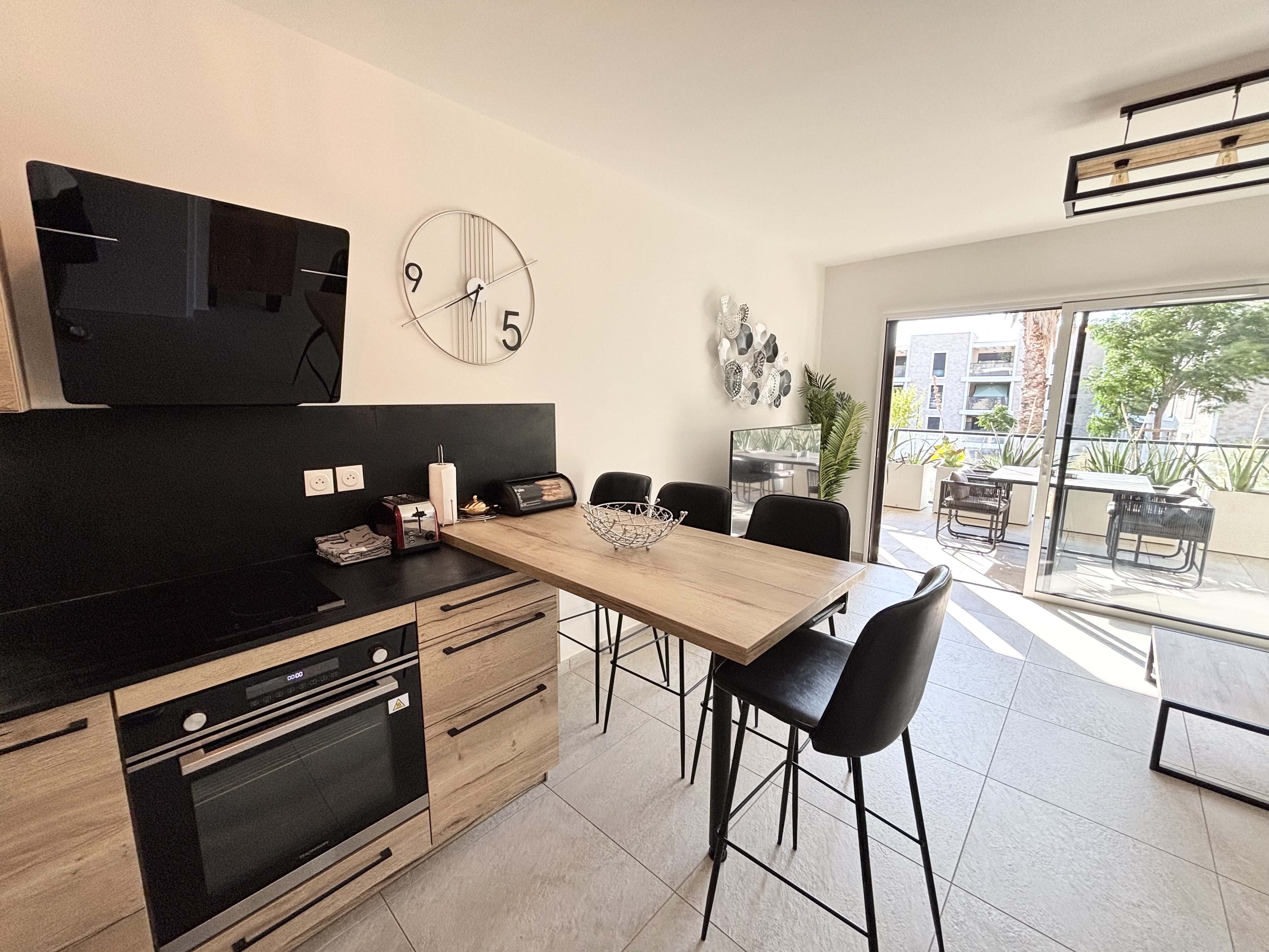 Situé aux Terrasses de la Mer, la résidence la plus prisée du secteur, cet appartement de 47 m² avec terrasse de 16 m² offre un cadre idéal pour un séjour alliant confort et tranquillité. A quelques pas du port de Pin Rolland, de la plage et des commerces, il bénéficie d’un emplacement privilégié.
