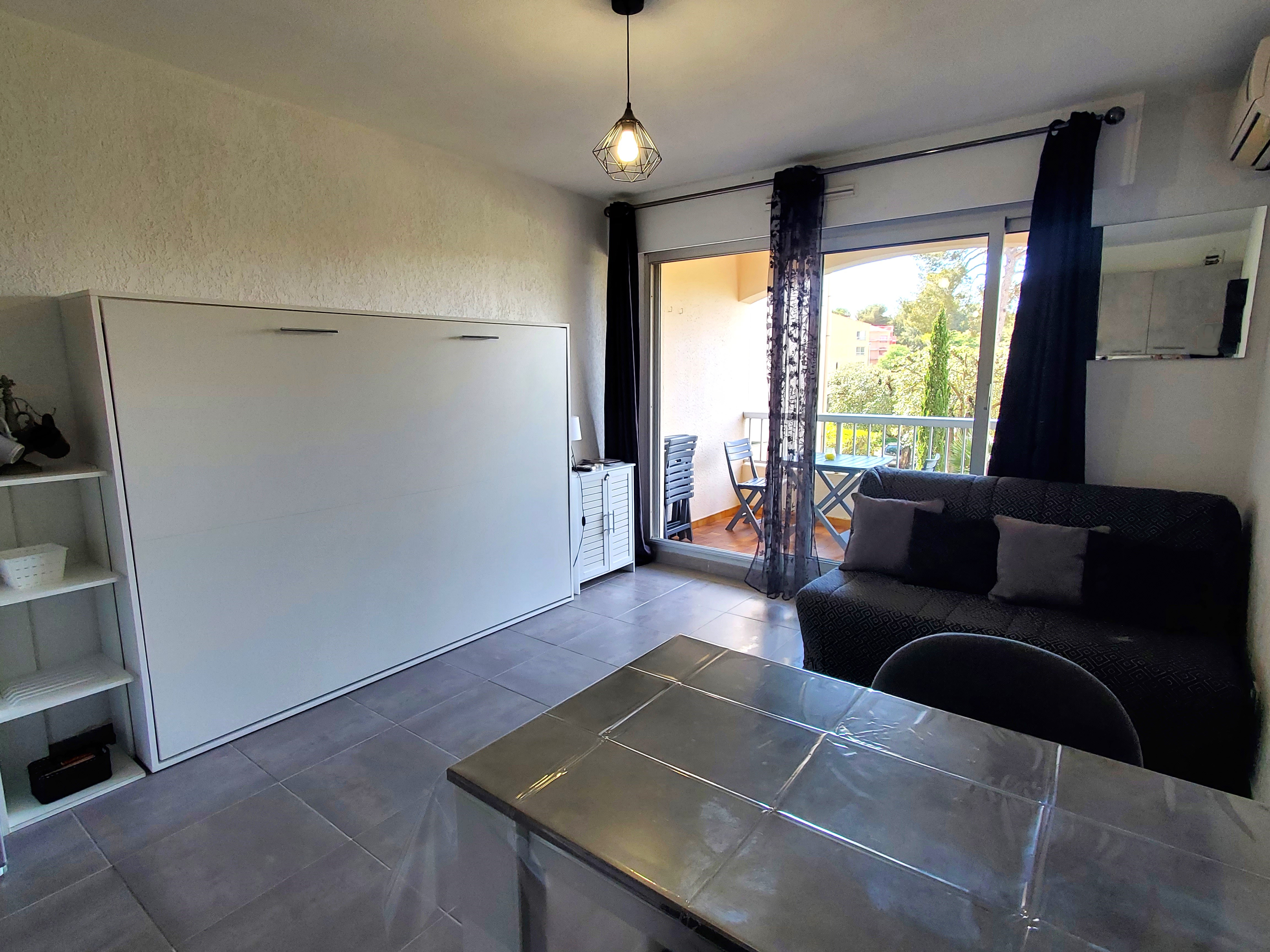 Studio de 26 m² offrant un espace de vie optimisé, parfait pour une personne seule ou un couple souhaitant profiter du cadre idyllique de Saint Mandrier.