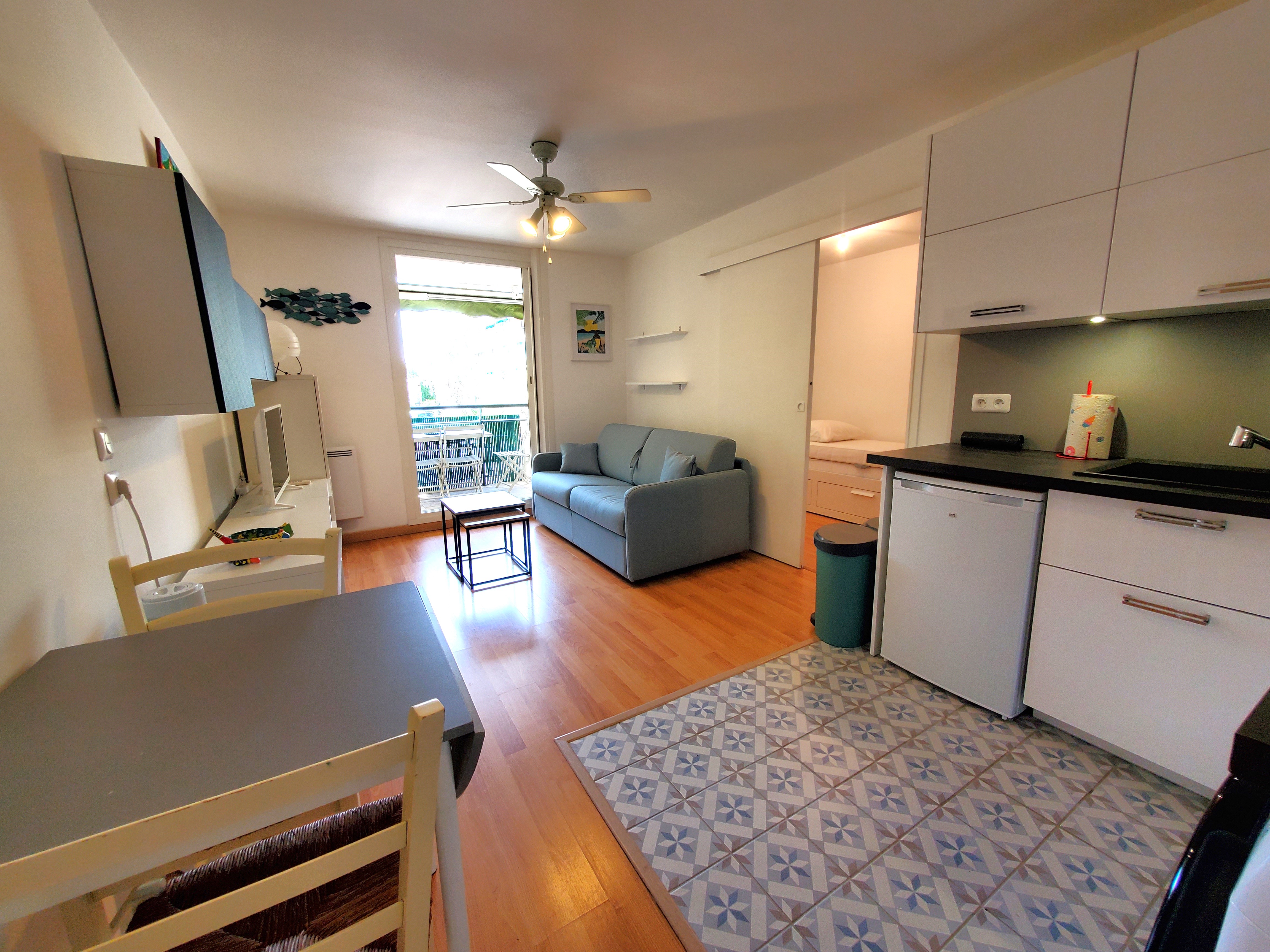 L’appartement est lumineux, fonctionnel et parfaitement équipé pour un séjour tout confort. Il dispose d’un séjour agréable ouvrant sur un espace extérieur privé, parfait pour profiter du soleil, prendre vos repas ou simplement vous détendre après la plage. La chambre, calme et cosy, garantit des nuits reposantes, tandis que la cuisine tout équipée vous permettra de préparer vos repas comme à la maison.