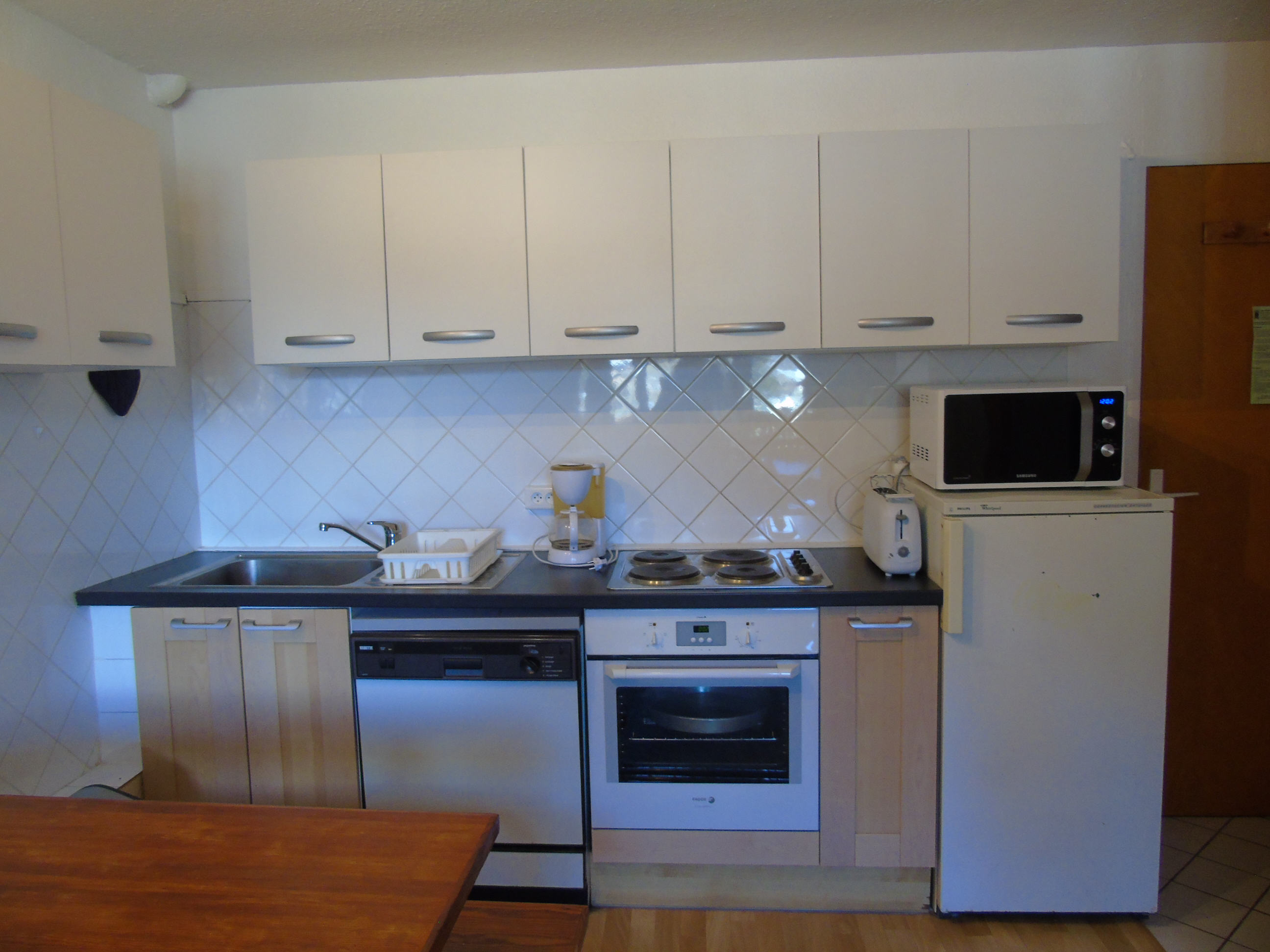 - Coin cuisine équipé : plaques induction 4 feux, micro-ondes, four, réfrigérateur, lave vaisselle, cafetière à filtre, grille pain, service à fondue