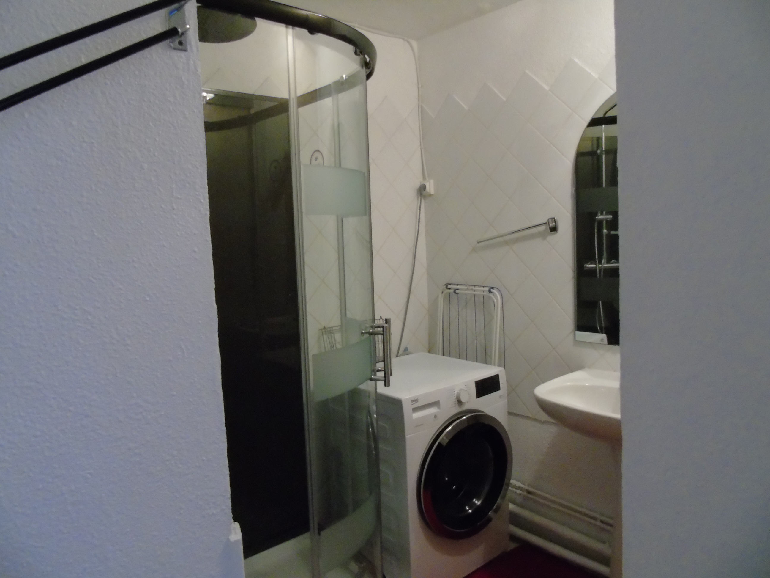 - Salle de bain avec douche, lavabo, machine à laver. WC séparé