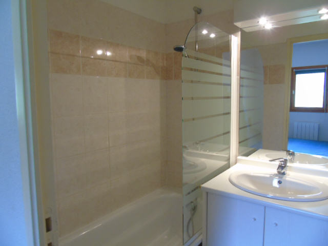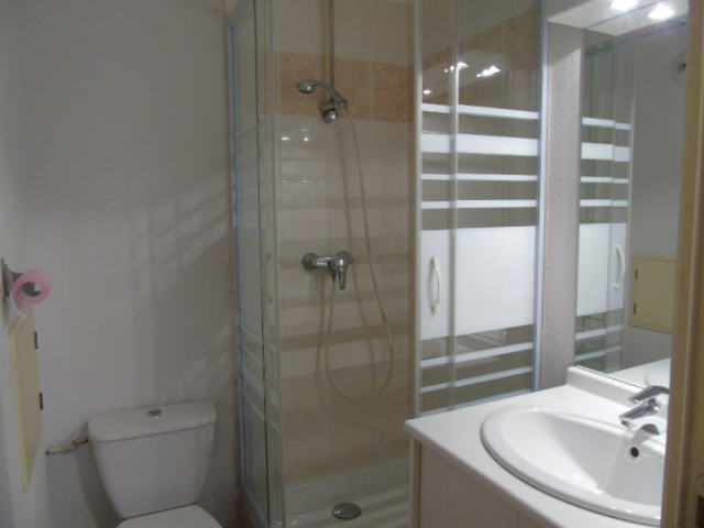 - Salle de bain avec douche, lavabo et WC