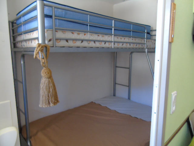 - Chambre cabine avec 1 lit double (140x190) et 1 lit simple (80x190) en mezzanine