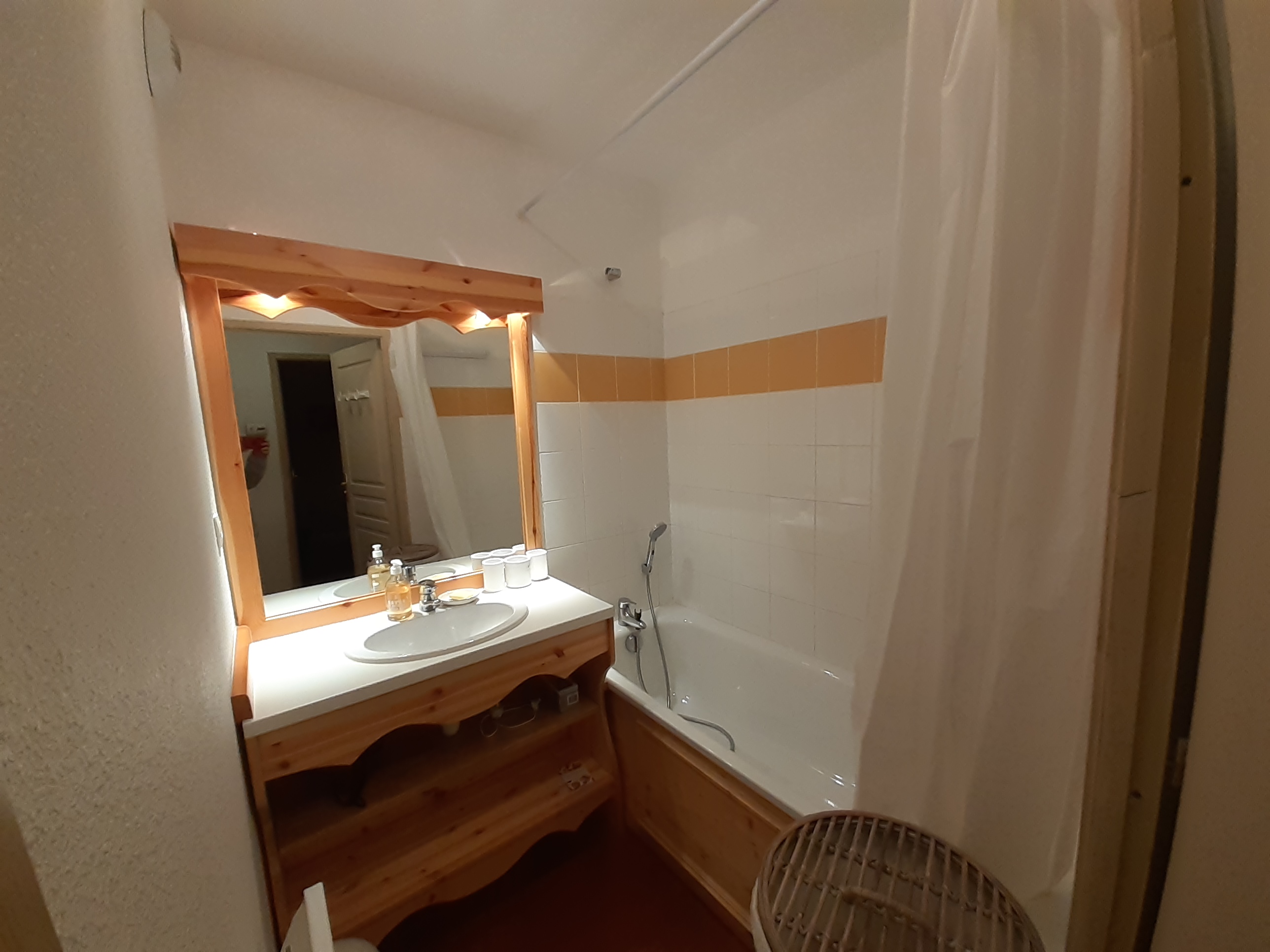 - Salle de bain avec baignoire, lavabo et sèche-cheveux. WC séparé