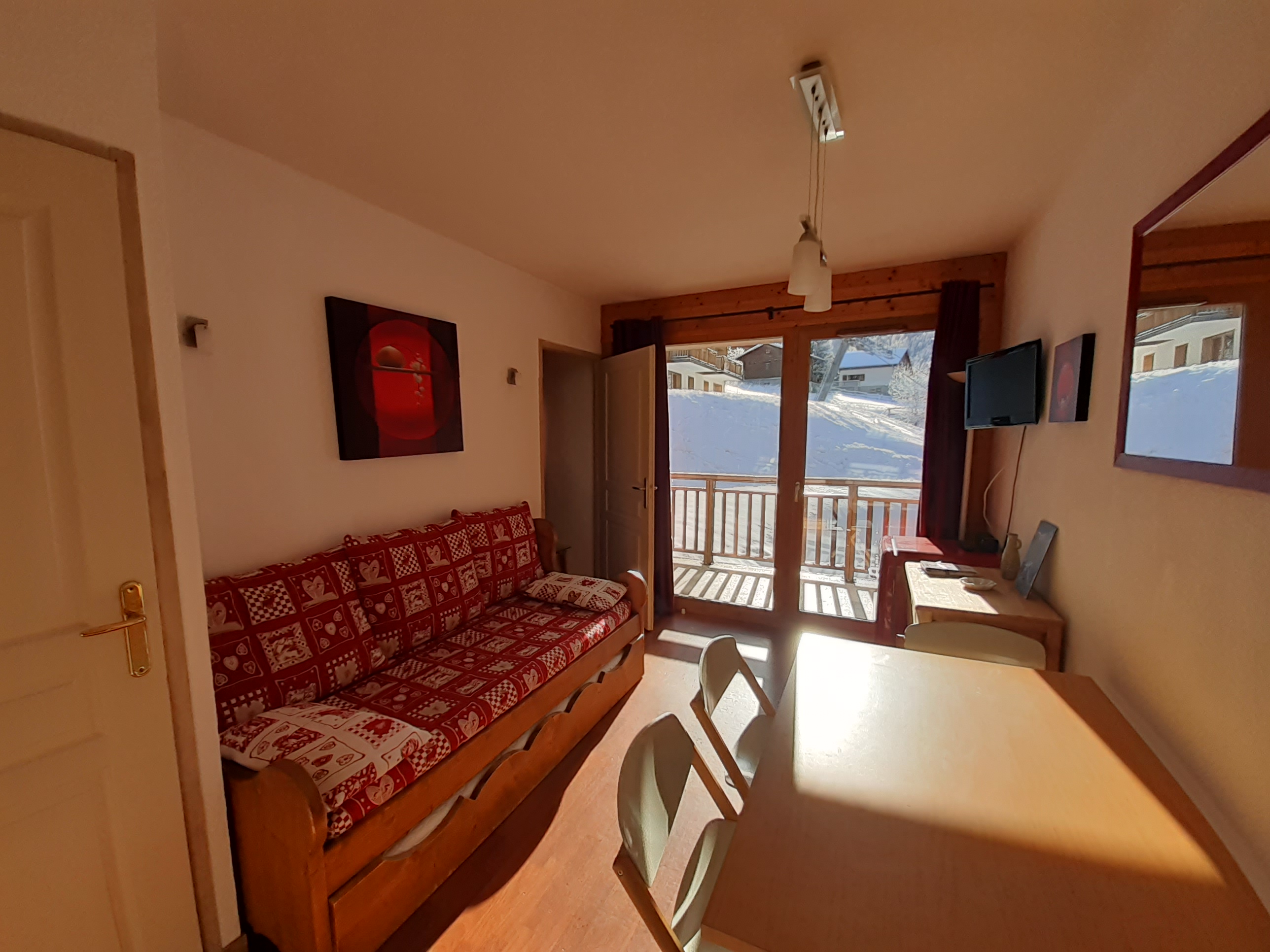 Studio + Cabine 4 personnes de 26m² situé à Valfréjus Résidence Chalet de Florence - Bâtiment 2 à 100m du Télécabine d'Arrondaz, des commerces et 150m des écoles de ski.
