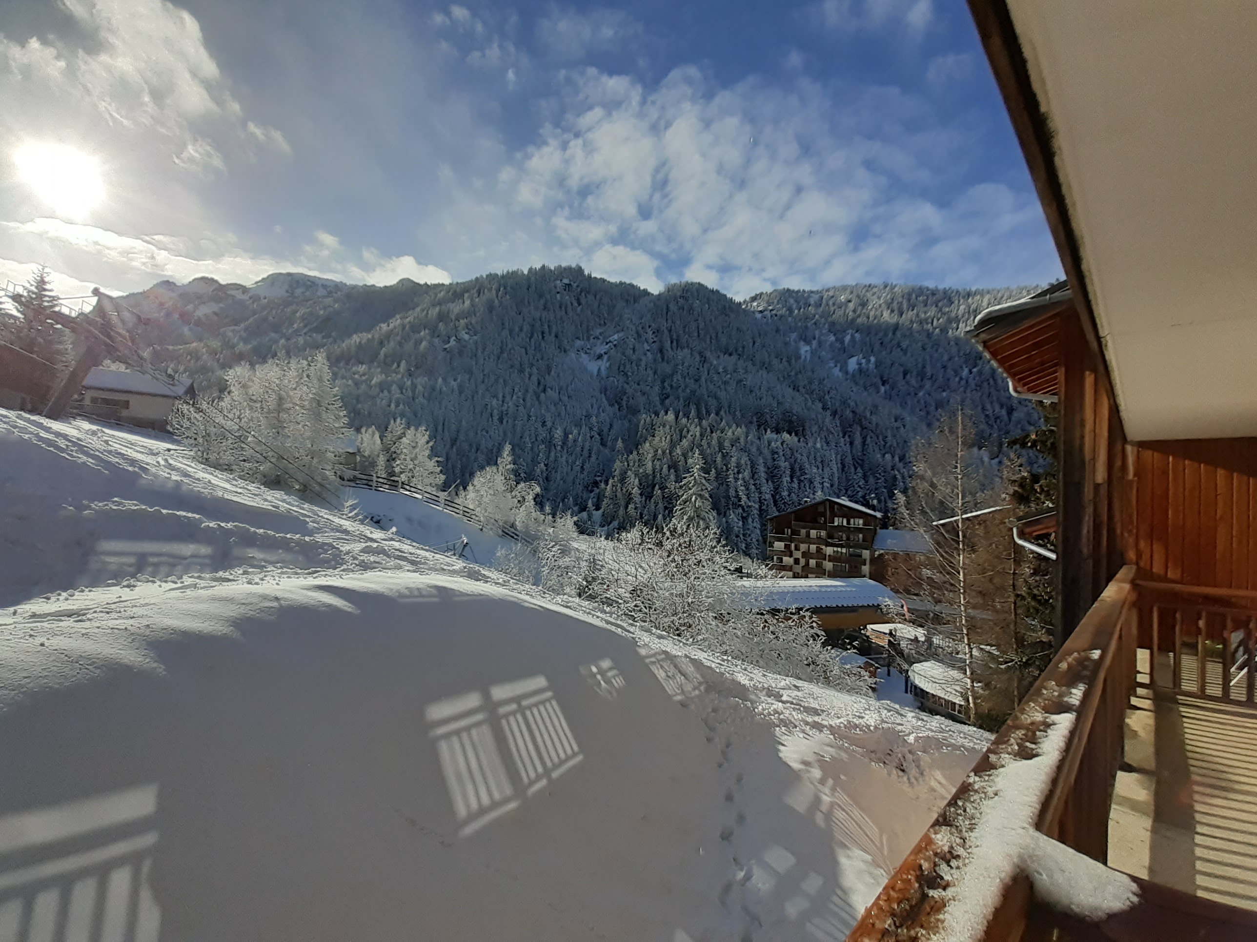 Situation : Niveau -1 avec ascenseur. Balcon orienté sud/ouest - Vue sur la télécabine et centre de la station