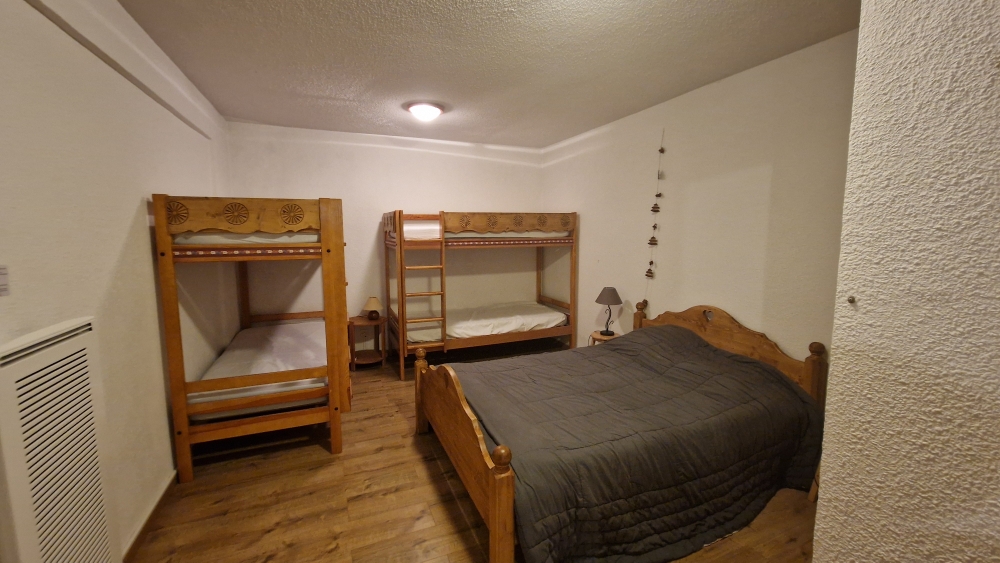 - Chambre avec 1 lit double (140x190) + 2 lits superposés (80x190)