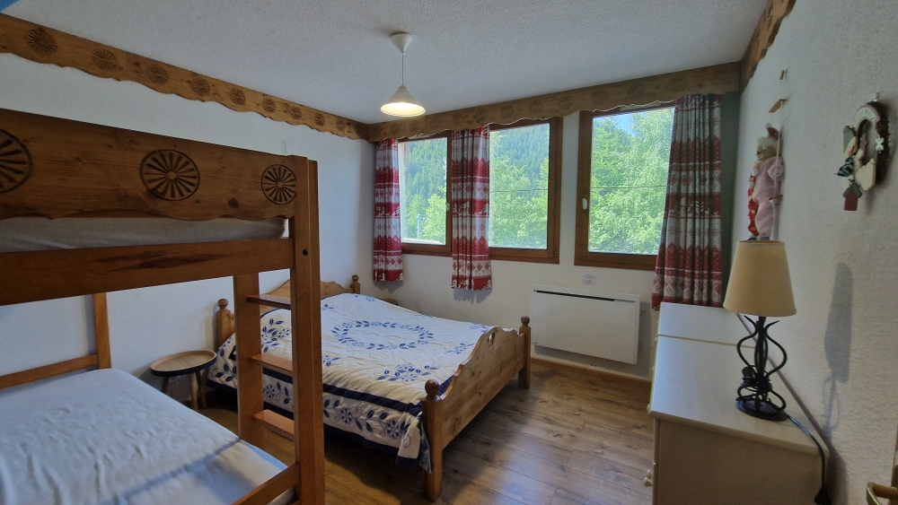 - Chambre avec 1 lit double (140x190) + 1 lits superposés (80x190) + fenêtres