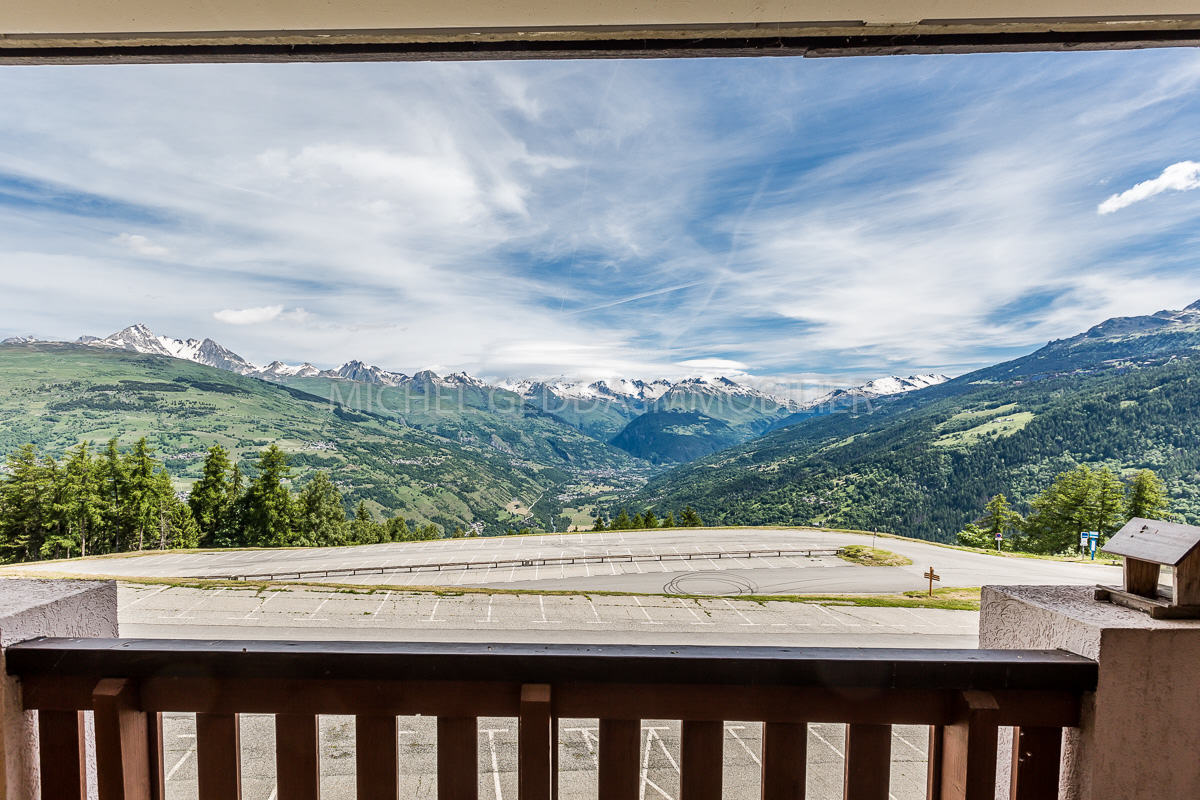 Le balcon exposé Nord Ouest, a une vue magnifique sur la vallée et le Mont Blanc.
