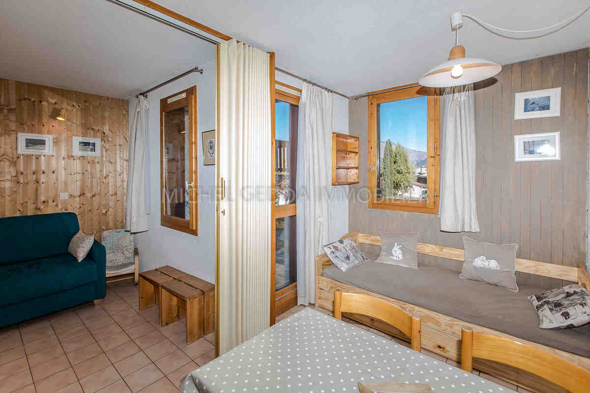 Ce joli studio divisible de 25m2 , meublé et équipé pour 4 personnes (linge non inclus) situé au coeur de Montchavin, Résidence Le Crey comprend :