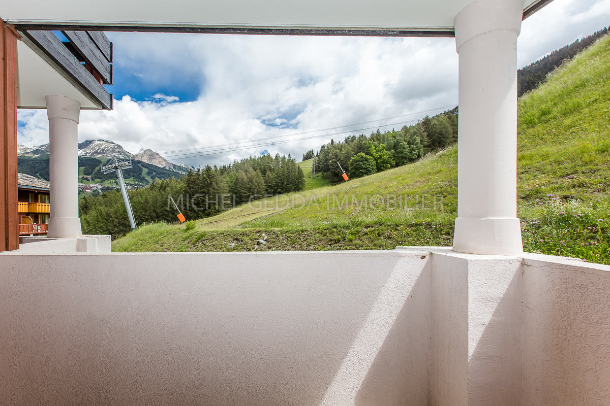 Le balcon exposé Sud Est a vue sur les pistes. Casier à skis.