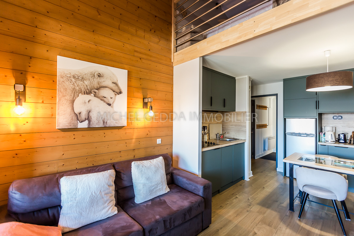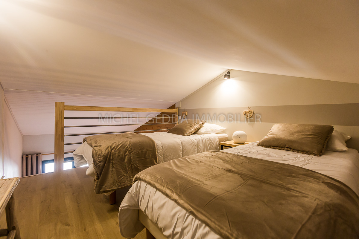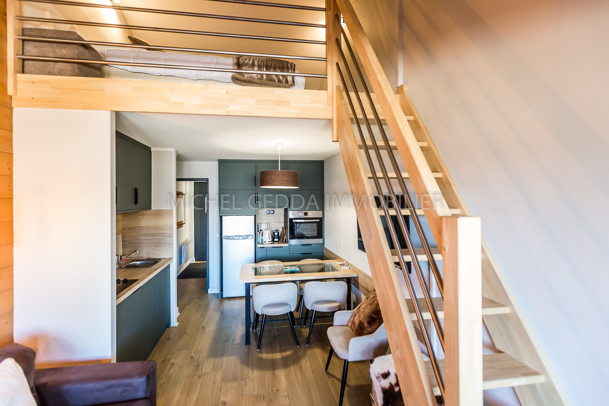 Bel appartement 2 pièces 30m2 + mezzanine (10m2 moins d' 1.80m) rénové en 2024, meublé et équipé pour 4 personnes (linge non inclus) comprenant :