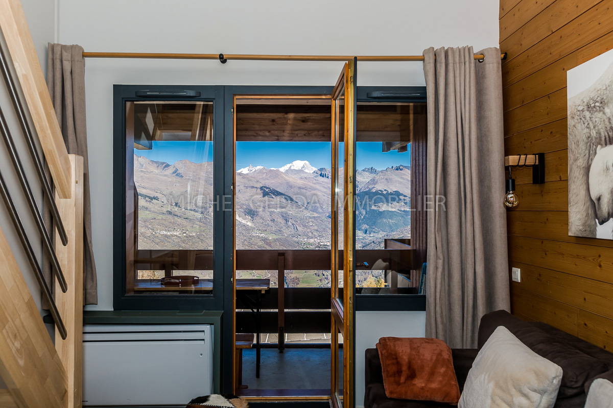 Le balcon exposé Nord Ouest, a une vue magnifique sur la vallée et le Mont Blanc.