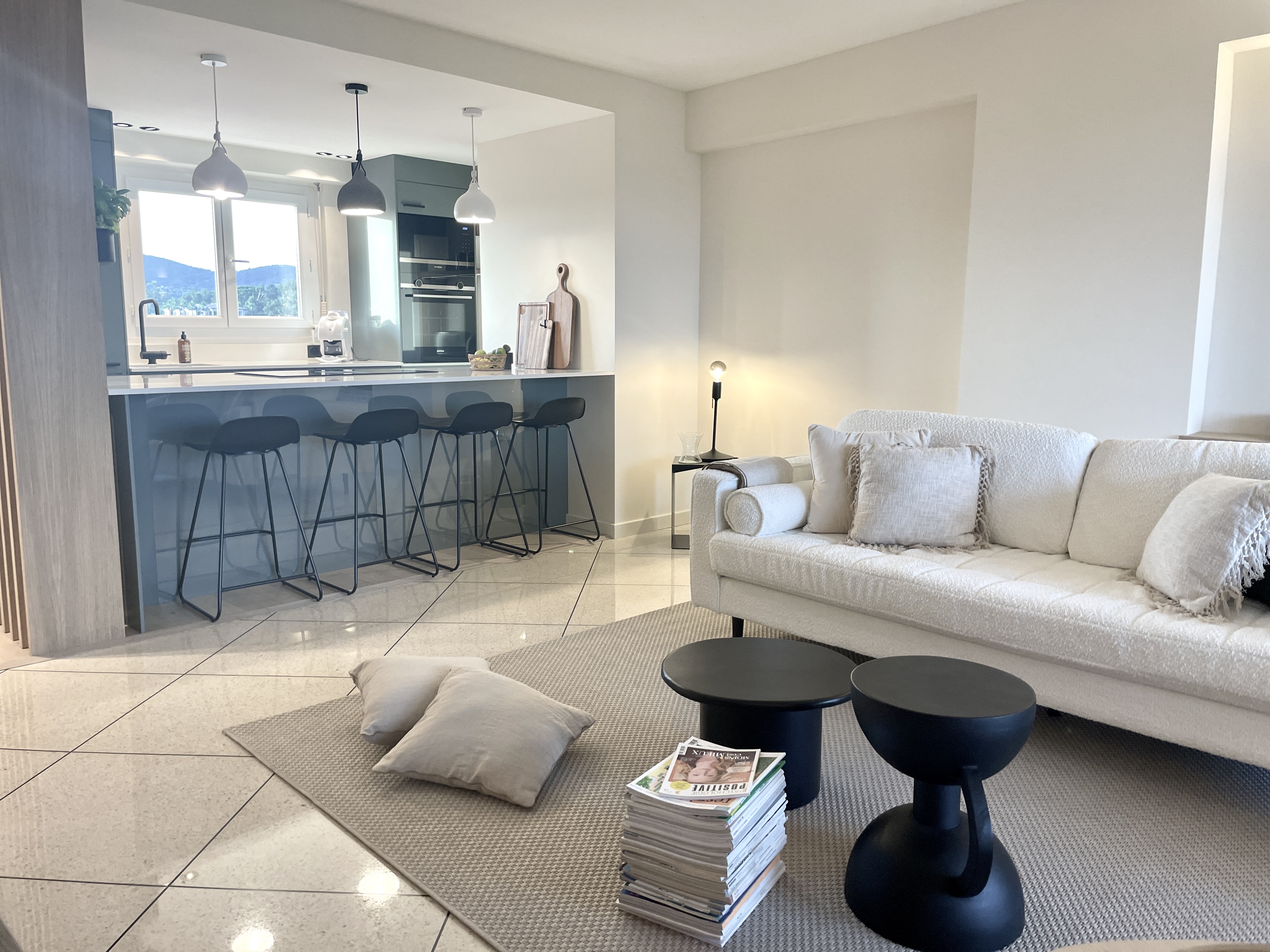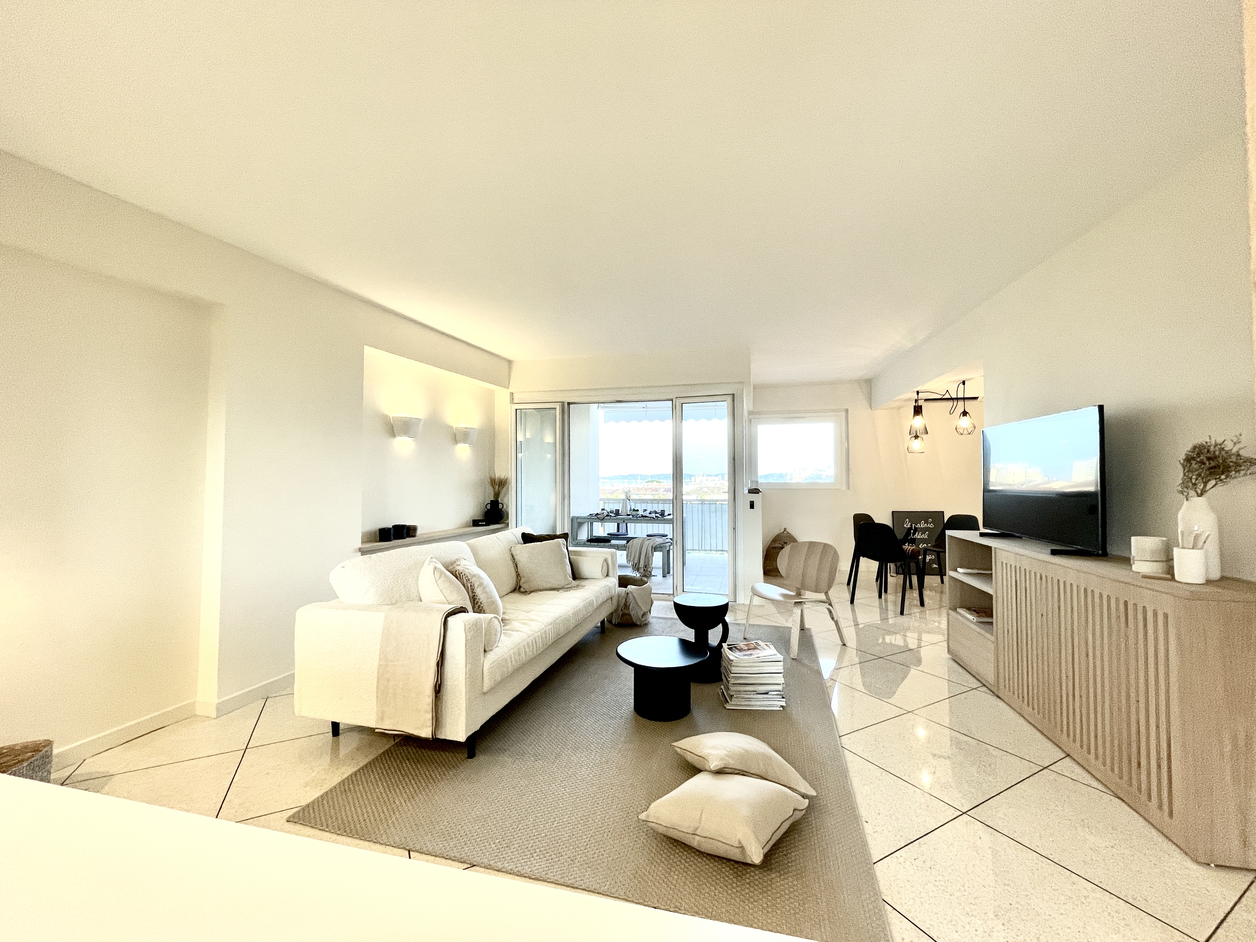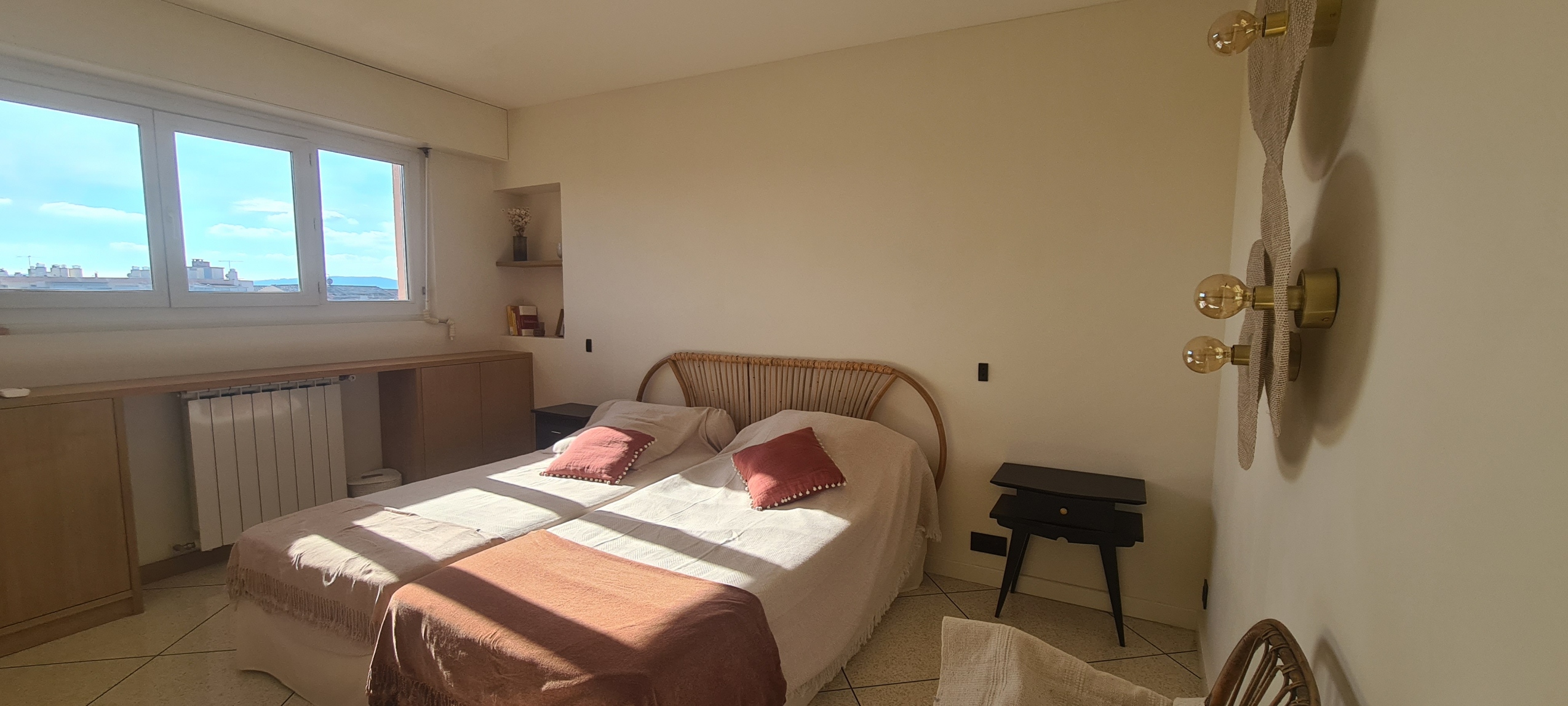 Appartement vue mer, situé dans le centre-ville de Sainte-Maxime. Entièrement refait à neuf par un architecte d'intérieur, venez passer vos vacances dans un bien cosy et vous détendre en allant visiter notre ville à pied ainsi que la plage. Stationnement dans la résidence. L'appartement dispose d'une belle cuisine équipée avec coin repas : plaque induction, hotte centrale, lave linge, lave vaisselle, machine à café, réfrigérateur congélateur, four, micro ondes, bouilloire, grille pain. Le salon dispose d'un canapé 3 places, d'un fauteuil, une TV écran plat. La salle à manger peut accueillir 4 personnes, la terrasse propose également une table pour se restaurer et profiter de la vue. A disposition : table de repassage, fer à repasser, aspirateur, plancha, 2 fauteuils relax. Le bien dispose de 2 chambres spacieuses avec rangement, salle d'eau avec douche italienne, toilettes indépendants.