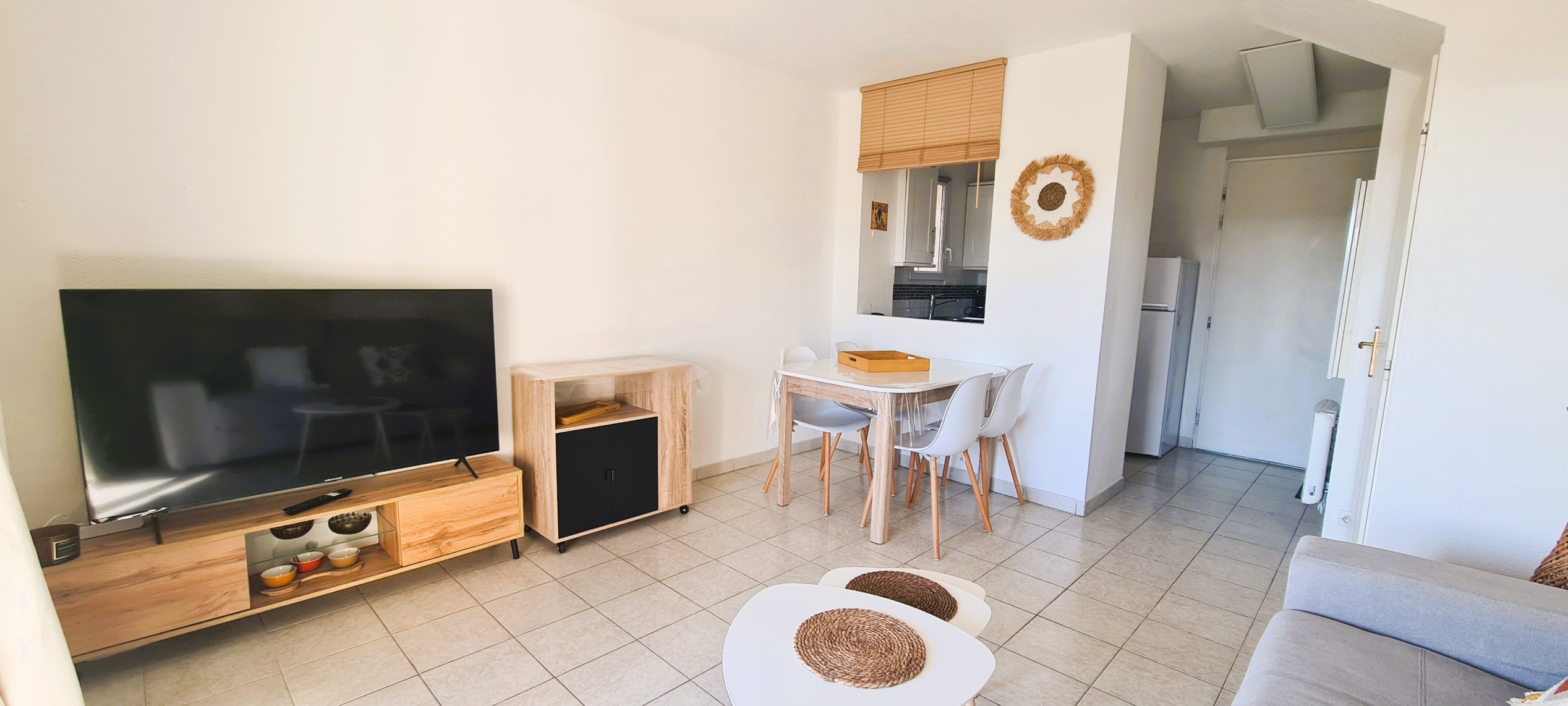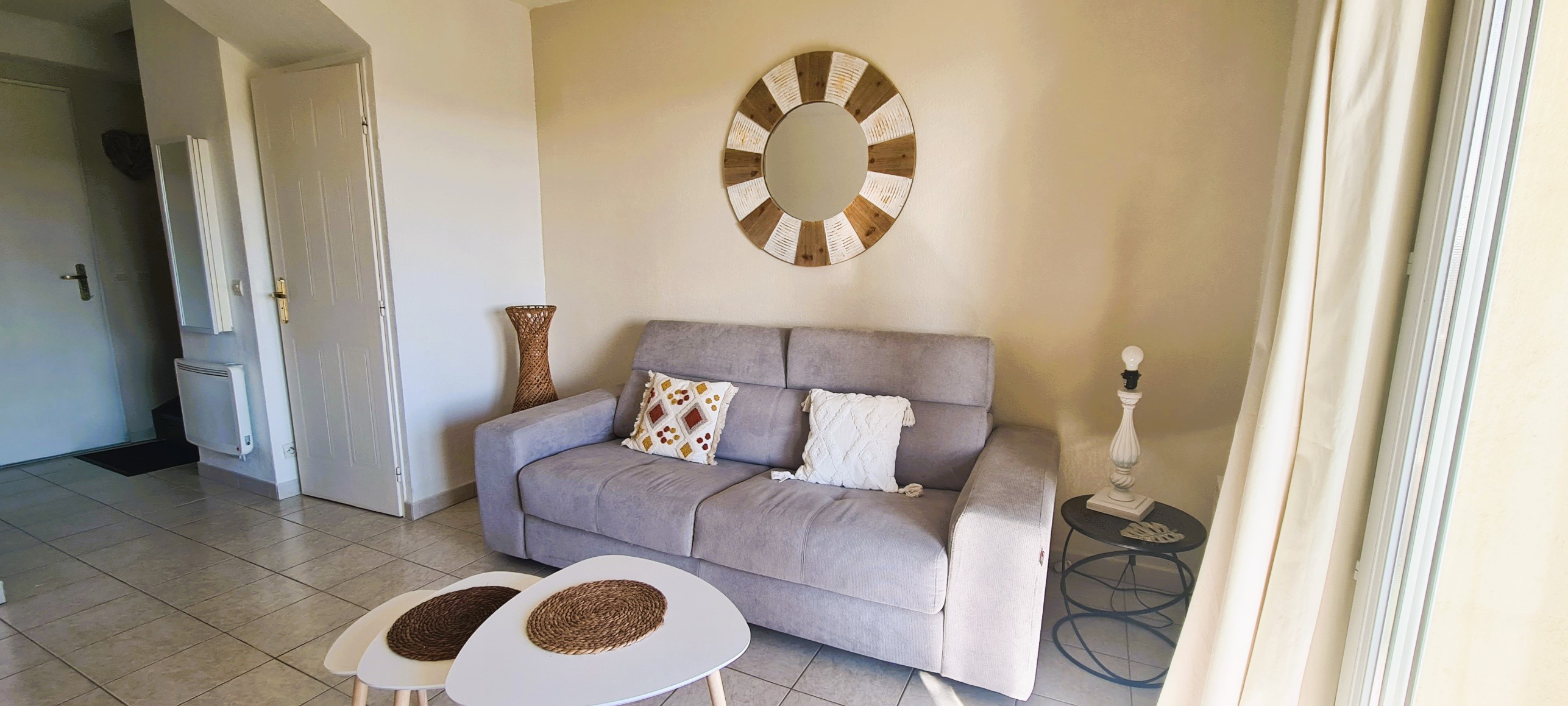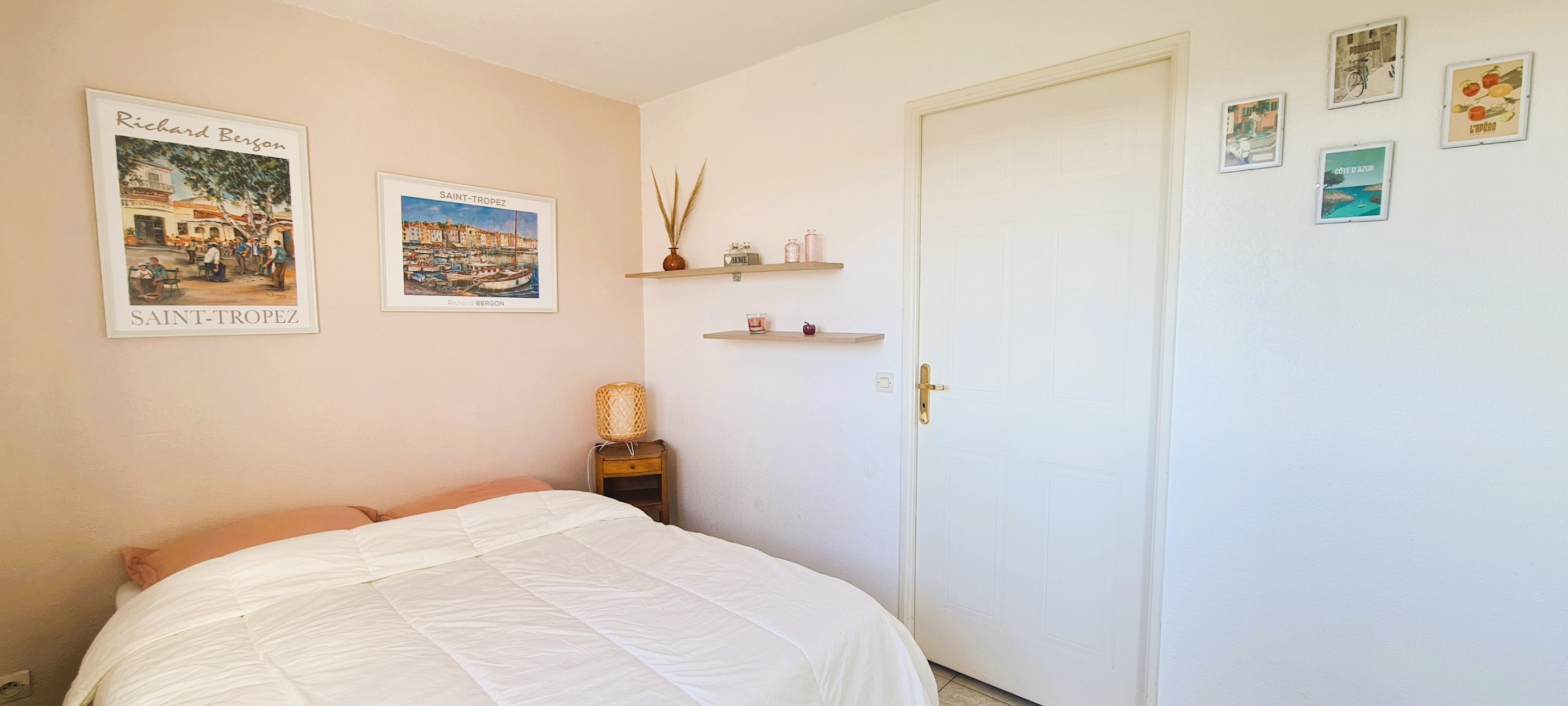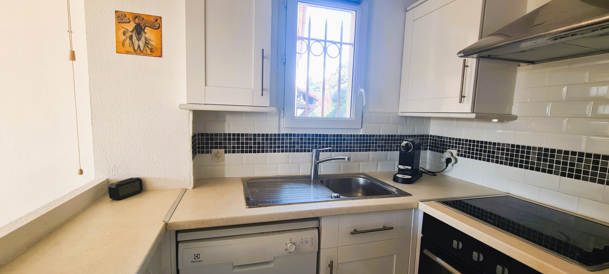Joli mazet de 3 pièces avec garage. Situé dans une résidence sécurisée, au calme avec court de tennis et piscine. Le mazet dispose d'une cuisine équipée (lave vaisselle, réfrigérateur, four, hotte, plaque 4 feux, nespresso, grille pain), salon avec TV, terrasse avec vue dégagée et aperçu mer. A l'étage, 2 chambres avec rangement, salle d'eau, toilettes séparées.