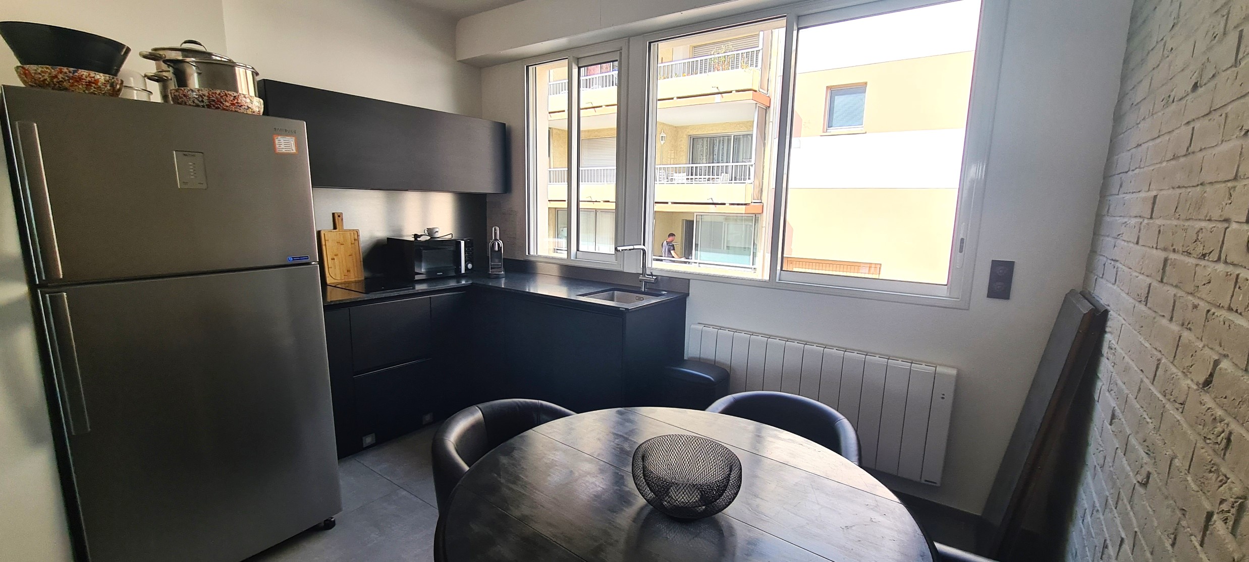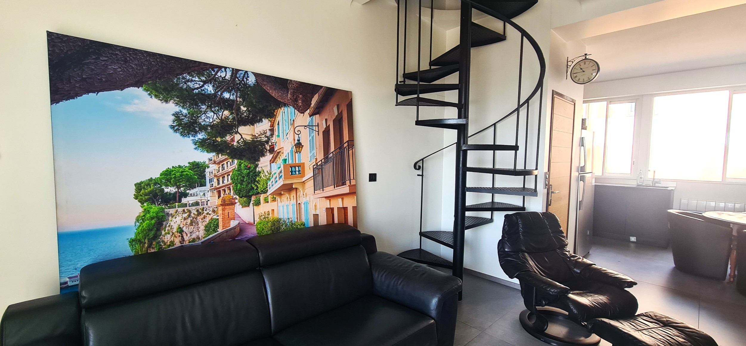 Beau mazet situé en centre-ville avec vue mer, dans une résidence en front de mer. Ce bien dispose d'une cuisine équipée ouverte sur la salle à manger, le salon équipé d'une télévision, une terrasse et toilettes invités. A l'étage, une chambre avec terrasse vue mer télévision, une chambre avec un coin nuit et 2 lits superposés, une salle d'eau, toilettes séparées. Stationnement dans la résidence.