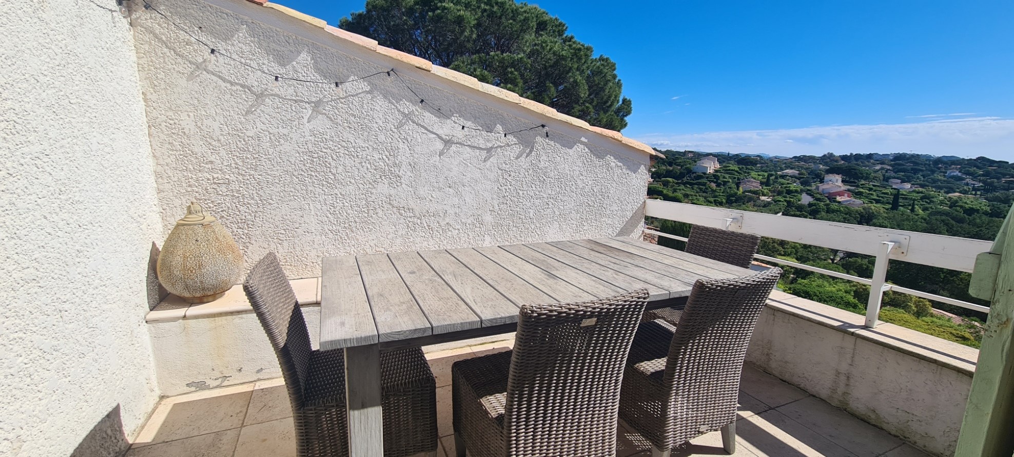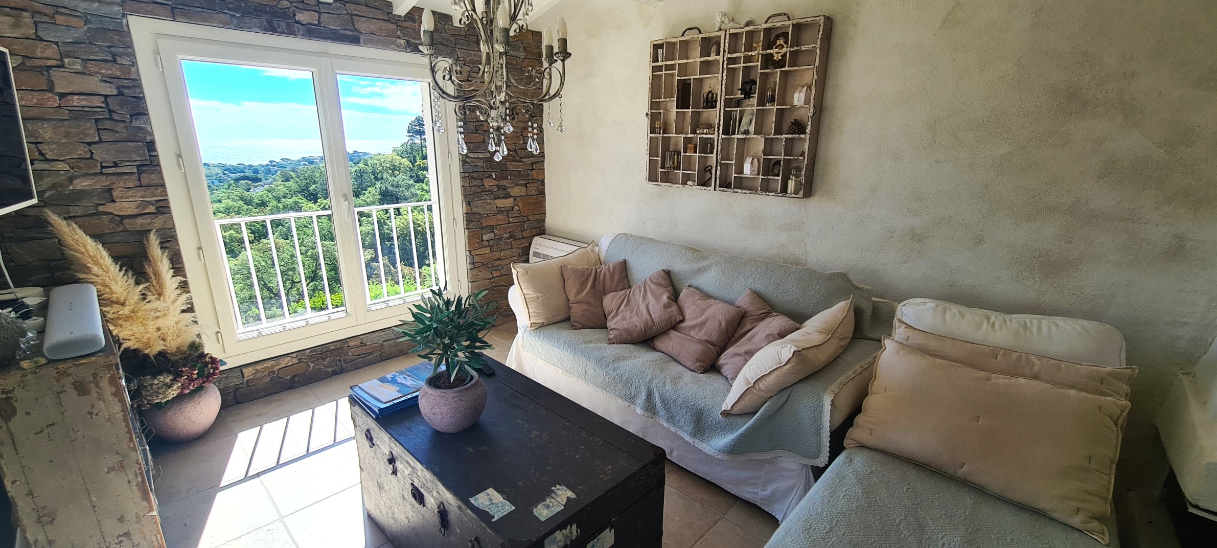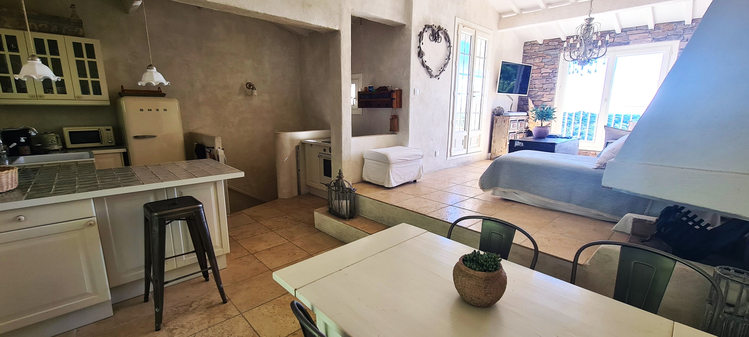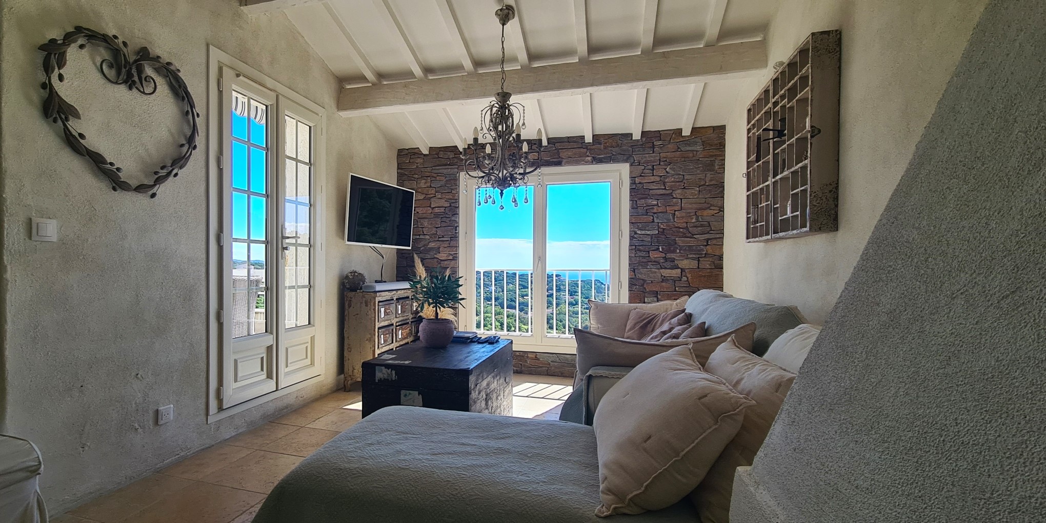 Beau mazet situé dans un domaine avec piscine, tennis. Ils dispose de 3 terrasses vous permettant de bénéficier du soleil tout au long de la journée. Le mas se compose d'une cuisine ouverte sur la salle à manger, le salon avec cheminée et accès à la terrasse vue mer.