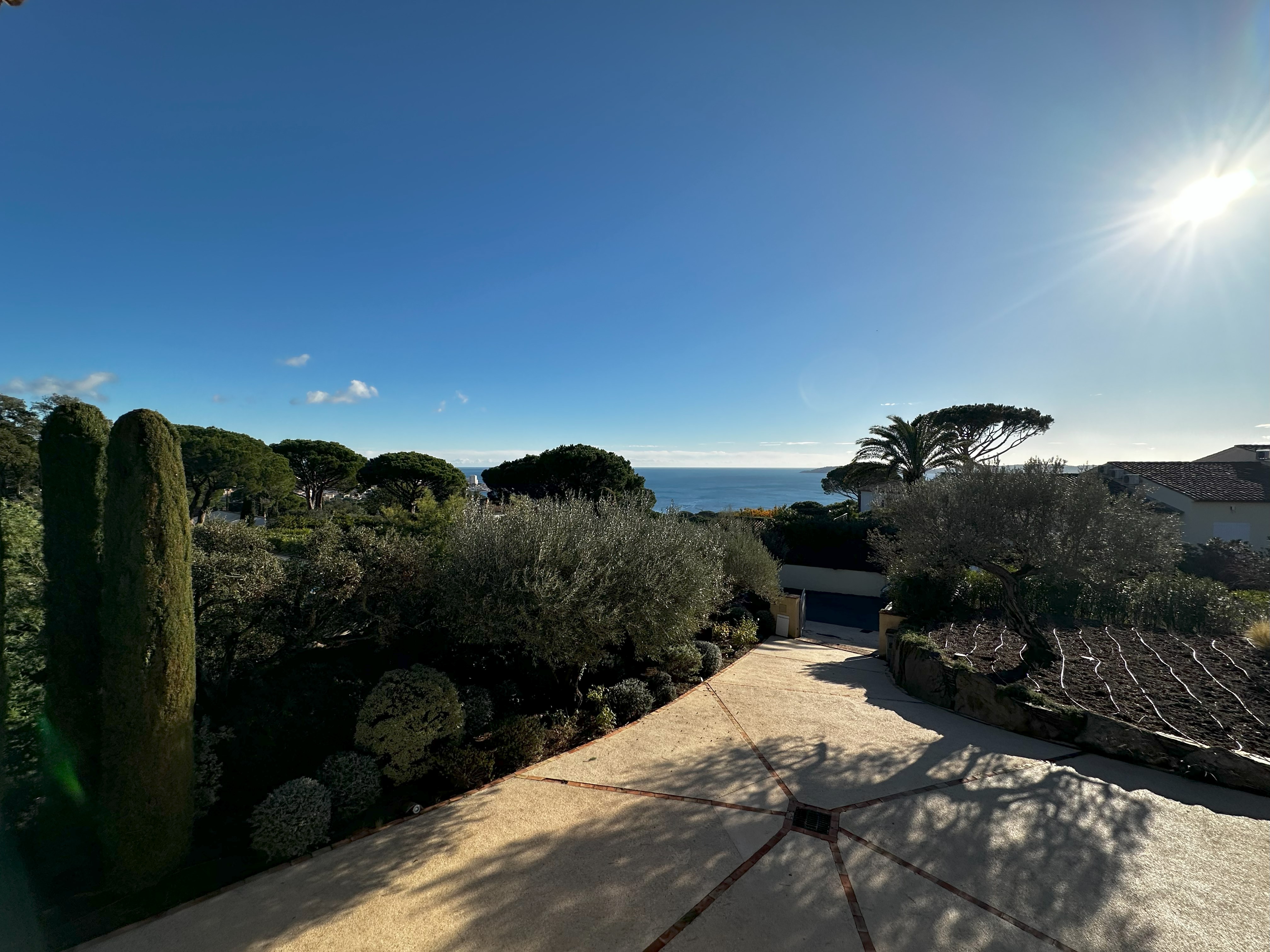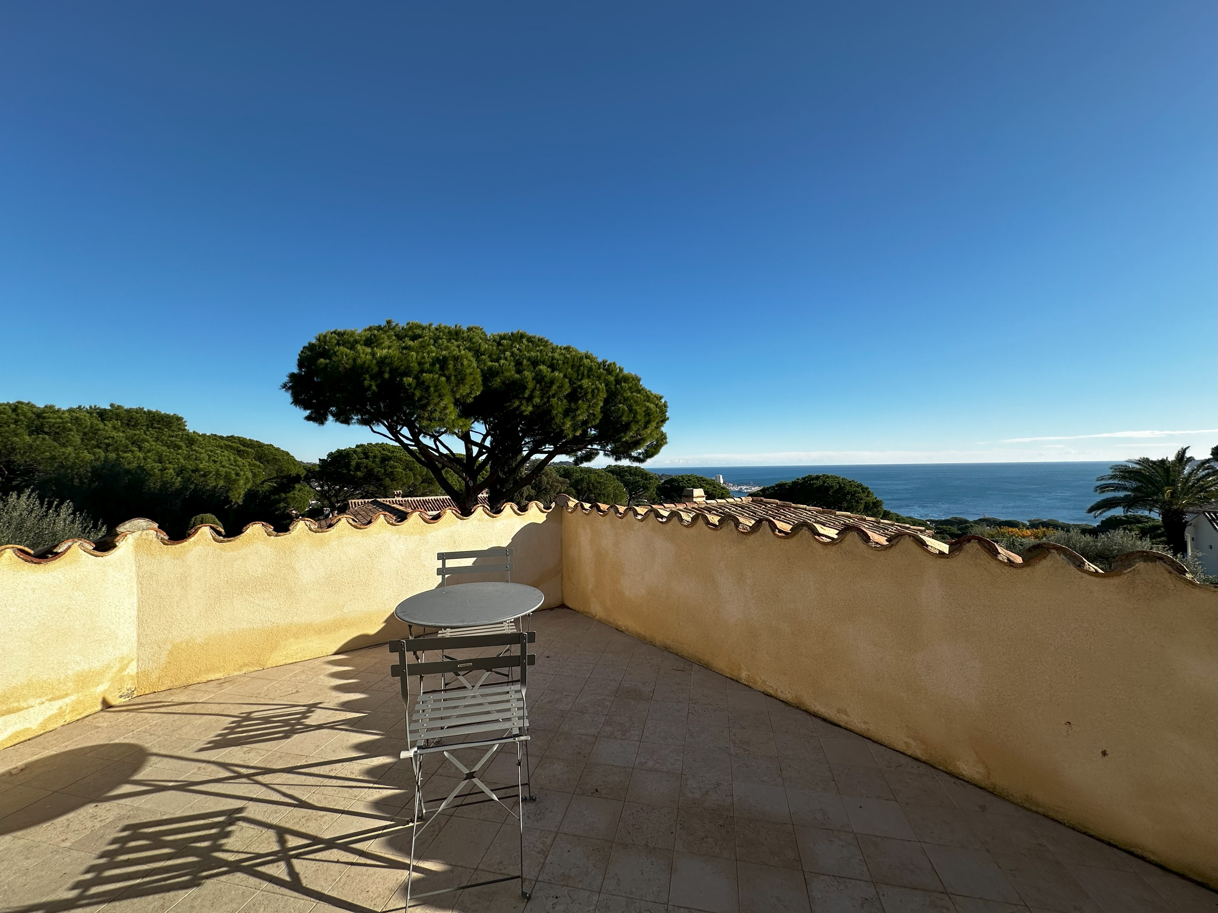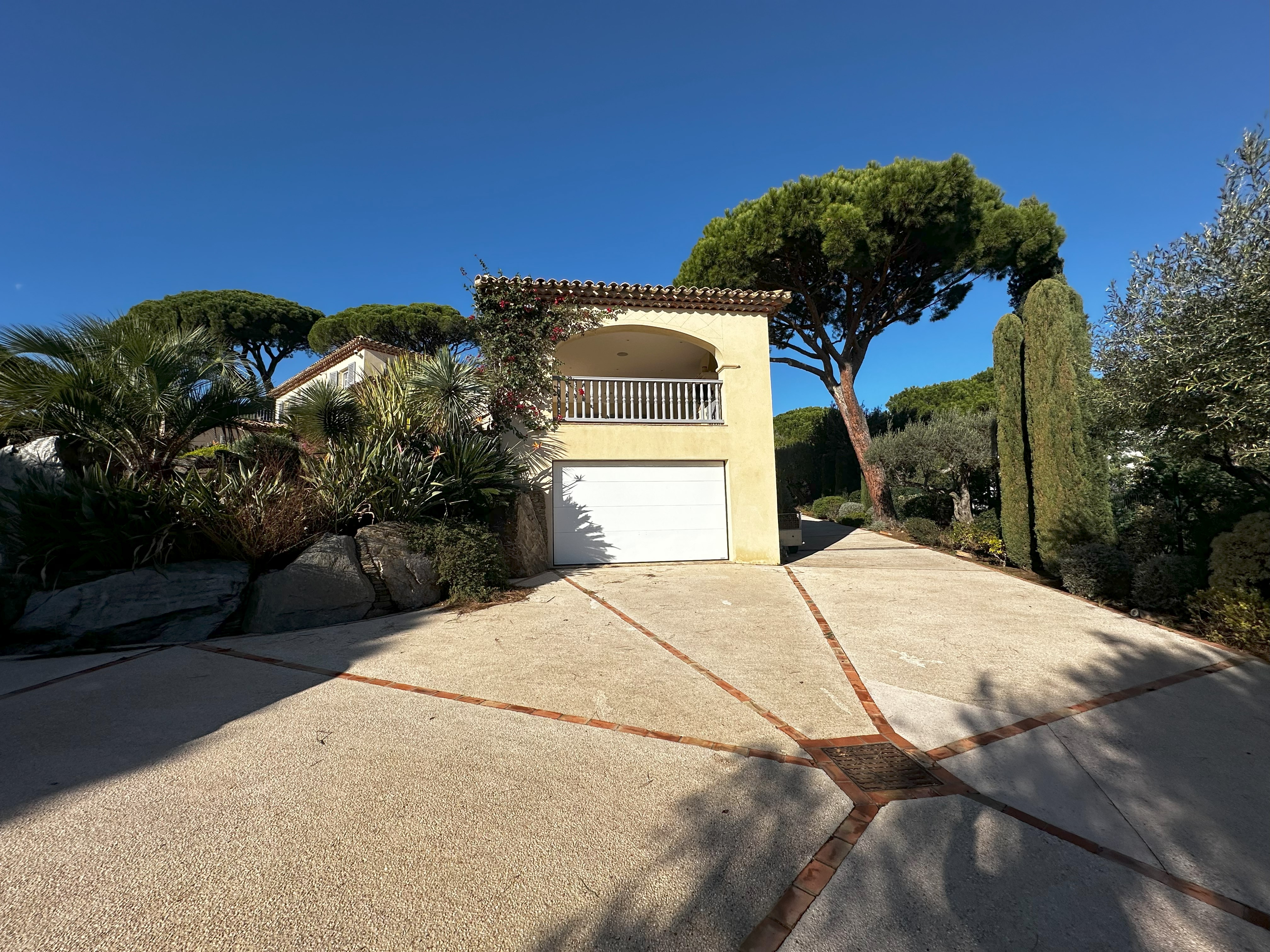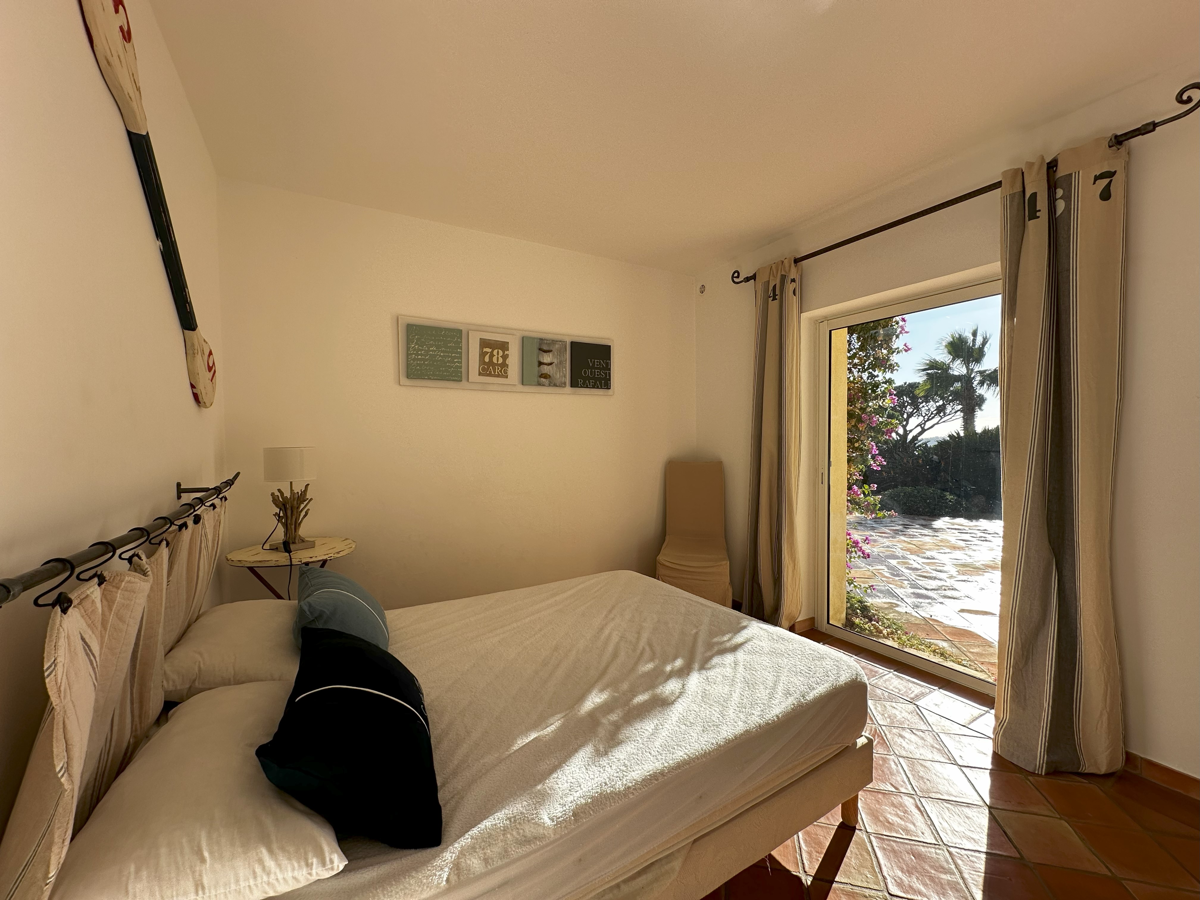 Villa de style provençal pouvant accueillir 10 personnes, d’une surface habitable de 220 m² et construite sur un grand terrain aménagé avec goût d’environ 2500 m². Située dans un domaine au calme, à 10 minutes en voiture du centre-ville et 5 minutes de la plage, sa situation, son exposition sud et sa belle vue mer en font une destination privilégiée. La villa est entièrement climatisée, disposant d’une grande terrasse abritée et d’une belle piscine de forme libre 5x11m. Au-rez-de-chaussée se trouvent 3 chambres, 2 salles de bains/douche, une grande salle de séjour avec coin repas et coin salon. A l’étage 2 chambres avec TV et terrasse solarium ainsi que 2 salles de bains/douche. Animaux non admis.