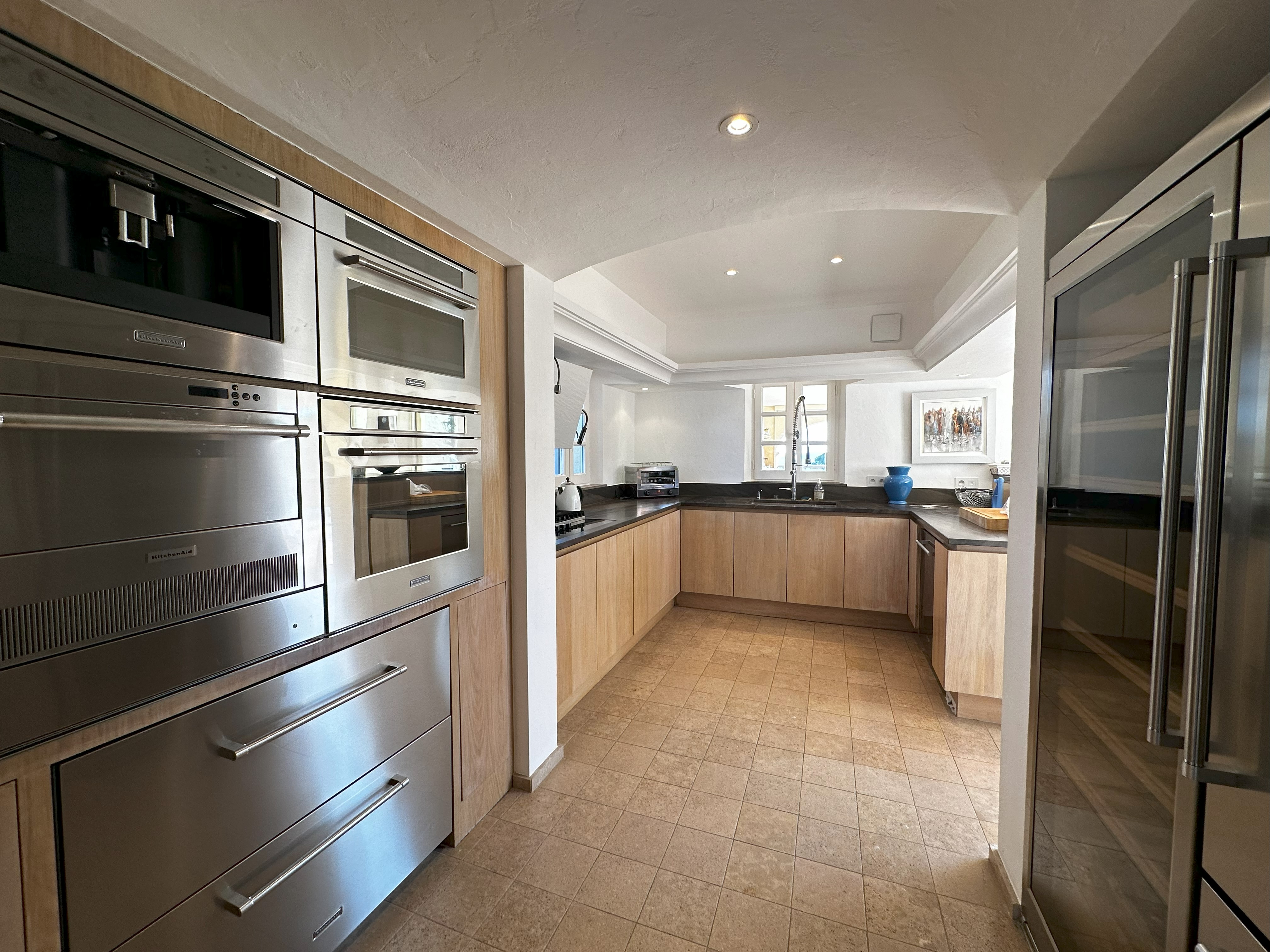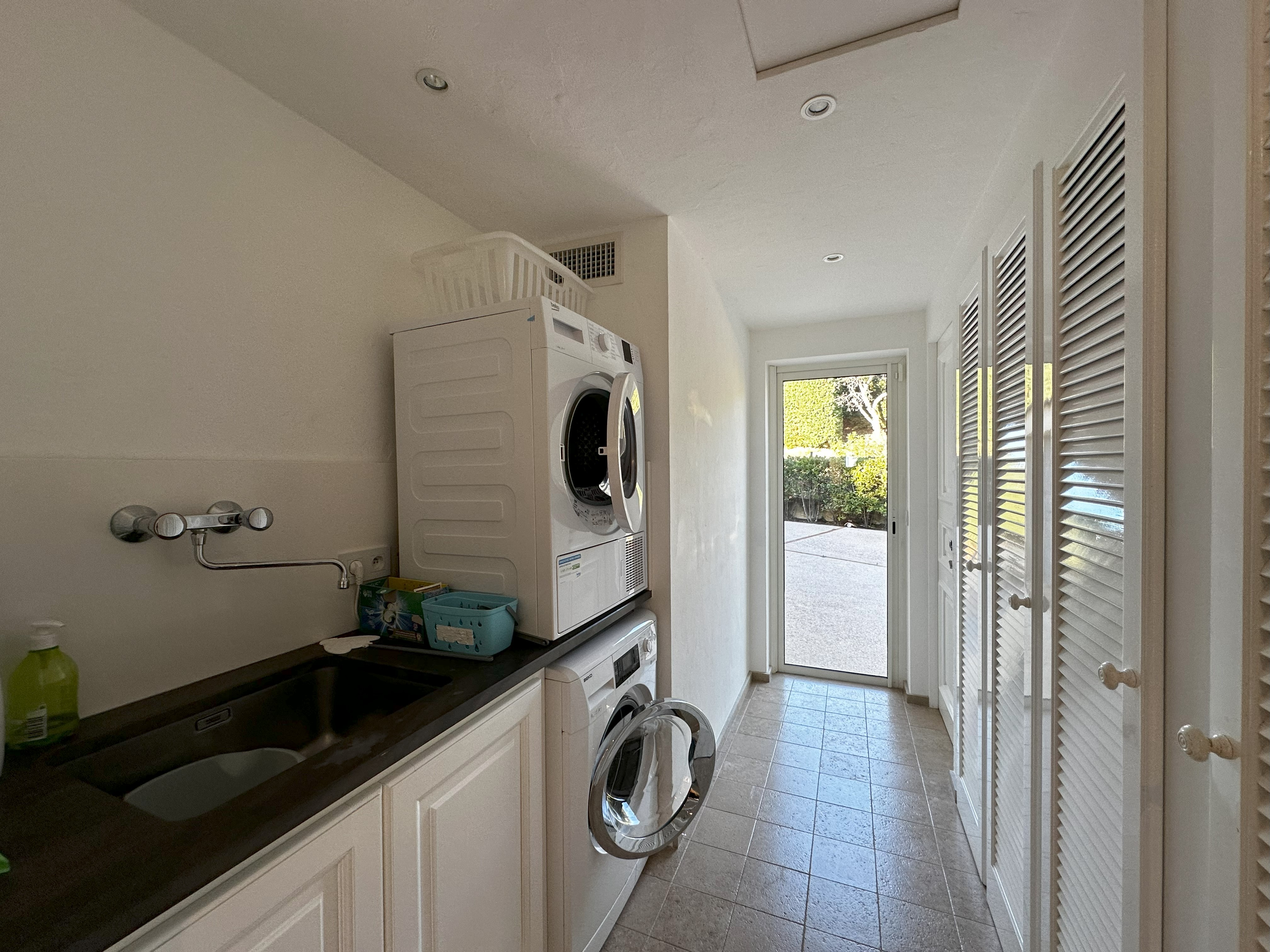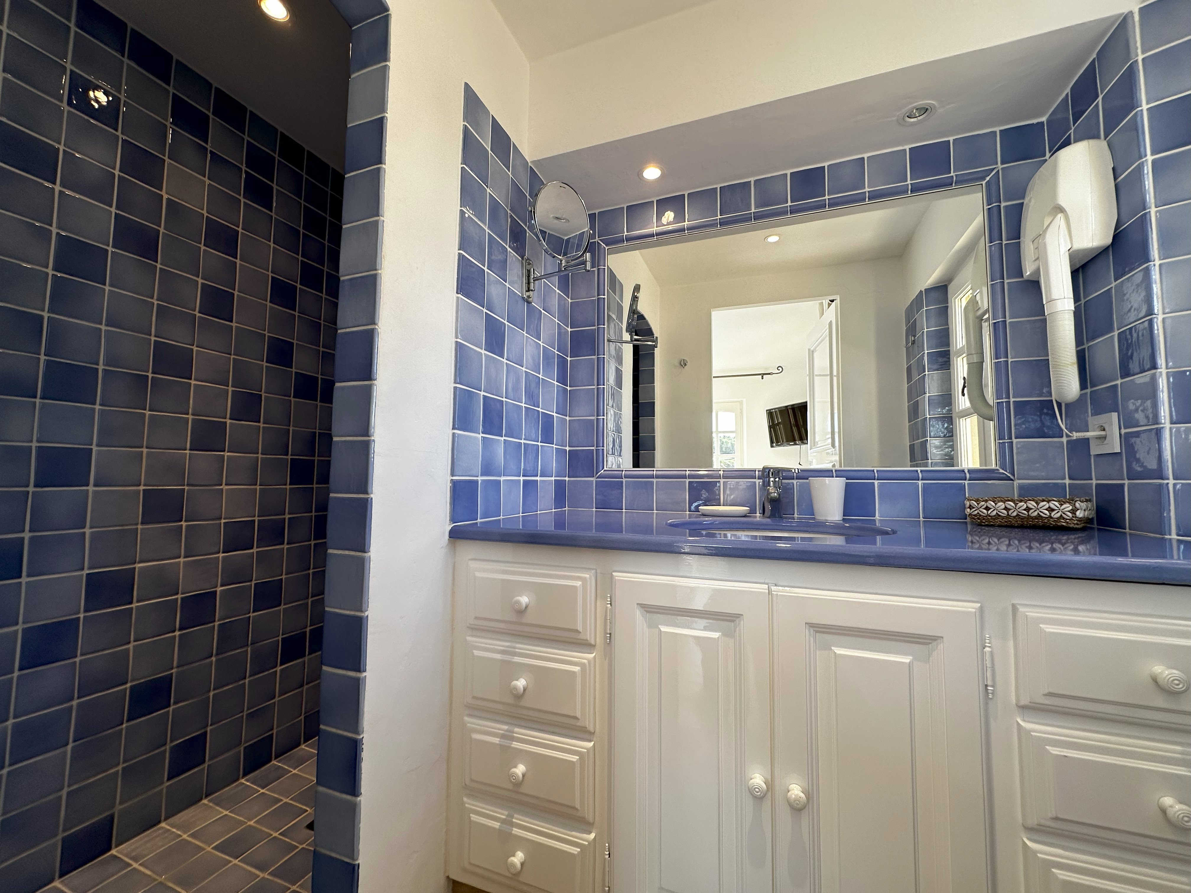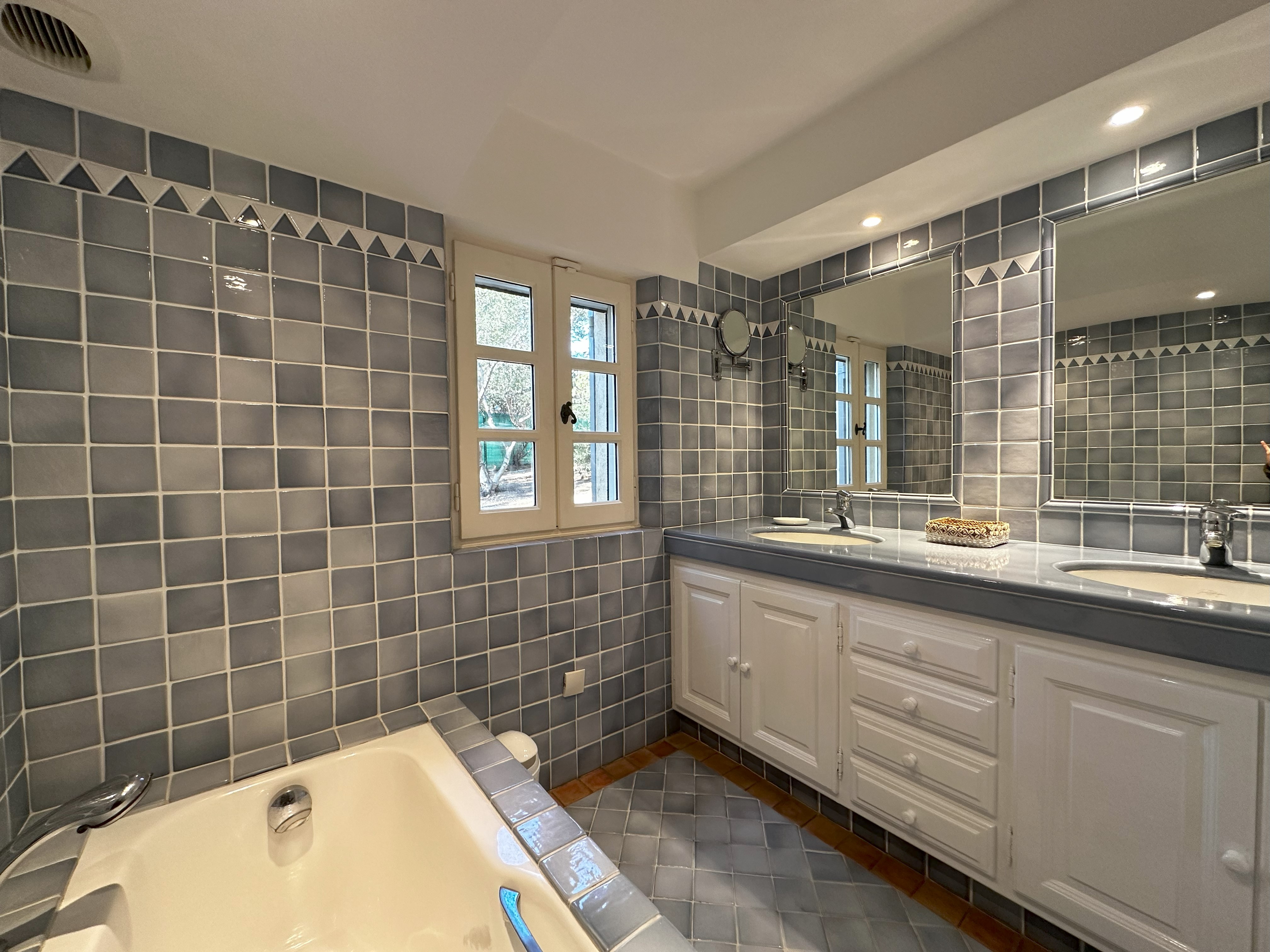 Villa de style provençal pouvant accueillir 10 personnes, d’une surface habitable de 220 m² et construite sur un grand terrain aménagé avec goût d’environ 2500 m². Située dans un domaine au calme, à 10 minutes en voiture du centre-ville et 5 minutes de la plage, sa situation, son exposition sud et sa belle vue mer en font une destination privilégiée. La villa est entièrement climatisée, disposant d’une grande terrasse abritée et d’une belle piscine de forme libre 5x11m. Au-rez-de-chaussée se trouvent 3 chambres, 2 salles de bains/douche, une grande salle de séjour avec coin repas et coin salon. A l’étage 2 chambres avec TV et terrasse solarium ainsi que 2 salles de bains/douche. Animaux non admis.