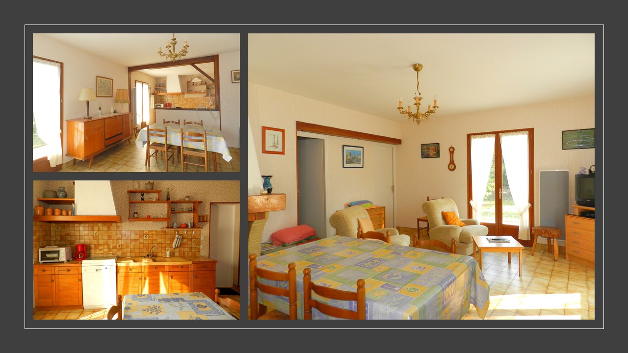 La salle de bains est équipée d'une grande douche à l'italienne et d'une machine à laver, tandis que les toilettes séparées ajoutent une commodité supplémentaire. La maison est bien équipée avec un réfrigérateur/congélateur, une cuisinière à gaz à quatre feux, un petit four et un lave-vaisselle, ce qui facilite la préparation des repas. Une télévision permet de se divertir, et le garage de 18 m² offre un espace pour ranger les vélos, le matériel de plage ou les objets personnels.