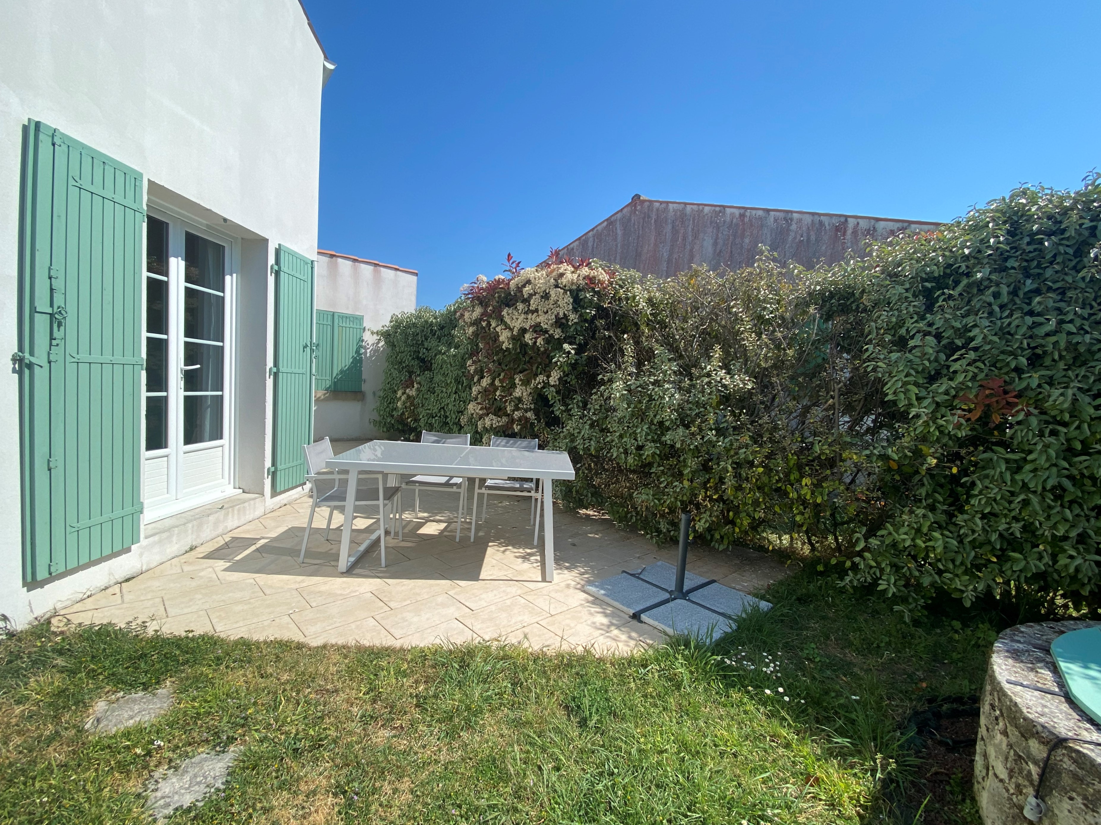 Cette location de vacances dispose d'une terrasse plein air privée pour se détendre en soirée.