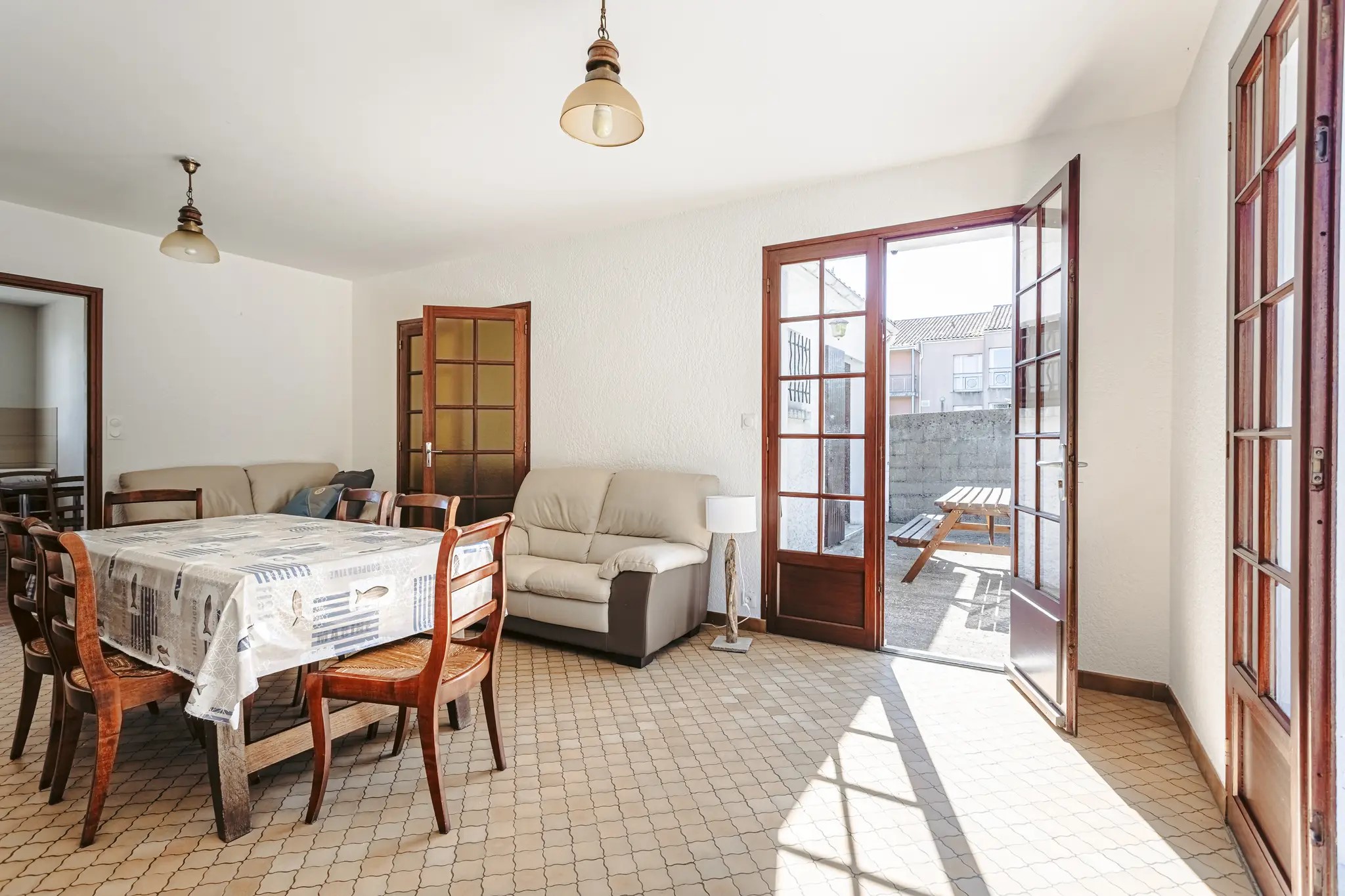 La maison de vacances située au Grand-Village-Plage est l’hébergement idéal pour une escapade relaxante. Cette propriété de 70 m² comprend un salon, trois chambres et une salle de bain, pouvant accueillir jusqu’à six personnes. Les équipements incluent une télévision et une machine à laver. Un lit bébé est également disponible. Vous profiterez d’un jardin privé, d’une terrasse extérieure et d’un espace barbecue. Deux places de parking sont disponibles sur la propriété. Les animaux de compagnie ne sont pas autorisés. Il est interdit de fumer et d’organiser des événements. Les serviettes ne sont pas fournies. La climatisation et le Wi-Fi ne sont pas disponibles. Le ménage n’est pas inclus et doit être effectué par vos soins, mais il est possible de le réserver en option,