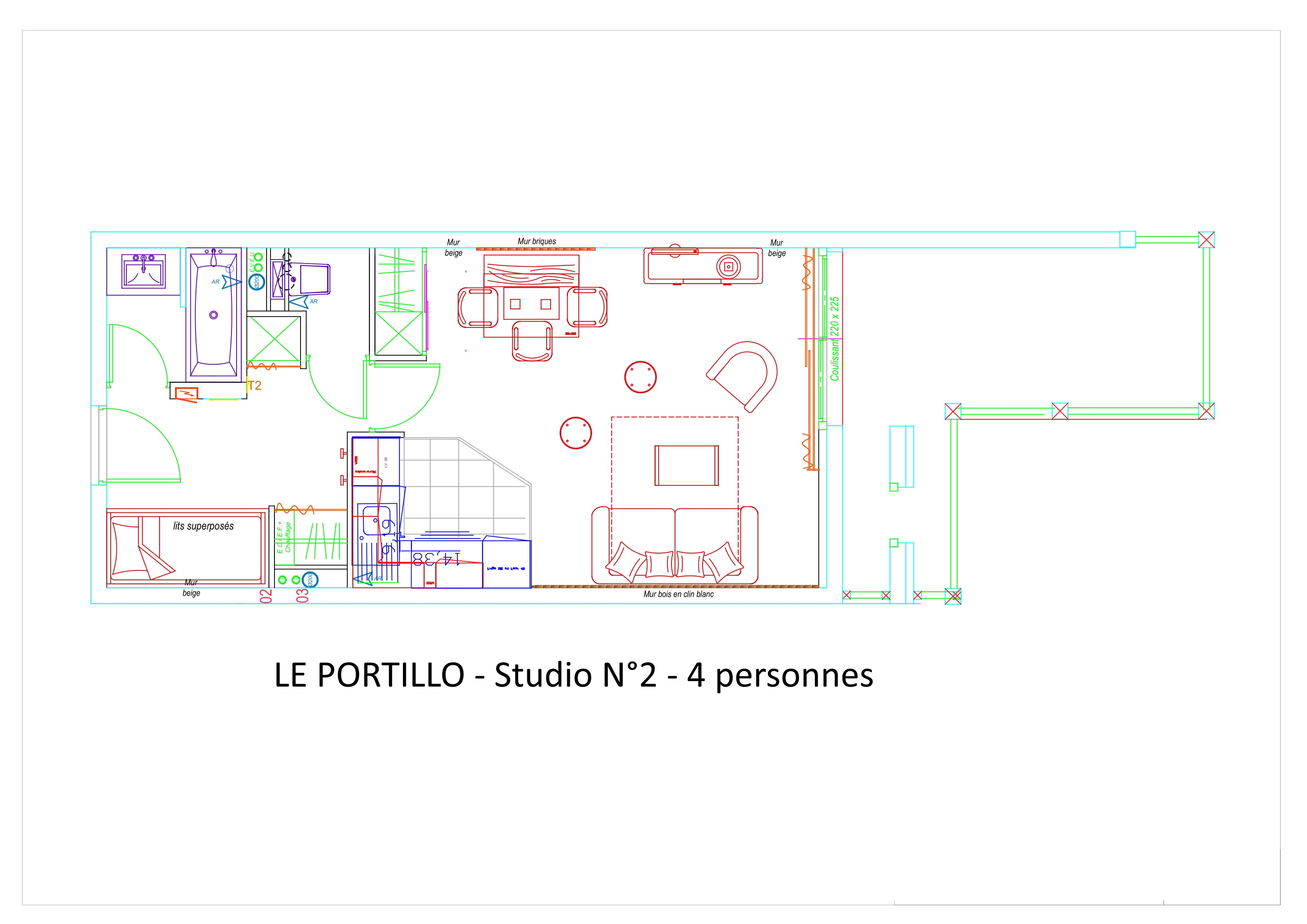 Studio équipé et meublé pour 4 personne, de 38m², exposé Sud-ouest avec vue montagne et station, situé au 1°niveau, avec terrasse.Entrée : coin montagne avec 2 lits superposés en 90.Salle de bain : baignoire, lavabo et sèche-cheveux.WC indépendants.Séjour : canapé lit 2 places en 160, télévision - Cuisine américaine : frigo avec bac conservateur, plaque vitro 4 feux, four, micro-ondes, lave-vaisselle, cafetière à filtre, grille-pain, bouilloire, robot.