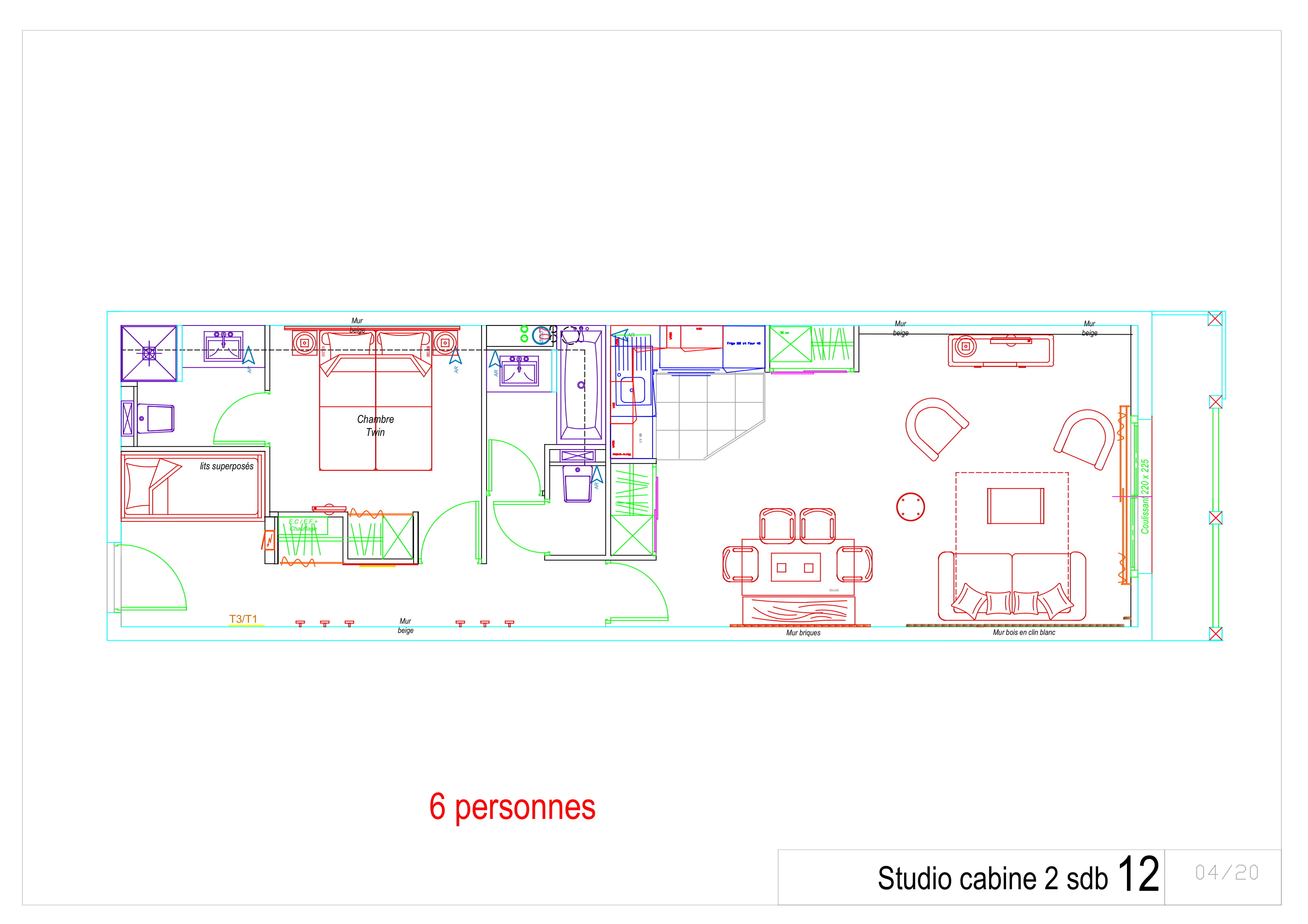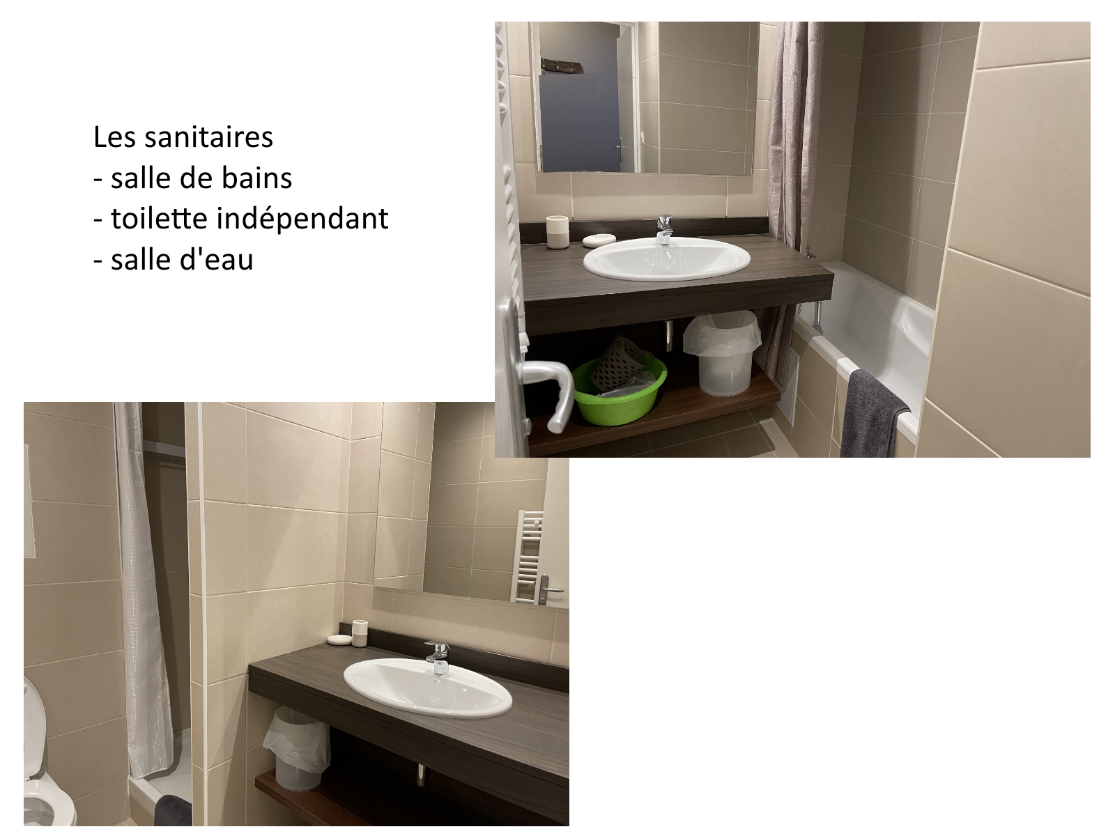Studio cabine équipé et meublé pour 4/6 personnes, de 58m², exposé Sud-Ouest, vue pistes et station, situé au 1°étage avec balcon. Entrée : coin montagne avec 2 lits superposés en 90.Salle de bain : lavabo, baignoire et sèche-cheveux.WC indépendant.Cabine (chambre sans fenêtre) : 2 lits 80, télévision et salle d'eau: douche, lavabo et WC.Séjour : canapé-lit 2 places en 160, télévision -Cuisine américaine : frigo avec bac conservateur,plaque vitro 4 feux, four, micro-ondes, lave-vaisselle, cafetière à filtre, grille-pain, bouilloire, robot.NON FUMEUR. DRAPS FOURNIS.En supplément : taxe de séjour. Animaux acceptés et payants.En option : formules RESTAURATION (petit déjeuner, diner, 1/2 pension), linge de toilette, ménage journalier et de départ, arrivée matinale, départ tardif. En Hiver : location de matériel SKILOC, remontées mécaniques SKIPASS, matériel + forfait SKIPLUSS.Les installations aquatiques (piscine, bain à bulles, sont ouvertes en Hiver des vacances de Noël à la fermeture de la station, en Eté du 01/07 au 15/09.
