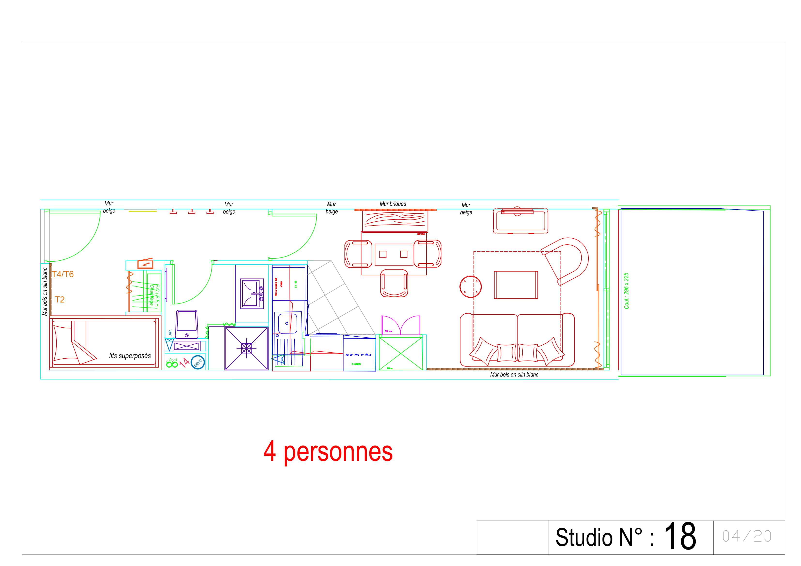Studio équipé et meublé pour 4 personnes, de 30m², exposé Sud-Ouest, vue pistes et montagne, situé au 1°étage avec terrasse. Entrée : coin montagne avec 2 lits superposés en 90.Salle d'eau : lavabo, douche, WC et sèche cheveux.Séjour : canapé lit 2 places en 160, télévision -Cuisine américaine : frigo avec bac conservateur, plaque vitro 4 feux, four, micro-ondes, lave-vaisselle, cafetière à filtre, grille-pain, bouilloire, robot.