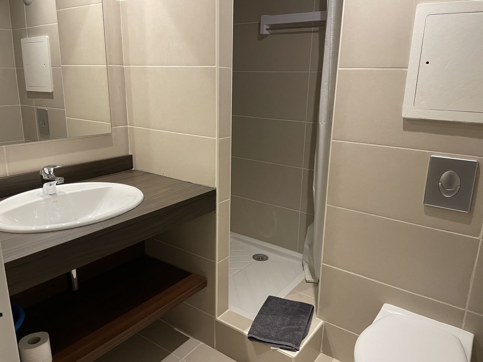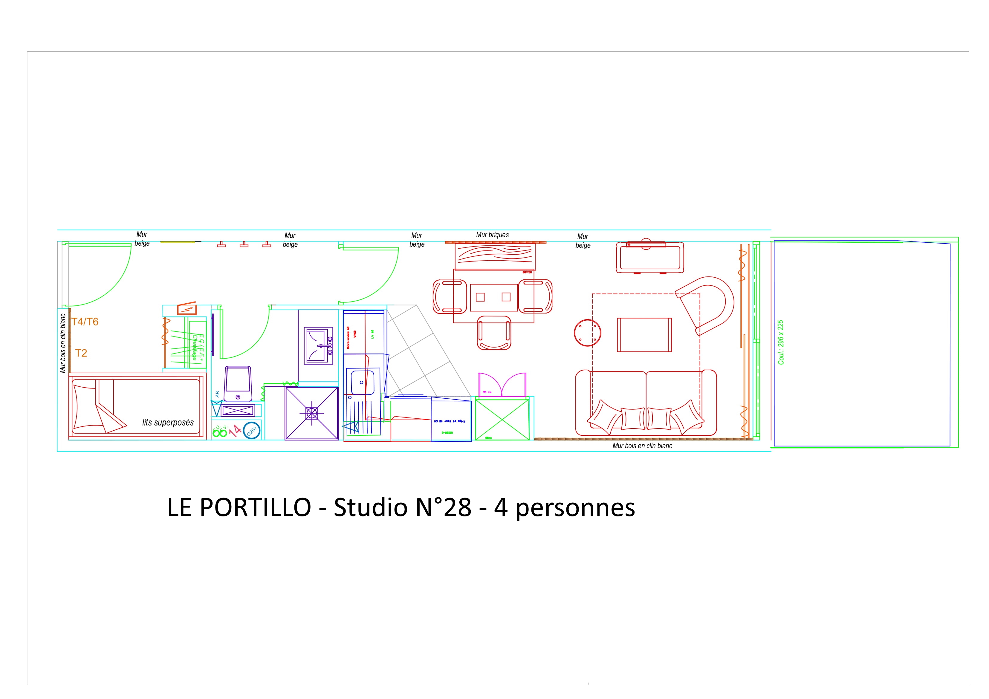 Studio équipé et meublé pour 4 personnes, de 29 m², exposé Sud-Ouest, vue piste-montagne, situé au 2°étage avec terrasse. Entrée : coin montagne avec 2 lits superposés en 90.Salle d'eau : lavabo, douche, WC et sèche cheveux.Séjour : canapé lit 2 places en 160, télévision -Cuisine américaine : frigo avec bac conservateur, plaque vitro 4 feux, four, micro-ondes, lave-vaisselle, cafetière à filtre, grille-pain, bouilloire et robot.