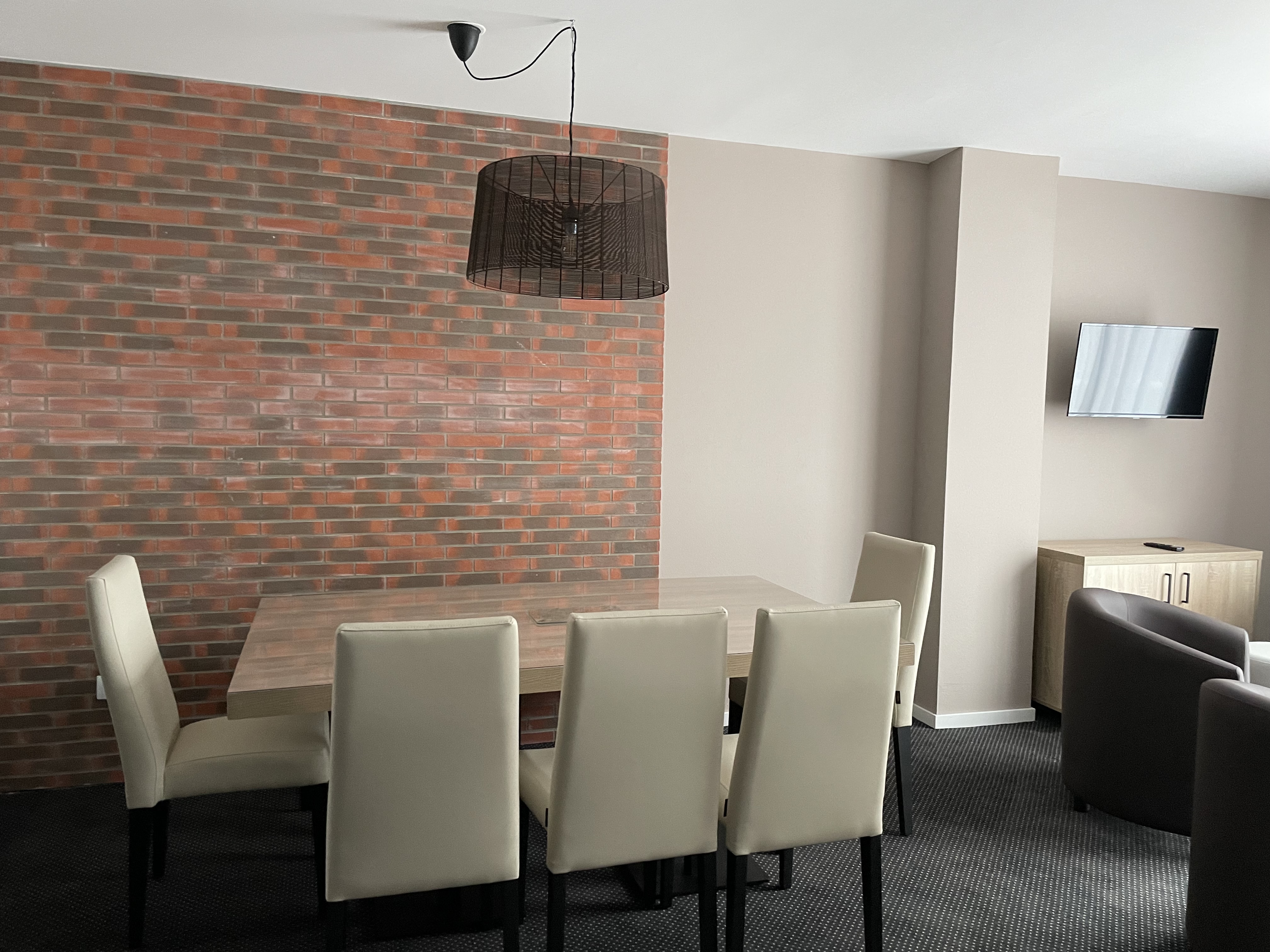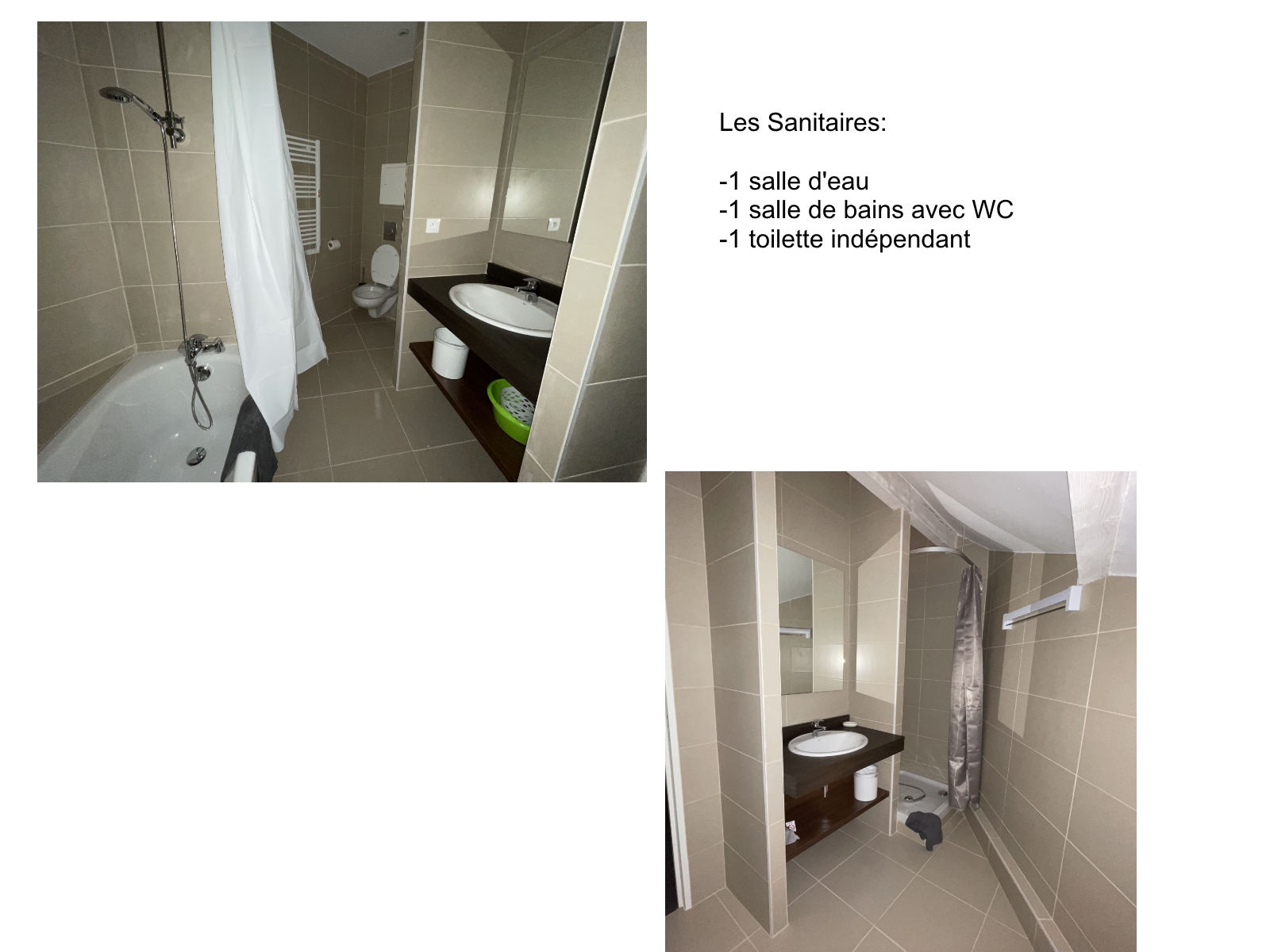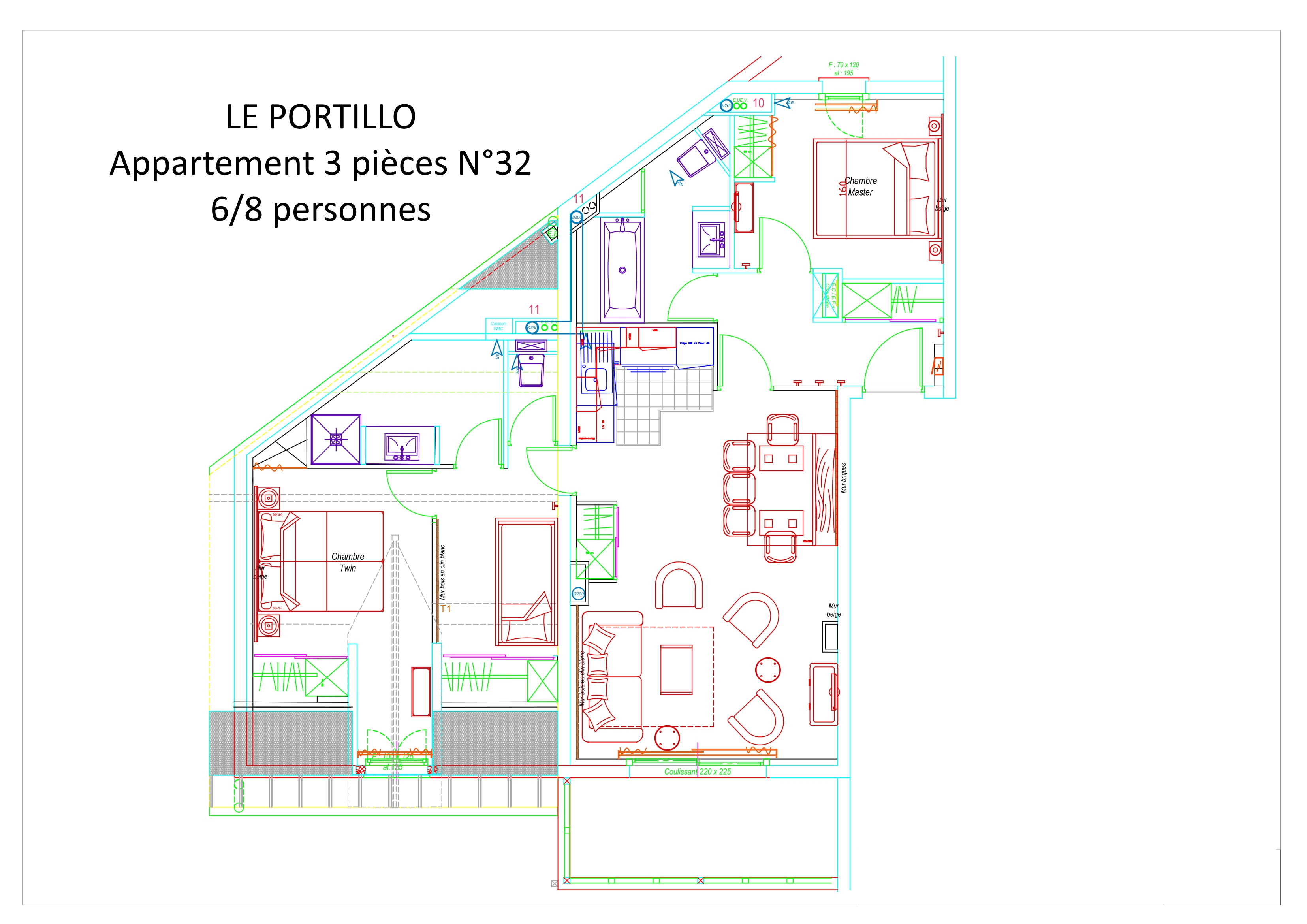 Entrée - Chambre 1 : lit 160, télévision.Salle de bain : baignoire, lavabo, WC, et sèche-cheveux.Coin montagne : 2 lits superposés en 90.Salle d'eau : douche, lavabo. WC indépendant.Chambre 2 : 2 lits 80.Séjour : canapé lit 2 places en 160, télévision - Cuisine américaine : frigo avec bac conservateur,plaque vitro 4 feux, four, micro-ondes, lave-vaisselle, cafetière à filtre, grille pain, bouilloire, robot.