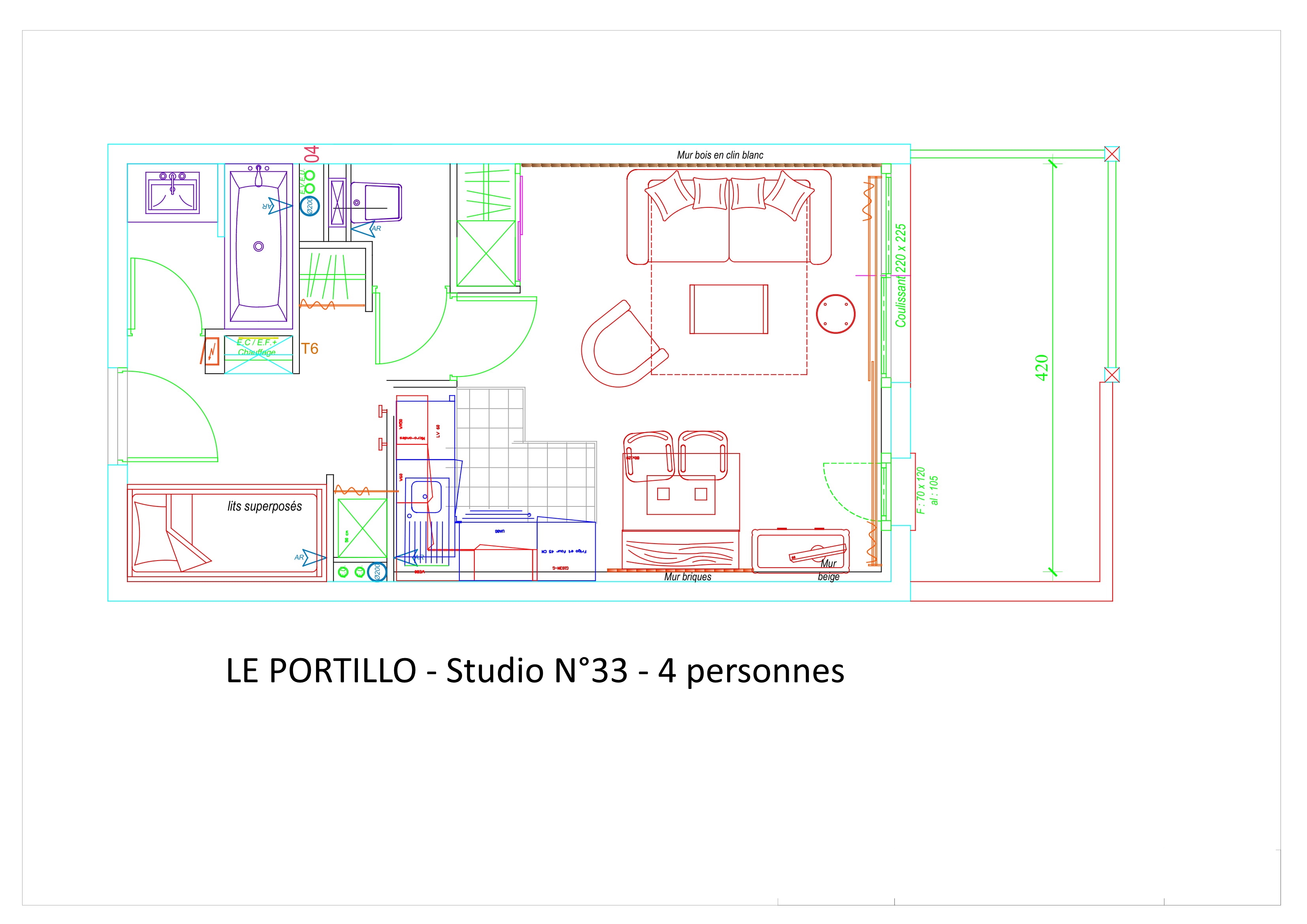 Studio équipé et meublé pour 4 personnes, de 31m², exposé Sud-Ouest, vue pistes et station, au 3 étage avec terrasse.Entrée : coin montagne avec 2 lits superposés en 90.Salle de bain : lavabo, baignoire et sèche-cheveux.WC indépendant.Séjour : canapé lit 2 places en 160, télévision - Cuisine américaine : frigo avec bac conservateur, plaque vitro 4 feux, four, micro-onde,lave-vaisselle, cafetière à filtre, grille-pain, bouilloire et robot.